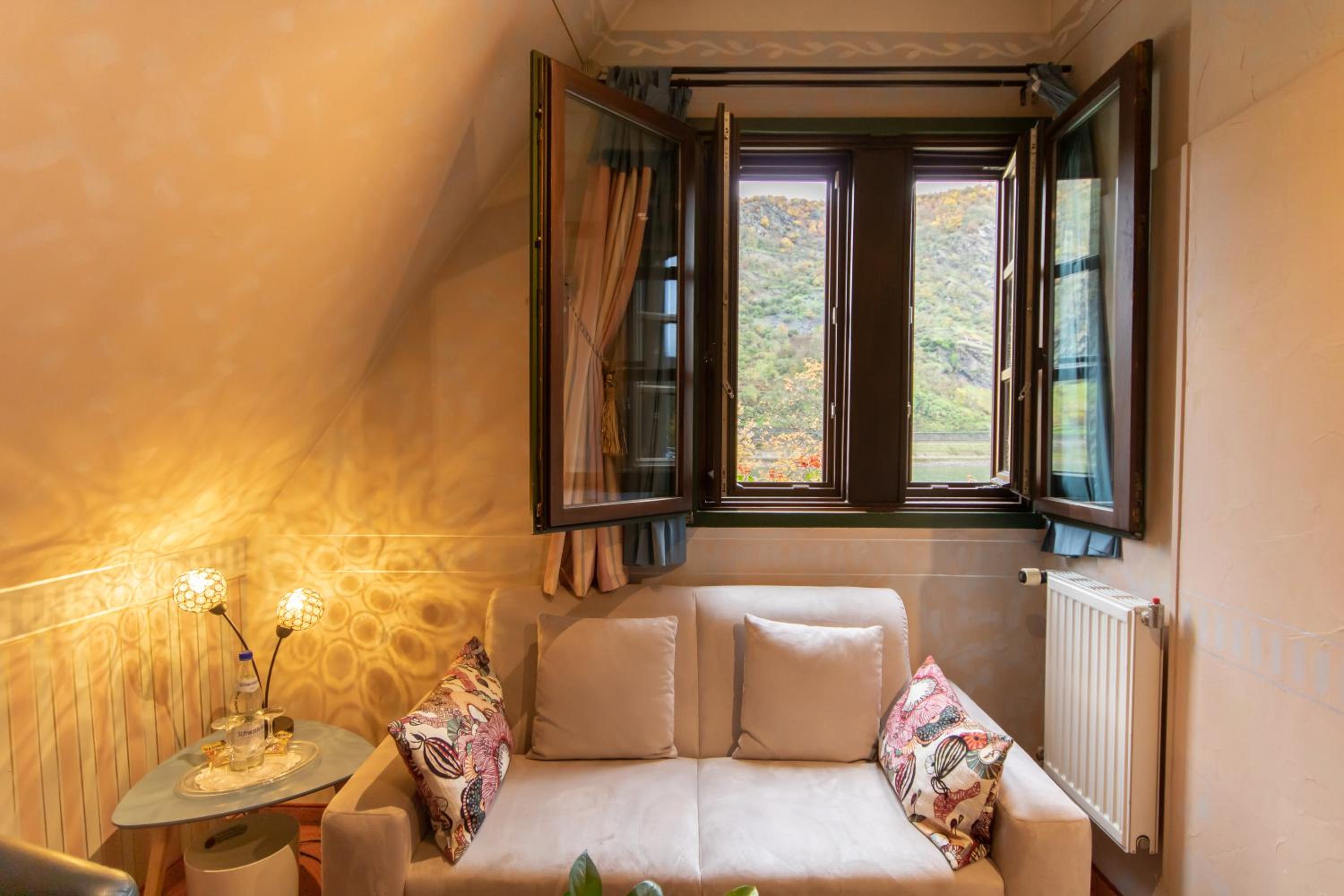 We loved this hotel. It is situated right on the market square but was very quiet while we were there (at the start of December). We arrived early and were able to keep occupied in Oberwesel for a couple of days even though it was cold and wet outside, it was good to retreat back to the hotel and warm up whenever we wanted! The room was very large and very comfortable. Breakfast was lovely with lots of options (there were not many guests at the hotel when we were there so this was surprising). We are vegetarian and can recommend their omelettes. The staff were all very kind, helpful and obliging. We weren't able to eat at the restaurant as it was closed the few days we were there, unfortunately. Oberwesel is great, a really interesting place with a surprising amount to do, and a good place for exploring other locations on the Rhine. We really enjoyed our visit and would strongly recommend this hotel.