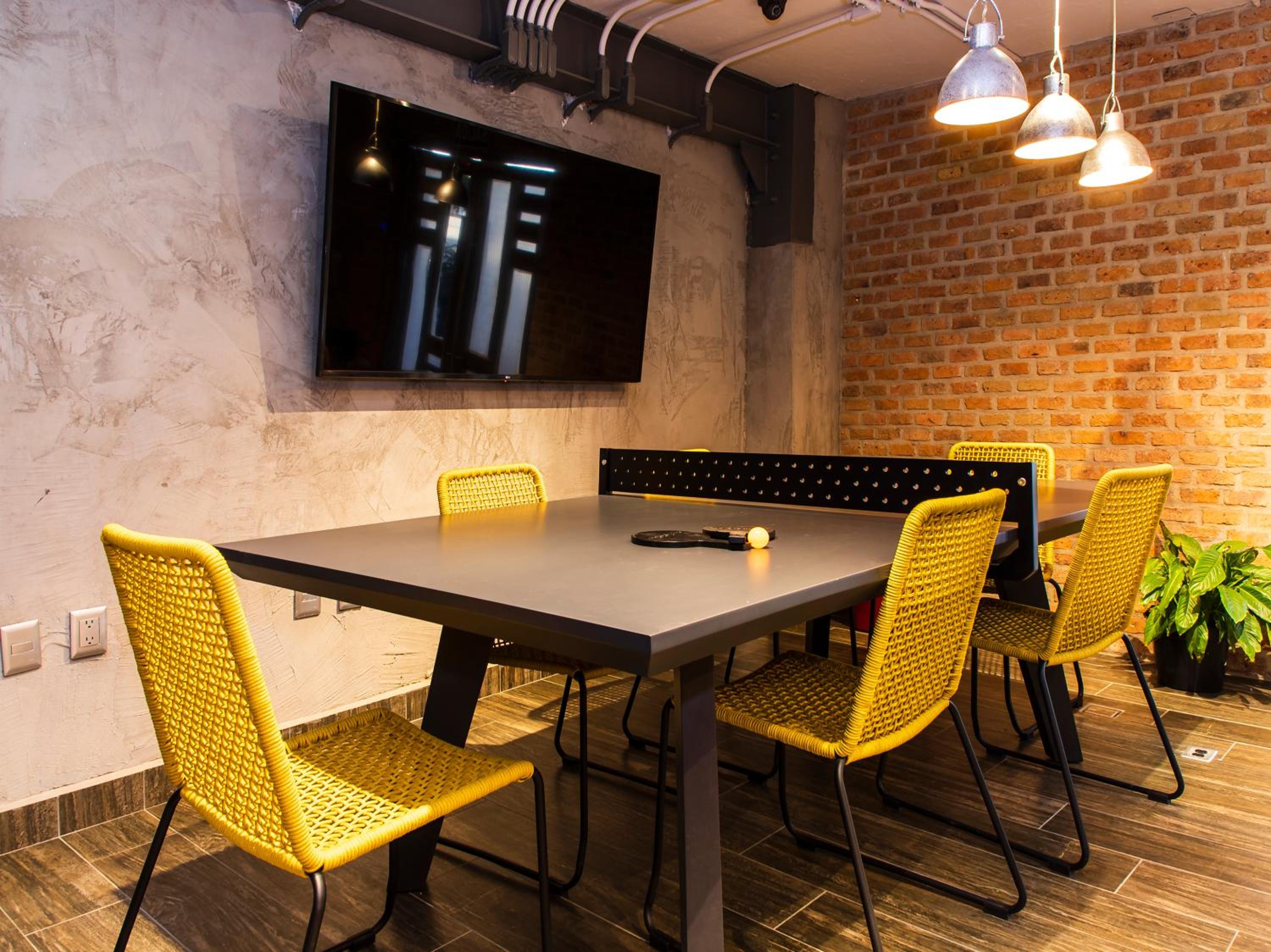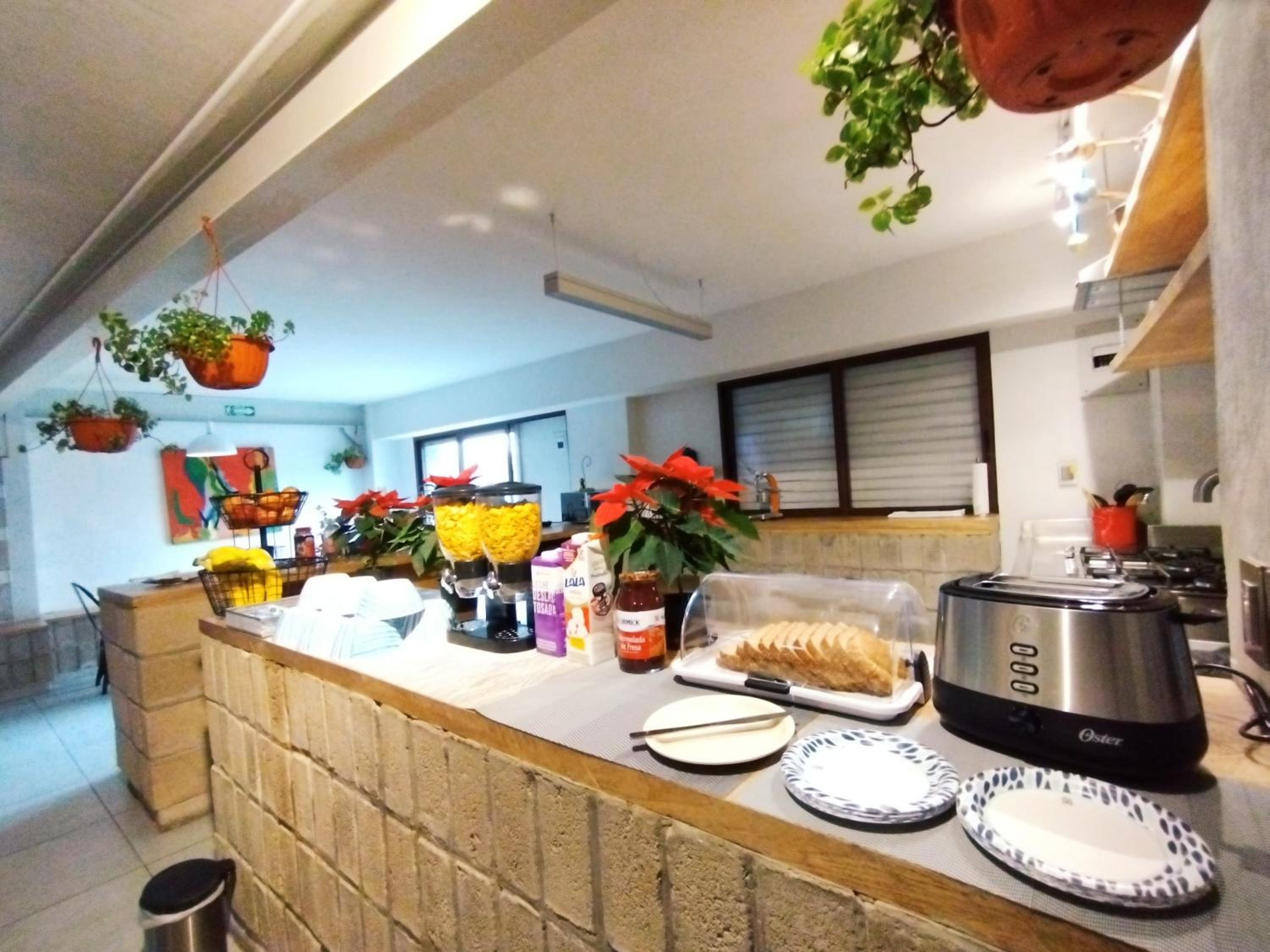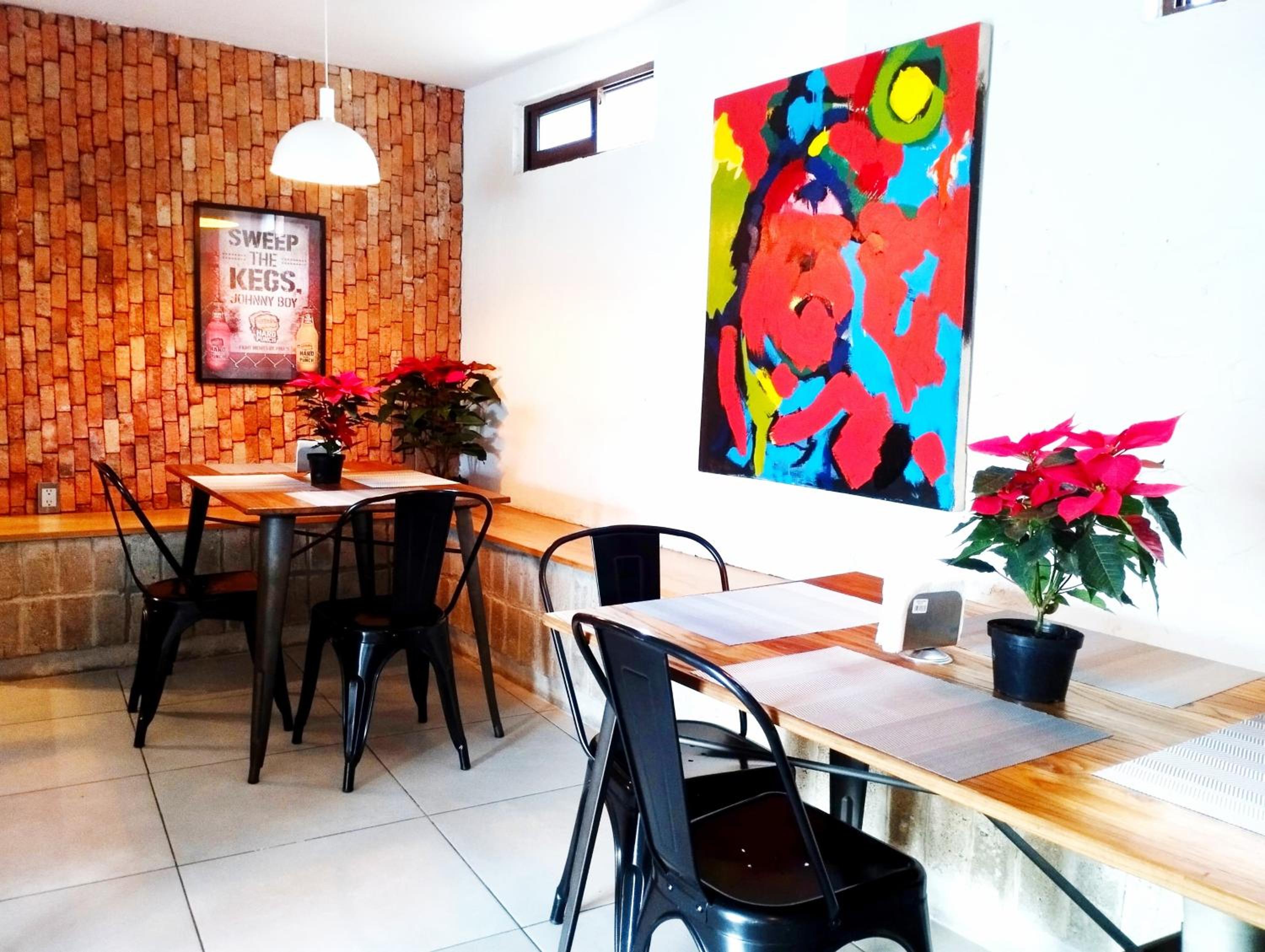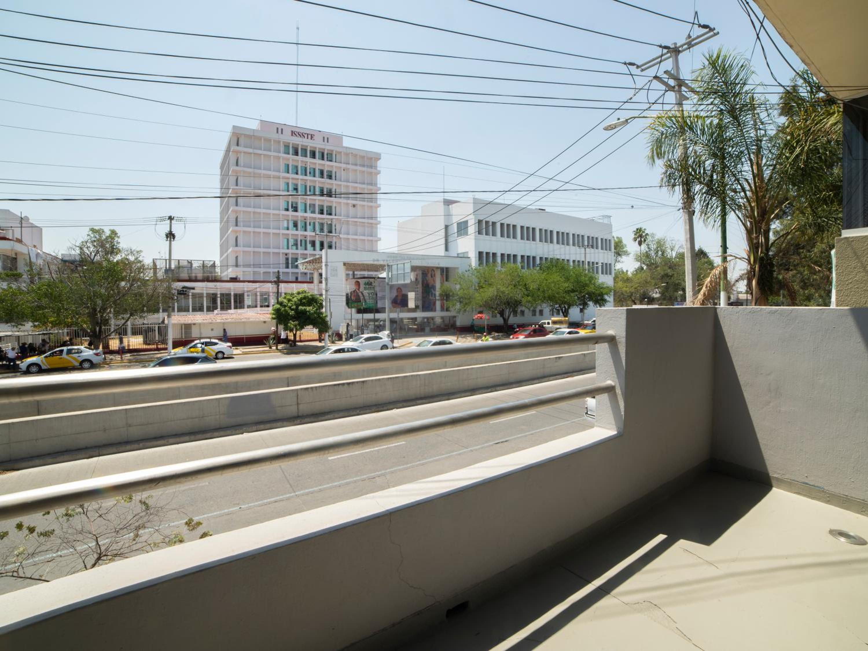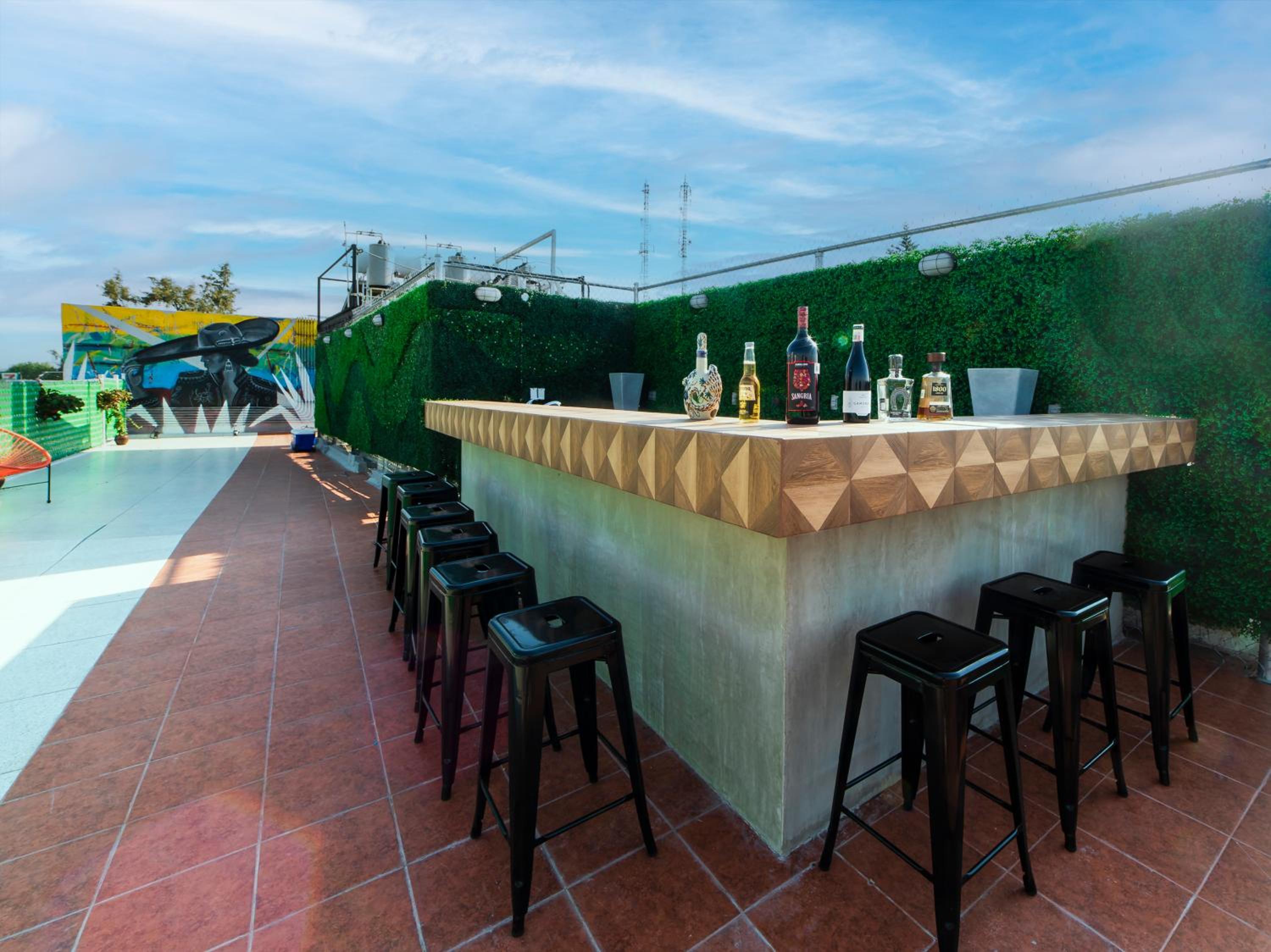 Está junto en centro de Zapopan y el tren elevado, así que muy buena ubicación. Las habitaciones son pequeñas, pero tiene varios espacios para platicar y tomarse algo.