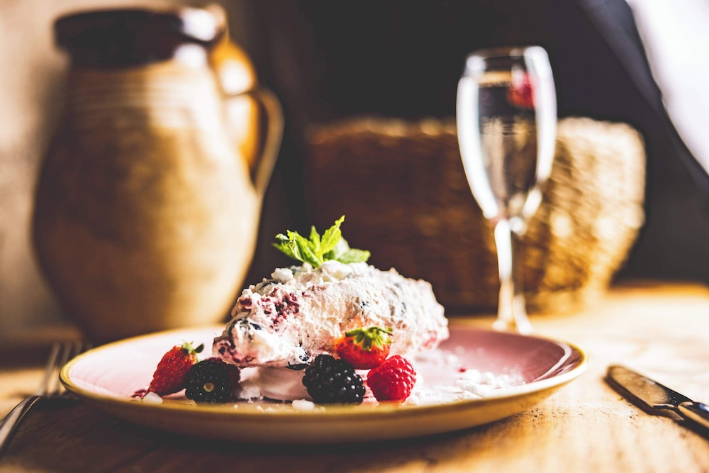 Enjoy the serene views from the terrace and garden at Runa Farm. Stay connected with complimentary wireless internet and indulge in delicious meals at The Smithy.