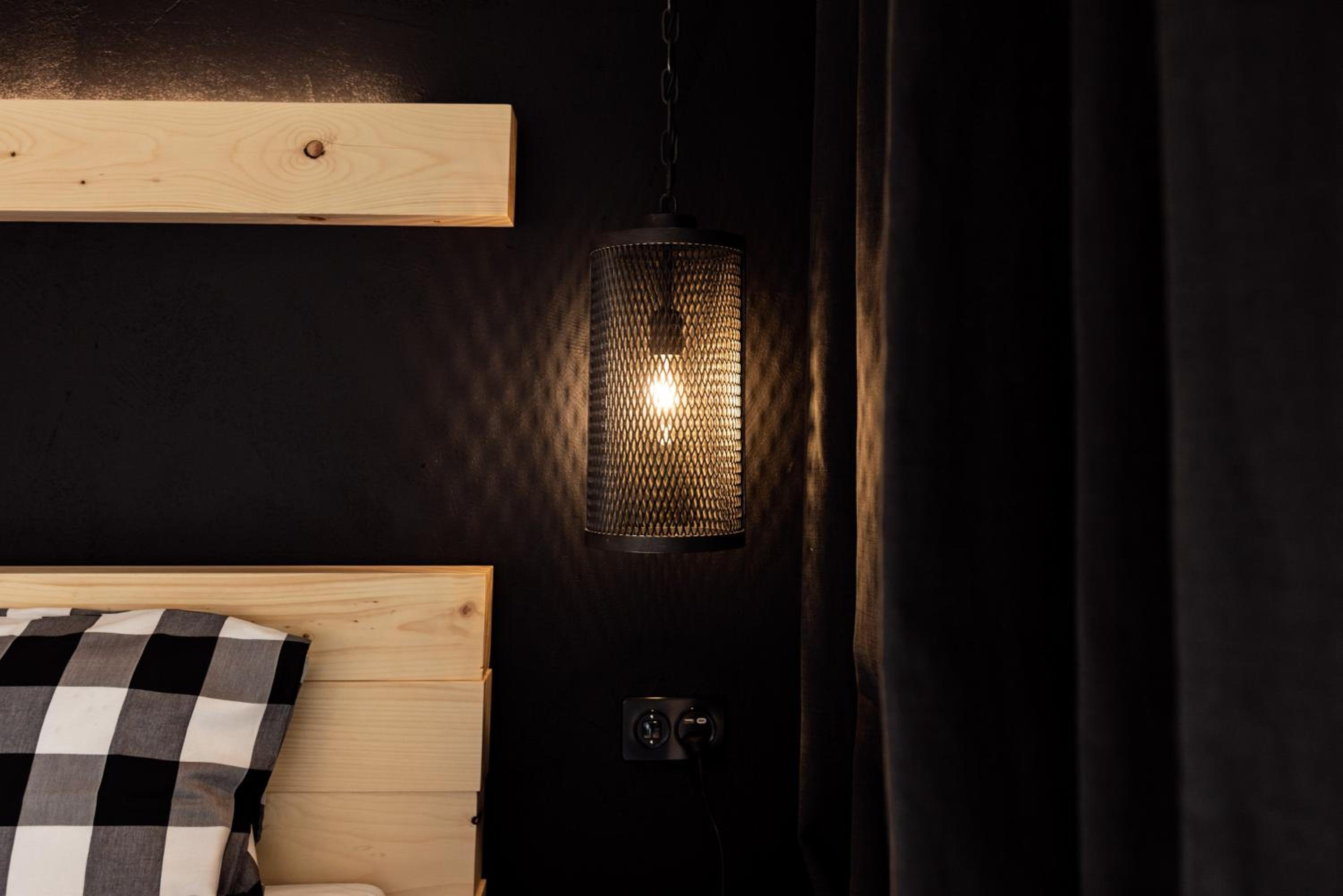 Das ganze Hotel nur in drei Farben..... BETON, Holz ist in Ordnung, und SCHWARZ, SCHWARZ, SCHWARZ bis hin zu den Wänden, Flur, Kaffee Maschine und Bier Zapfhahn.... ich weiss nicht wer da Freude hat an der SCHWARZEN FARBE:.... zu dem als Gast mit Platzangst, ..... absolut nicht zu Empfehlen. Da bist Du in einem Zimmer mit dickem Holz vor dem Fenster eingesperrt. .... ich könnte ein Buch schreiben.