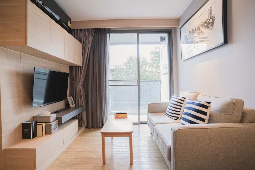 Absolutely loved staying here! The room is very spacious and comfortable, with Aircon in both the bedroom and dining room. Full size refrigerator and a combo washer/dryer, nice shower and comfortable bed. Just a short walk to the main shopping area and close to the sky train. Traffic is absolutely horrible, which makes commuting in with luggage miserable. Staff was so friendly and welcoming. Highly recommend