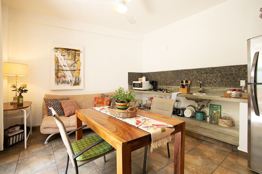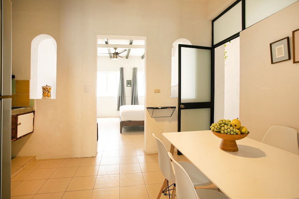 My apartment was spacious and well-appointed with charming details. My "room" had a full kitchen. It was clean and comfortable. I enjoyed the beautiful courtyard and common places. The place is unassuming from the outside and in a "real" neighborhood, yet just a quick walk from downtown and the malecon. Would be perfect for a longer term stay. This is a great deal!