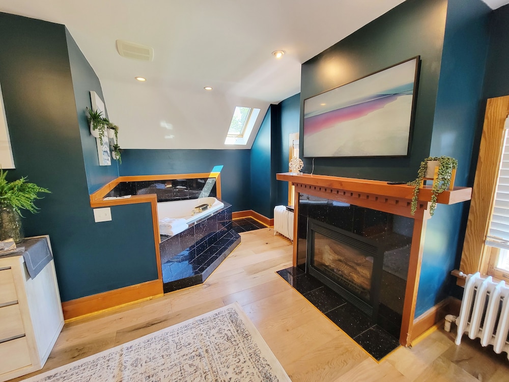 Beautiful place!! I loved how it was decorated, the colors in the bathroom. Beautiful view of the lake. The outdoor sauna was super cool!! The beds were very comfy. The jacuzzi tub and fireplace were so relaxing. The only thing I wish there was, was darkening curtains. There is a lot of natural lightening in these rooms which is great! But it was a bit blinding in the morning