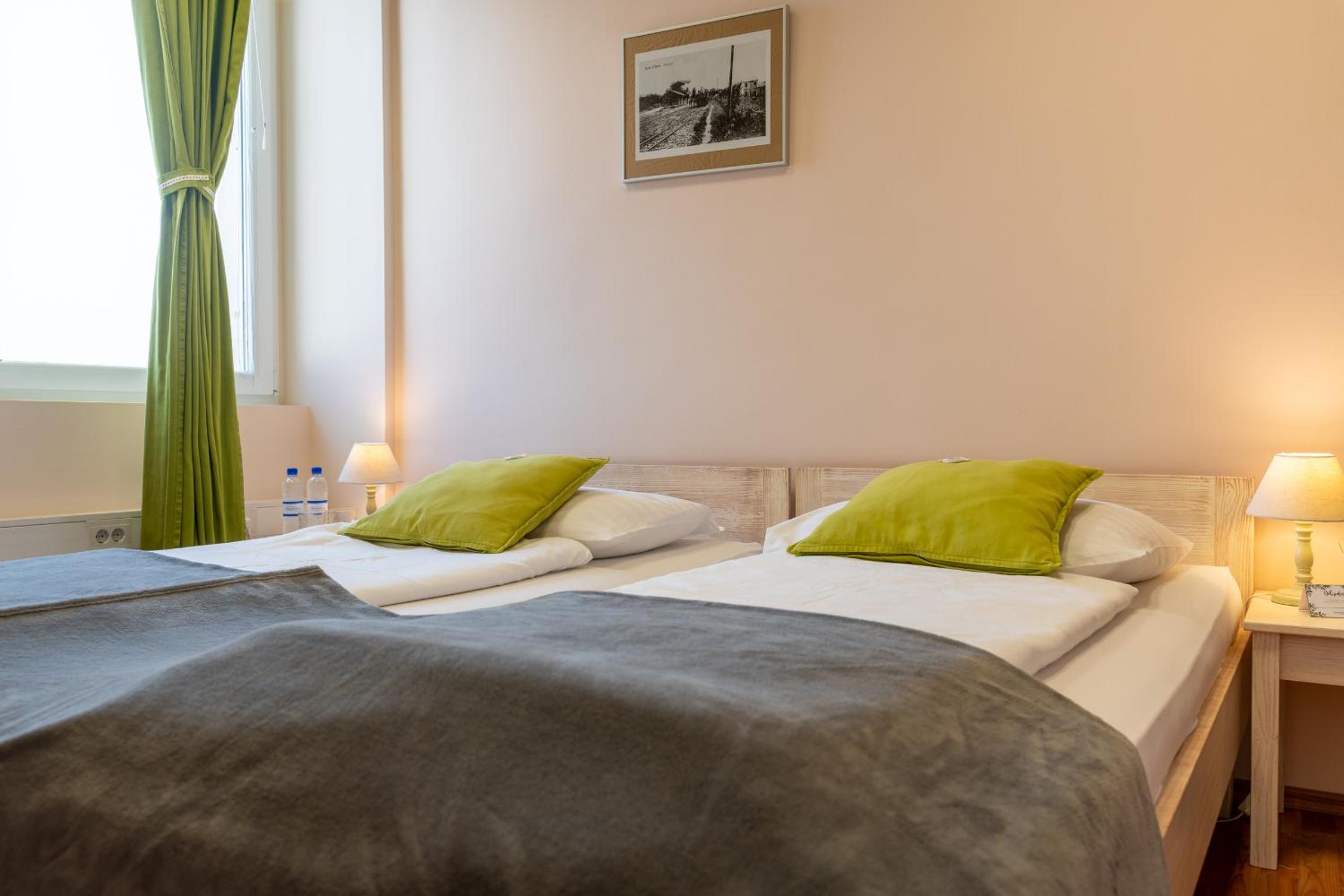 We hadden voor één van de grootste kamers gekozen die voldeed aan de beschrijving met wel één uitzondering. Er stond een grote badkuip, maar de op de website beloofde douche was er niet. In de plaats werd ons een appartement voorgesteld mét douche en badkuip. We hebben onze eerste keuze aangehouden. Vriendelijk personeel, vooral de bejaarde receptionist van ‘s avonds. Het ontbijt was netjes. We mochten uitzonderlijk op het binnenpleintje parkeren in plaats van op de gratis publieke, maar minder nette parking opzij. Het zwembad hebben we niet gebruikt.