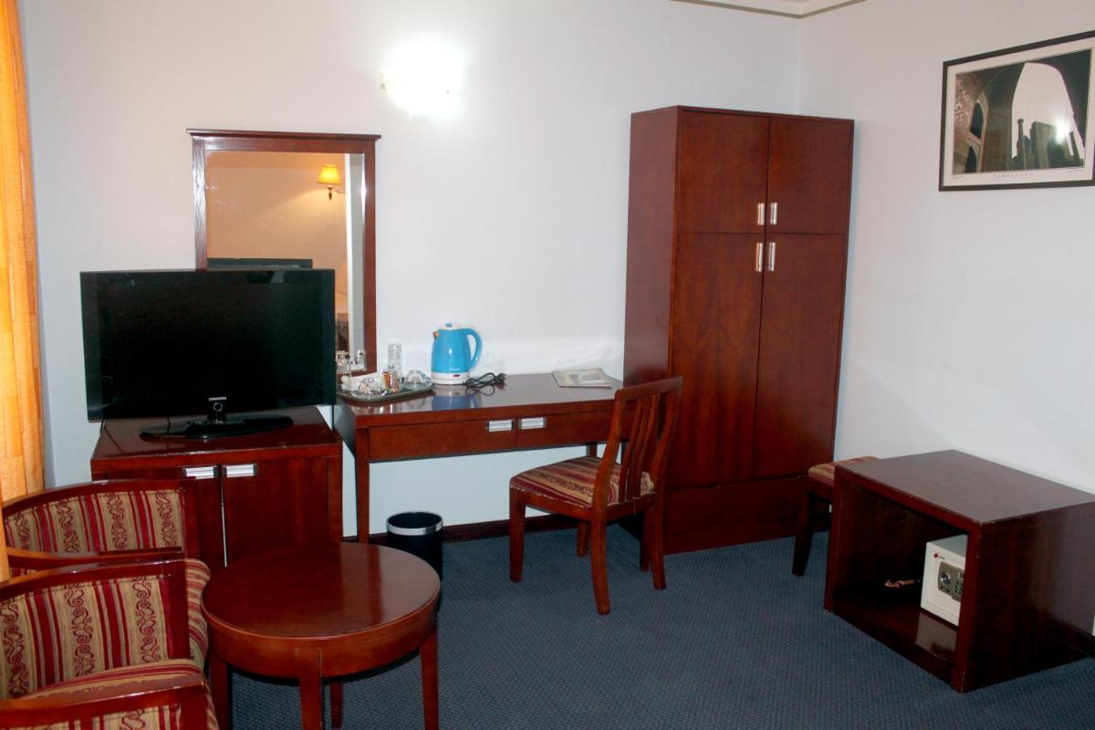 BUKHARA GRAND HOTEL offers air-conditioned rooms with modern amenities like a coffee machine, fridge, and flat-screen TV. Guests can also enjoy the convenience of a safety deposit box and a private bathroom with a bidet in each room.