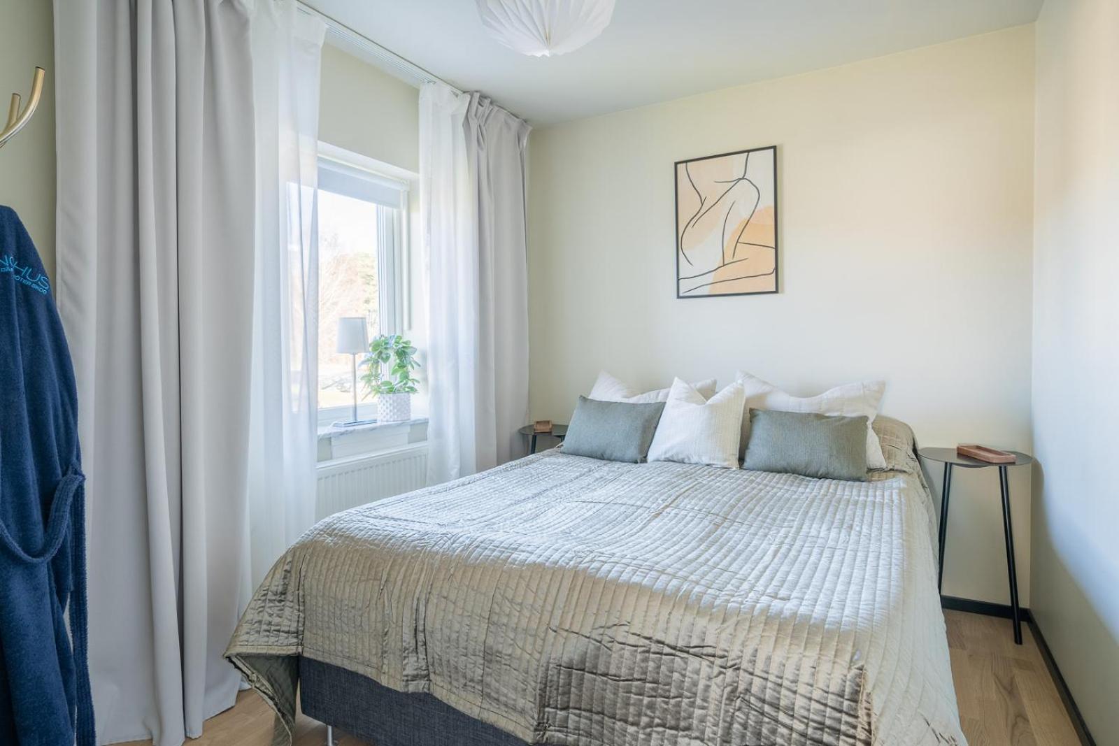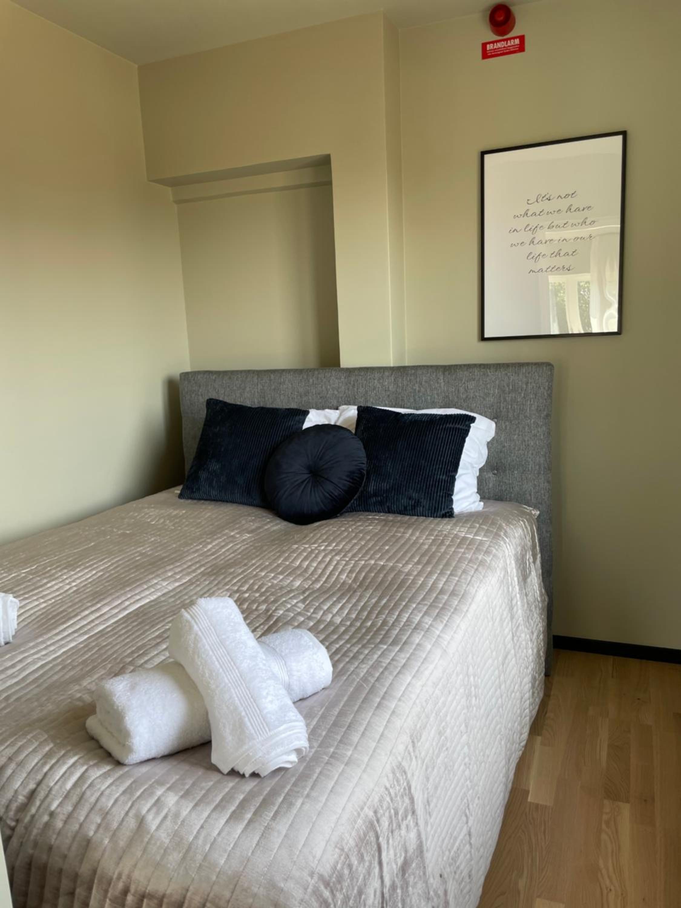 Rummet var ostädat. Fick det omstädat men trots det låg det dammtussar, grus och hår på golvet och hårtussar i duschen. Fick det städat en tredje gång. Var fortfarande skitigt under säng och soffa och i fåtöljen och soffan. Värden var dryg och menade att det var nystädade golv, vilket det absolut inte var.