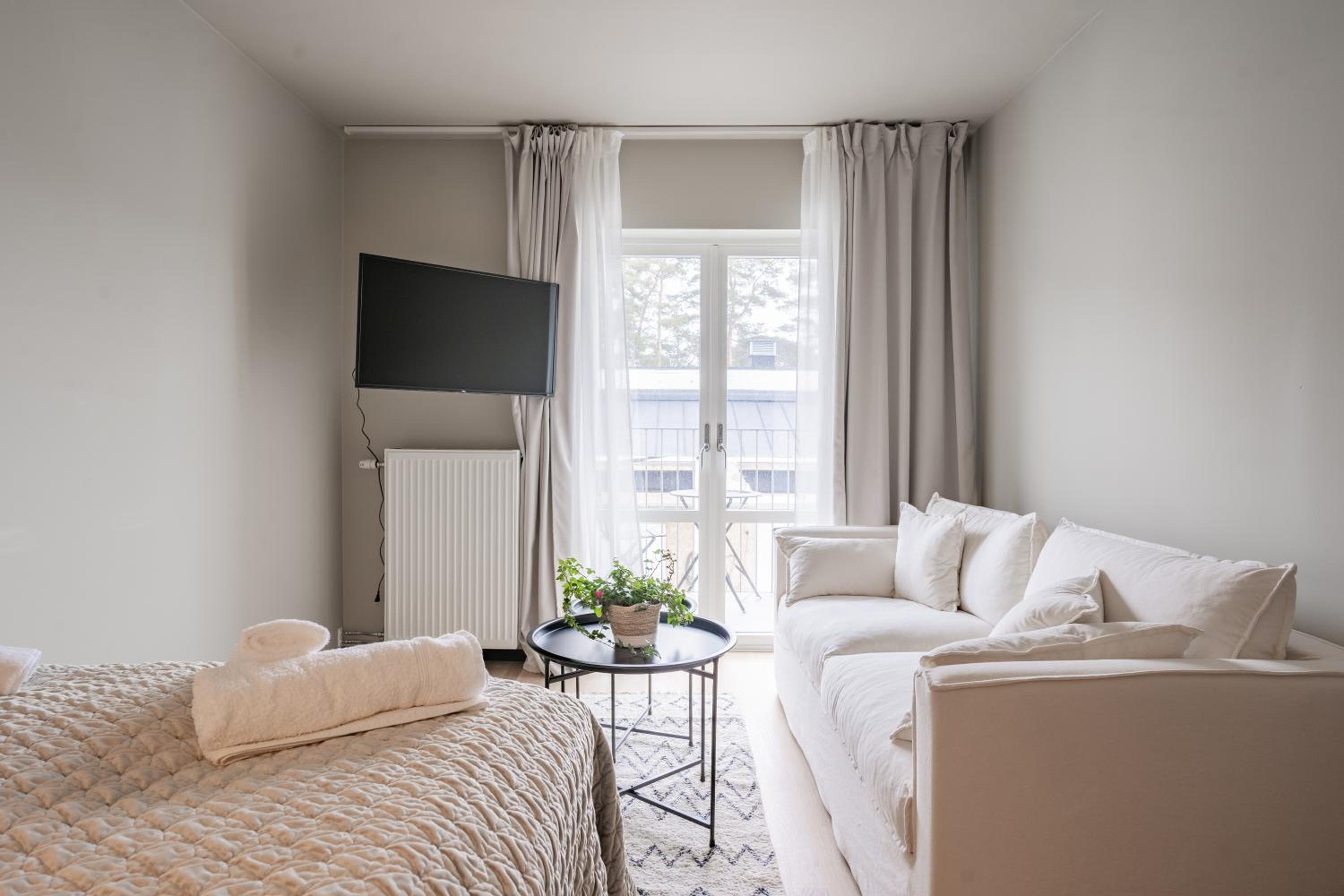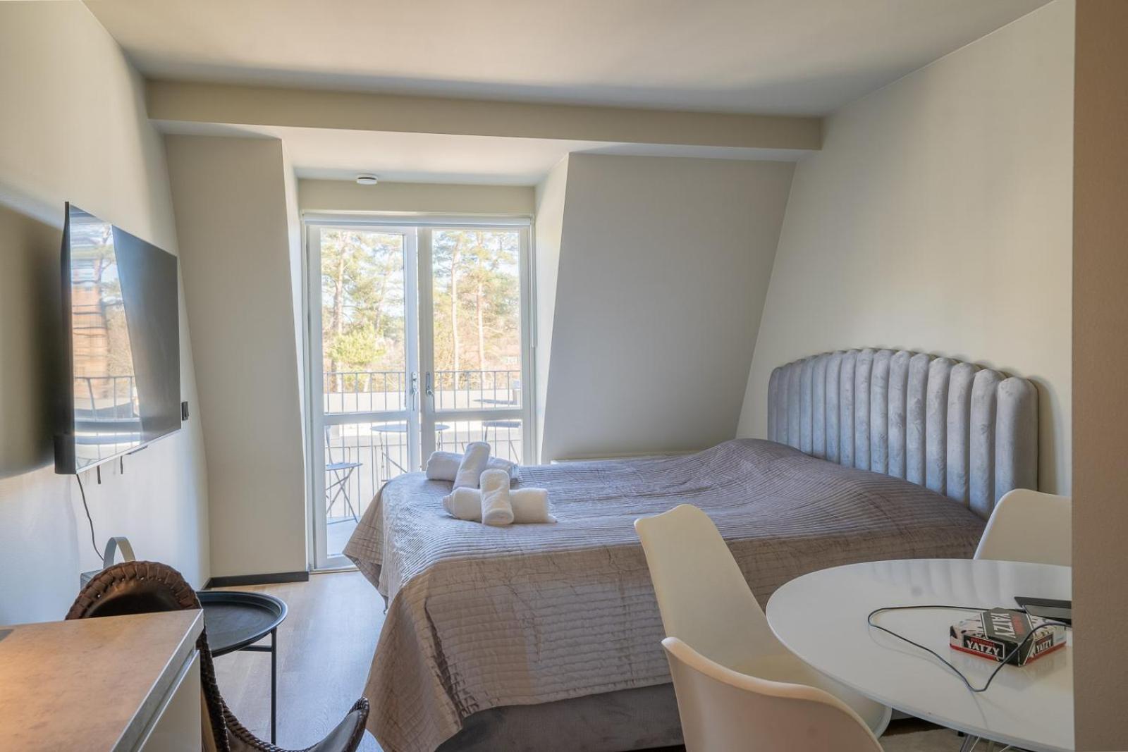 Fina rum, blev uppgraderad till ett dubbelrum med pentry och soffa. Bra att man kunde ha sina hundar med sig också!