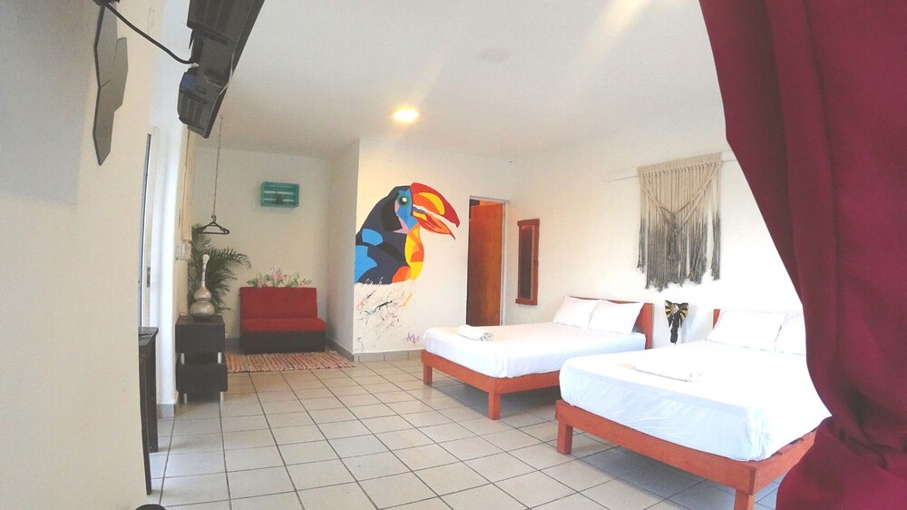 Loved the laid back feel of the place. The host was nice & we were given a family room on the top floor which felt like a budget penthouse apartment where we could sit on our balcony and watch the world go by. There are not fancy fixtures & fittings but there is a good vibe & some nice artwork.