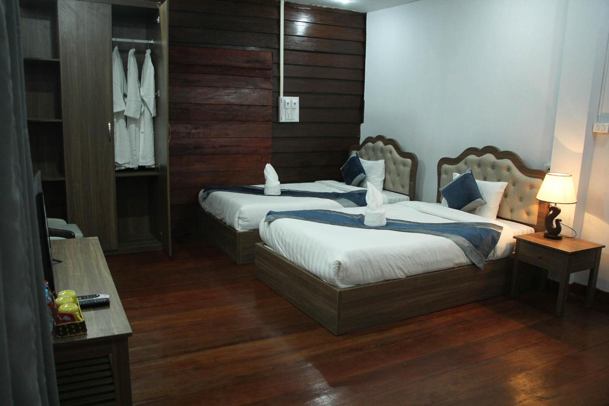 The resort is very comfortable , big room and very clean bathrooms. There is a big swimming pool outside and a night market right in front of the resort. The staff is very nice, you have a buffet in the morning. Would recommend to stay here!