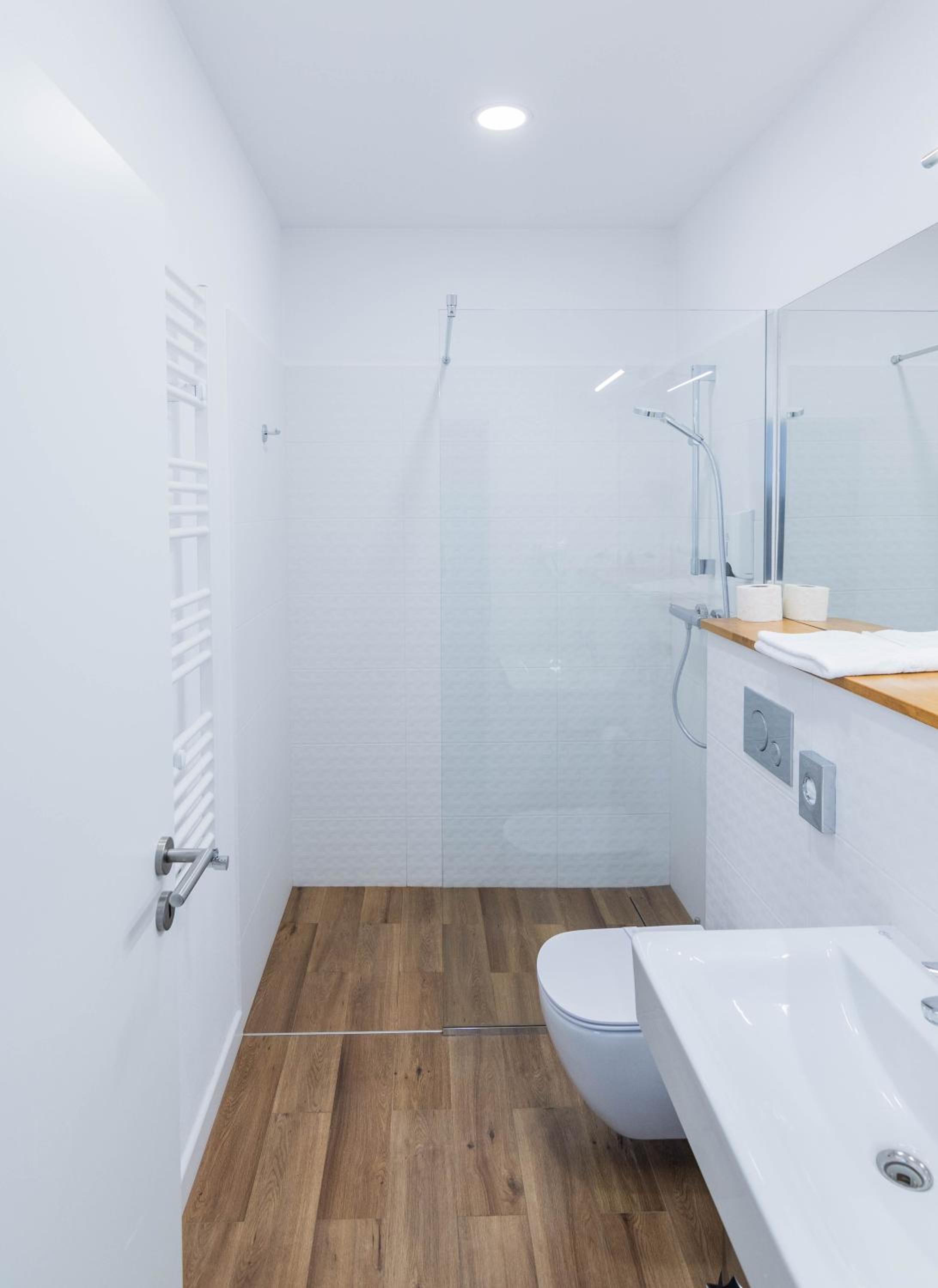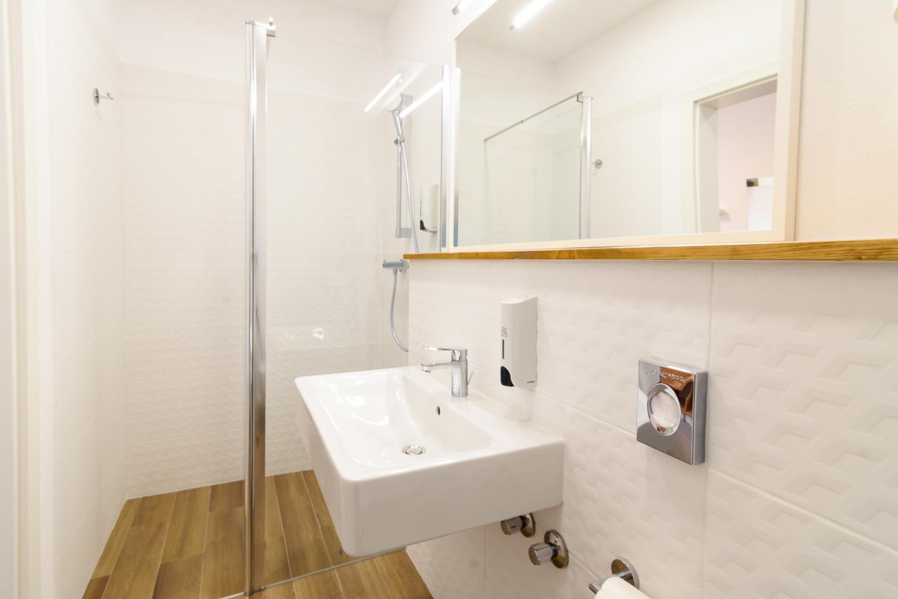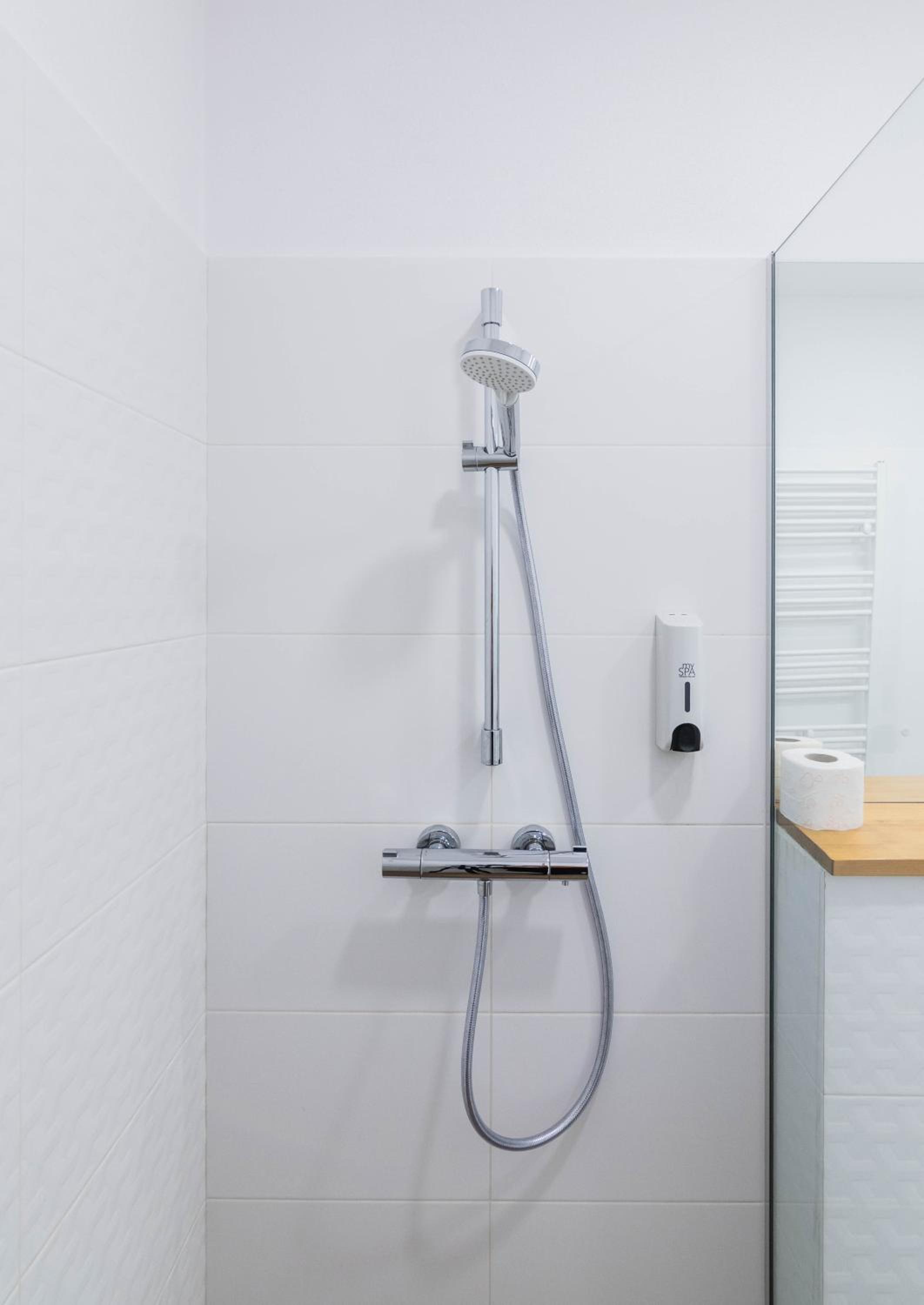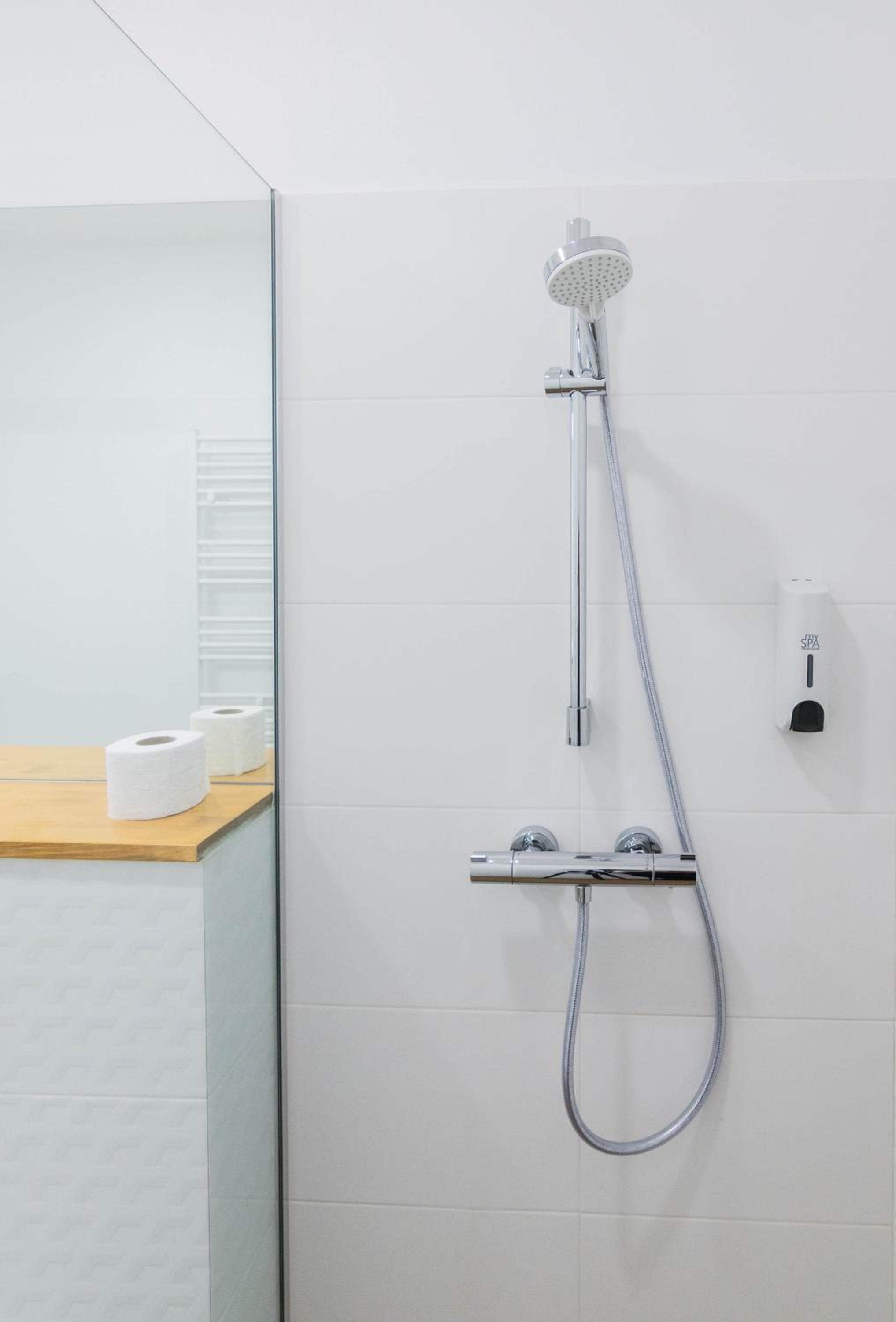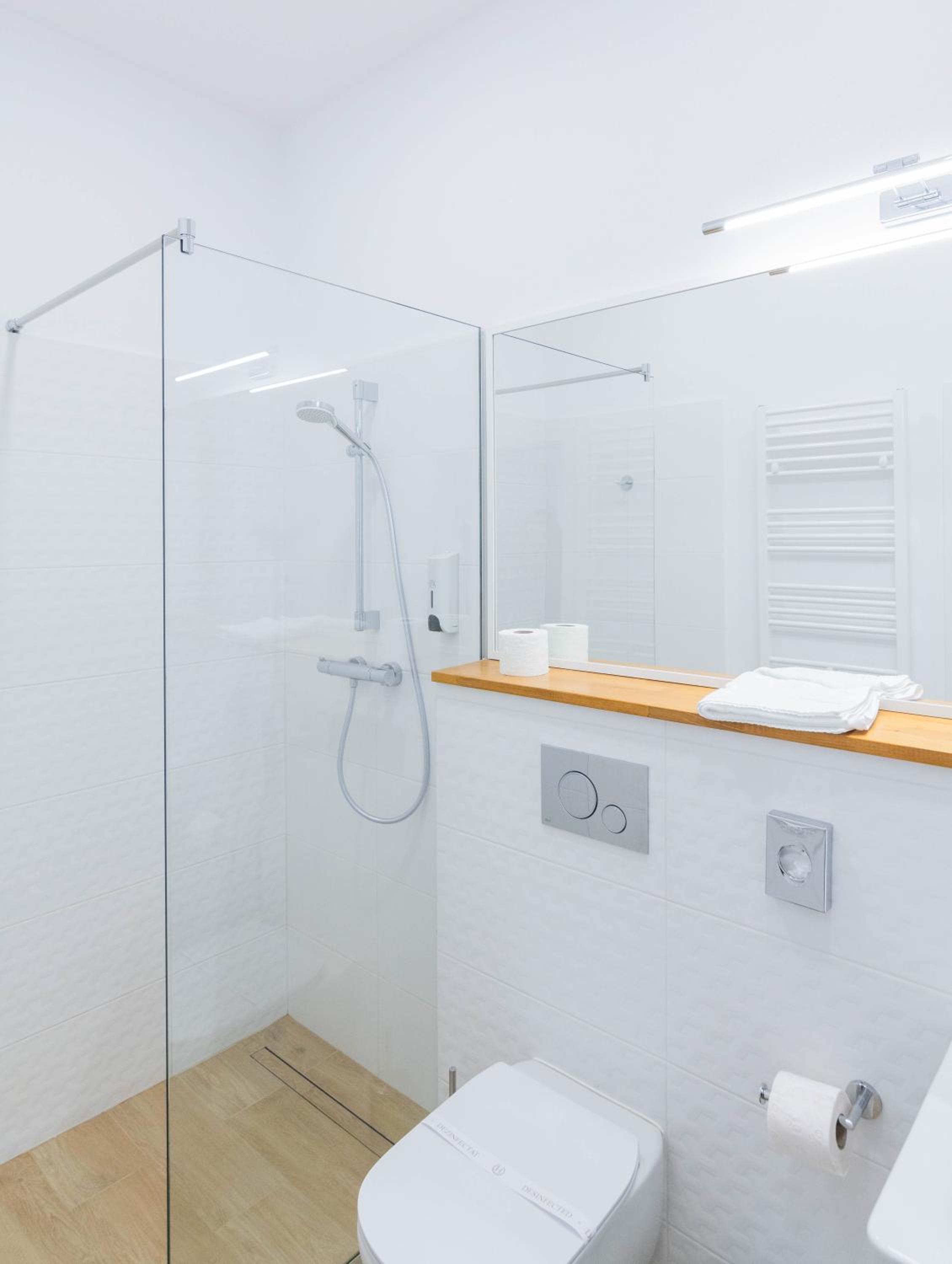 Трохи вода витікала через поріг душової кабіни. Поріг треба більший. Не було гігієнічних наборів.