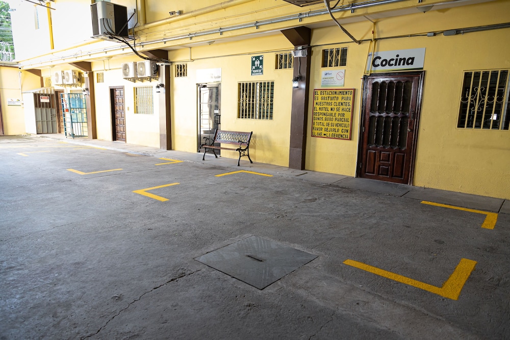 Garage parking. It is imporan to me. I had a rental car and even though we had insurance no body want to waste their time if the cehichle ges damage or stolen. I assume everyone would feel better knowing thwir vehicle is not expose to danger. Of course the place was very quiet. The vreaksfast is a regular Honduran breaksfast. It has a/c , ho wate and it was clean.
