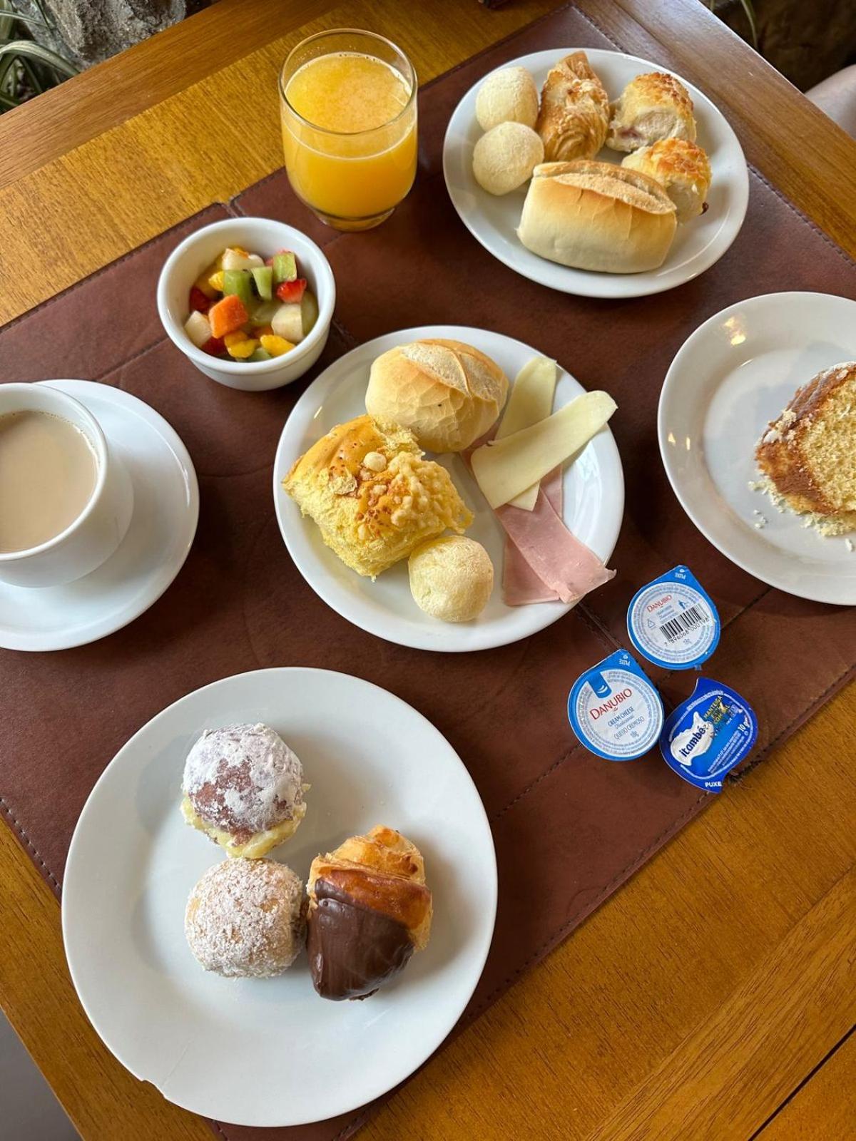 O café da manhã excelente, bastante variedade e muito saboroso.