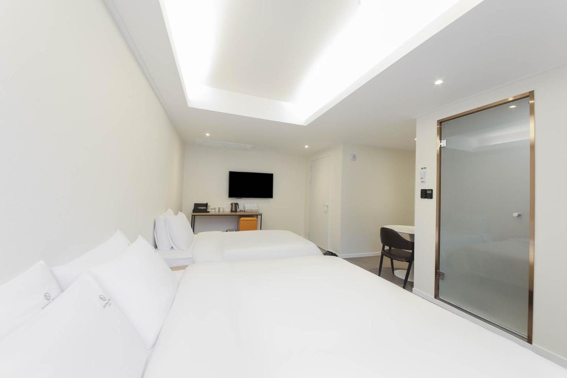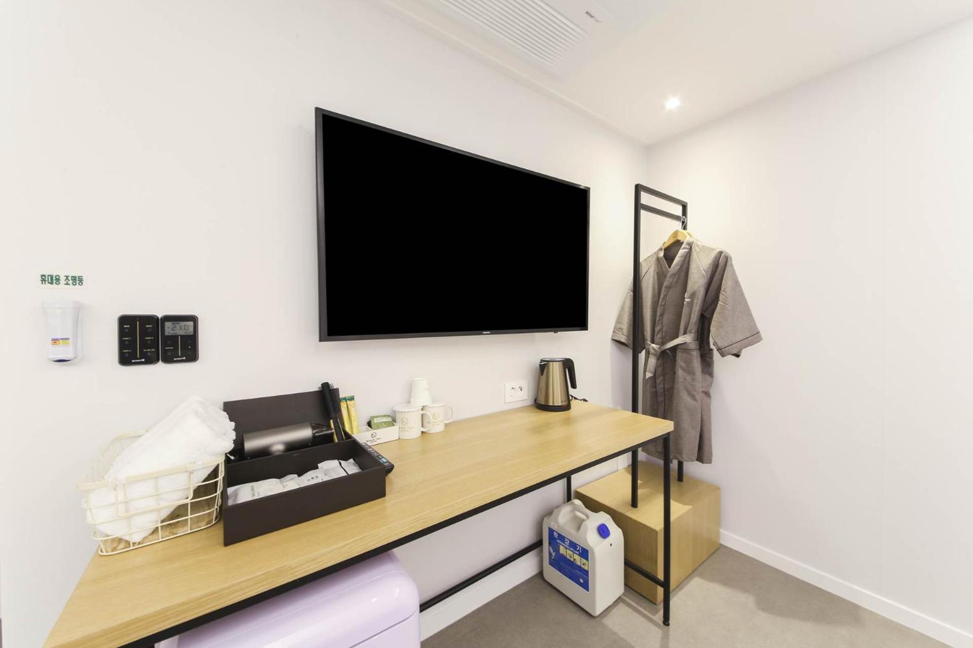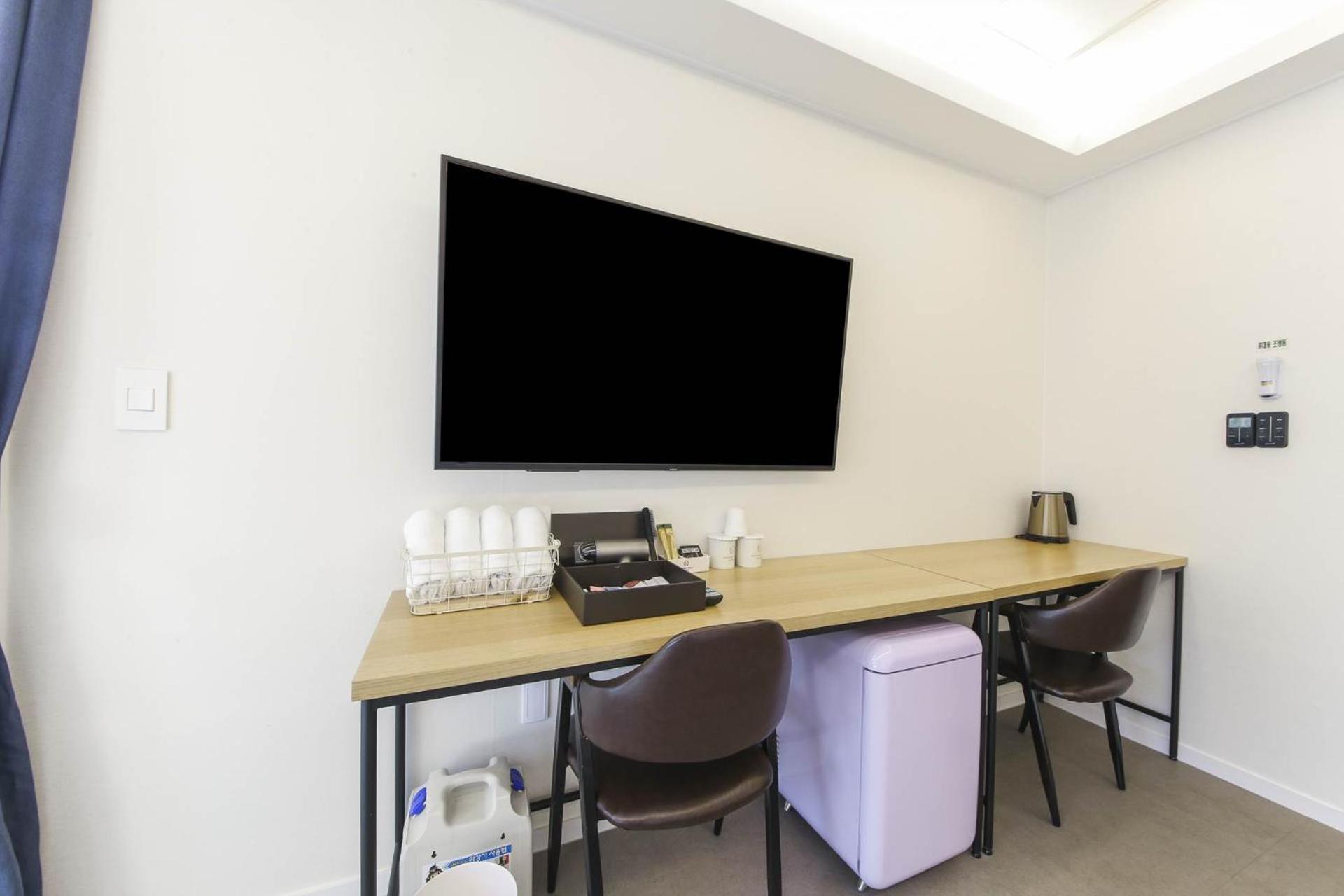 Cozy Guest Rooms: Each room is equipped with a kettle, air conditioning, and a flat-screen TV, providing a relaxing environment after a day of exploring Busan.