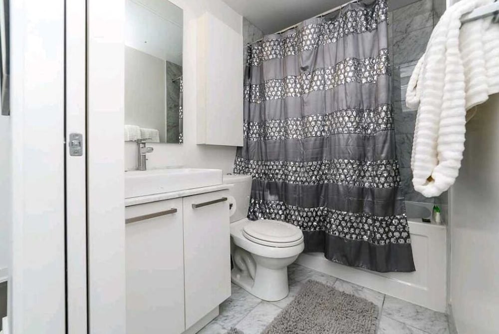 Great location, we were visiting Toronto for 3 days/nights and wanted a location close to Rogers Centre to take in a game, and see the downtown sites, couldn't have chosen a better location! The unit was very well equipped with full kitchen and all the cutlery, dishes, glasses, pots and appliances anyone would need to be just like home, including much appreciated in-suite laundry facilities. Super comfy bed, and communications with our host were very good, highly recommended!