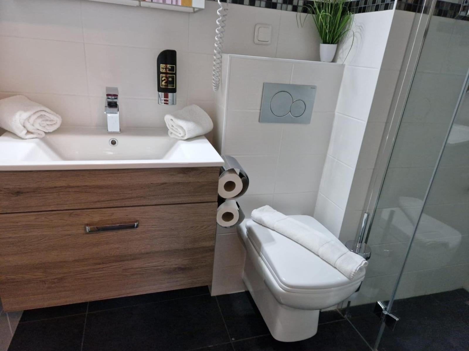 Gut ausgestattet, sehr sauber, gutes Frühstück.