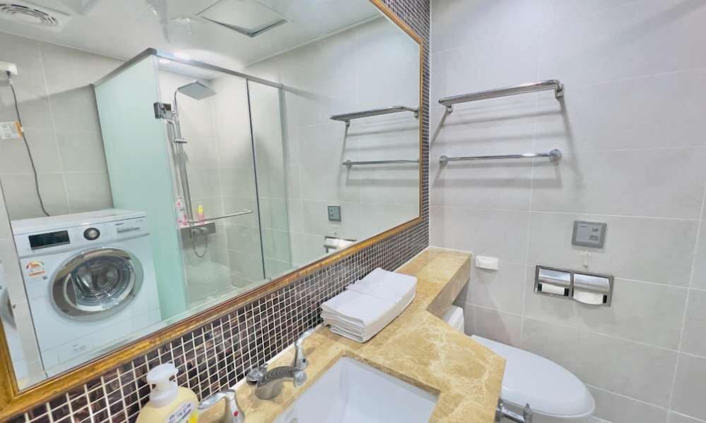 욕실 청소가 전혀 안되어 있었음 머리카락과 세면대에 불순물이 그래도 있고 전체적 청결상태는 놀라울 정도로 더러웠음 그래도 최악으로 하지 않은 평가이유 주차에 대한 시간적 여유를 배려 받았기 때문
