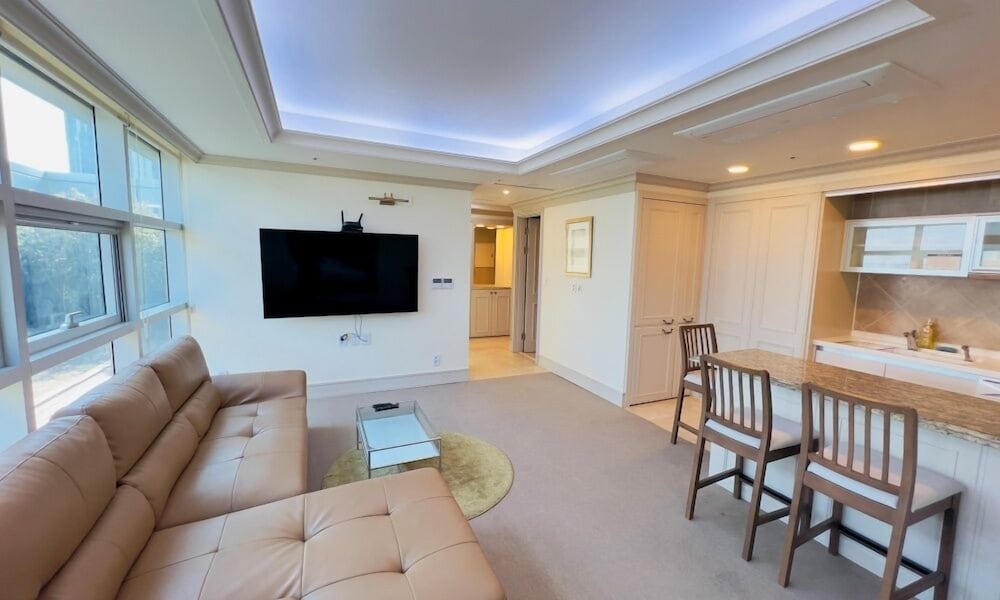 단점 위주로 적겠습니다. 한 건물을 센텀호텔과 센텀빅토리아호텔 두 법인이 운영하다보니 카카오맵 기준으로 센텀빅토리아호텔로는 검색이 되지 않았습니다. 고민하다가 일단 주차를 하고 로비에 직접 올라가 보고서야 동일한 건물을 두 호텔이 쉐어 한다는걸 알았습니다. 주차장은 넓었고 편하게 주차할수 있었습니다. 침실에 티슈와 휴지통이 없습니다. 주방 씽크대 하수구에 이전 투숙객의 음식물이 그대로 담겨있어서 초파리가 있었습니다. 입구쪽에 있는 침실은 모든 불을 껏음에도 희미하게 남아있어서 잠을 자는데 방해가 되었습니다. 아마도 LED 다운라이트와 맞지 않는 안정기가 연결되어있는듯 합니다. 그외에는 침구는 매우 깨끗하고 에어컨은 거실크기에 비해 두대나 설치되어있어서 아주 시원한 여름 휴가를 보낼수 있었습니다. 별4개는 충분해 보입니다.