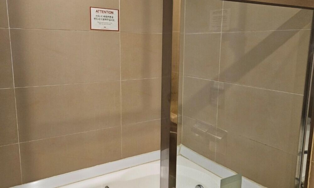 숙소는 넓습니다. 제가 묵은 방만 그런 구조인지 모르겠는데, 침대공간 옆에 병렬로 소파와 티비가 있어서 침대에 누워서 티비를 보려면 사선으로 봐야하는 점이 조금 불편했습니다. 카펫에 얼룩이 좀 있고 샤워기 배치도 몬가... 몬가... 싶긴 한데, 그렇게 나쁘진 않았습니다. 카펫 제외하면 전반적인 청결 상태는 매우 양호합니다.
