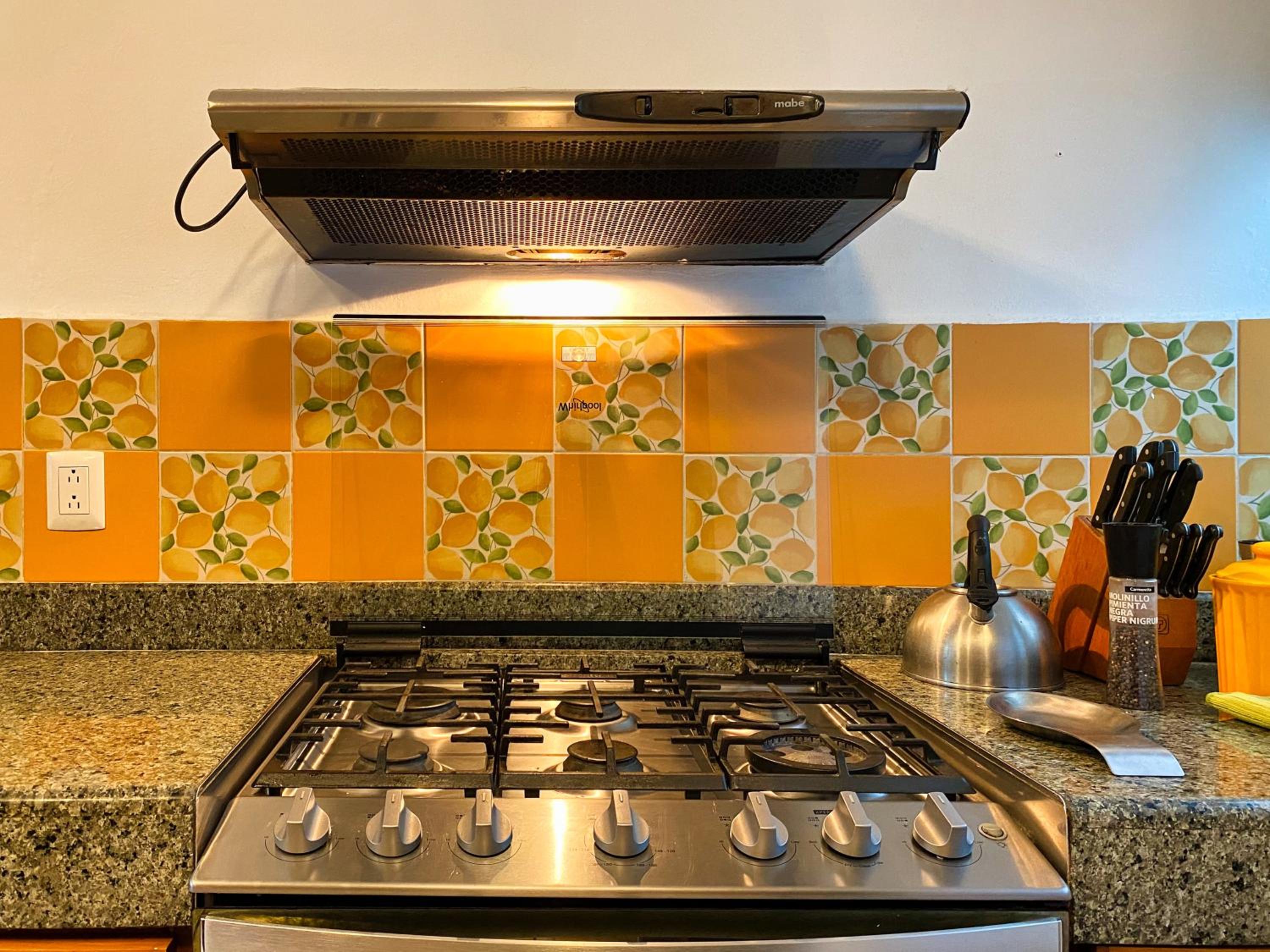 Te dan fruta café o té durante las mañanas . La cocina tiene todo para armarte un desayuno, comida y cena.