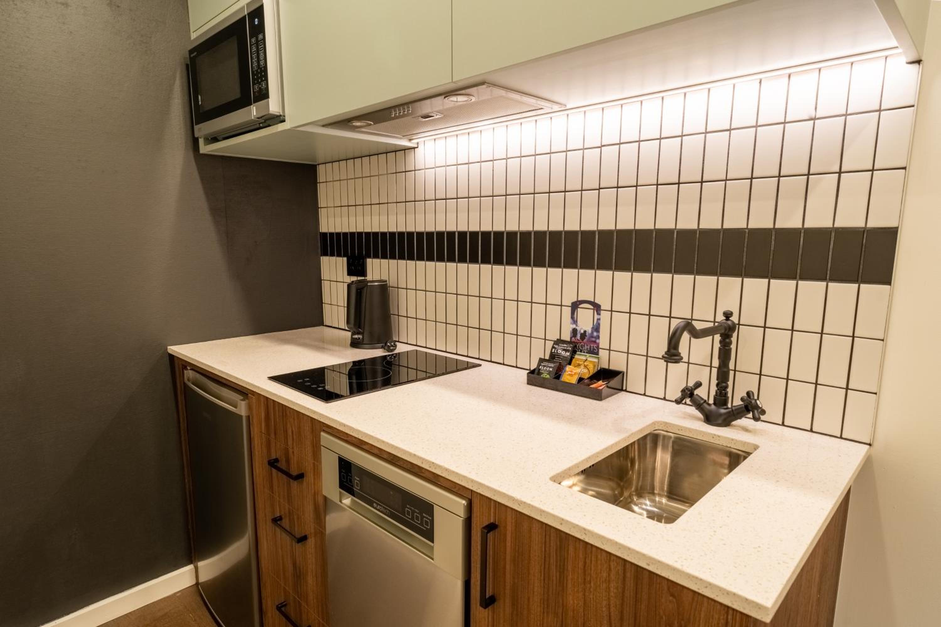 The suites are beautifully finished with quality appliances. My husband enjoyed the small gym. I enjoyed the excellent coffee available all day in the lobby