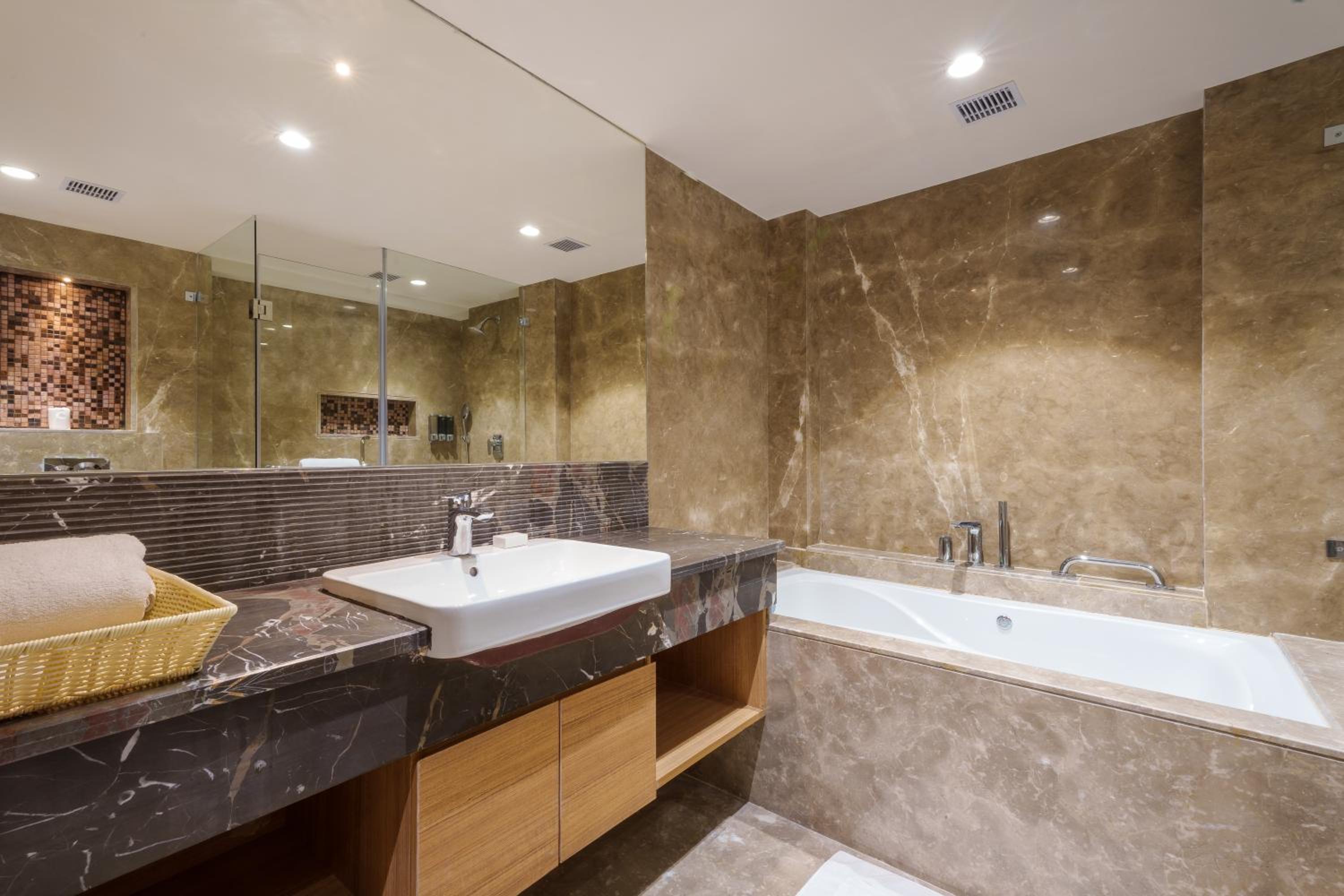 The rooms were very nice and spacious but their restaurant s were bad with very cheap and rude customer service. Most of the staff was either busy talking among themselves or on their phone. Their coffee shop sucks