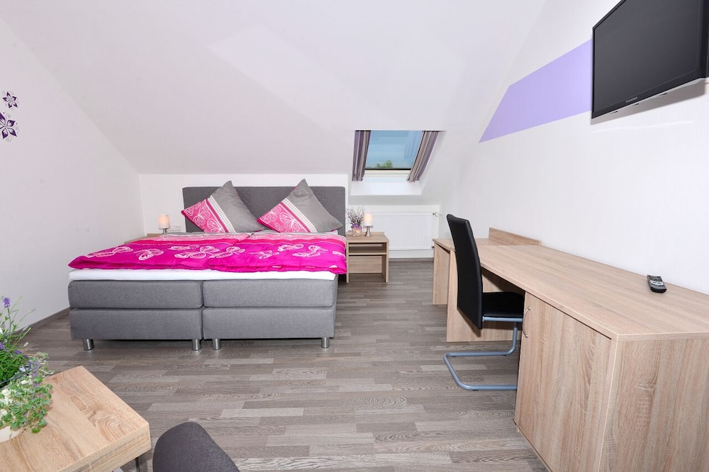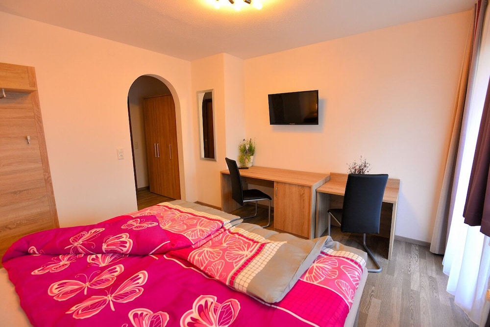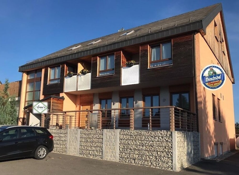 Wir haben nach einer Unterkunft nicht zu weit entfernt von der Siebenquell Therme gesucht. Das Arnis stach heraus mit besonders guten Bewertungen und einem attraktiven Preis. Wir wurden auch nicht enttäuscht. Die Gastgeber waren stets zuvorkommend. Das Zimmer war sehr ruhig, sauber und schön eingerichtet. Das Frühstück wurde an den Tisch gebracht. Glutenfreies Frühstück zu bekommen war kein Problem. Parkmöglichkeiten gab es direkt vor dem Haus. Wenn wir noch mal in der Region sind werden wir definitiv wieder dieses Hotel buchen.