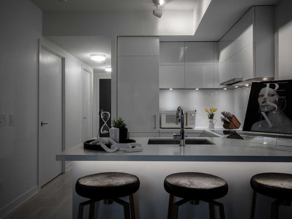 My husband and I stayed in the lovely 2 bedroom, 2 bathroom suite while our home was having some repairs done. From the very beginning of our stay, both customer service and the premises were exceptional. Kalani, the manager of the suite, greeted us warmly and made check-in very easy. He was extremely helpful, polite, professional, informative, and always very easy to reach whenever we had any questions. The suite was very clean, bright, spacious, well organized, and the office area in addition to the dining area, provided more than ample room for both of us to conduct work and zoom meetings. In addition, having a full kitchen and washer and dryer was extremely helpful and convenient. The bed is extremely comfortable and all linens are of fine quality. The location is excellent, and for us, very convenient as it was within walking distance of our home. In addition to highly recommending this suite for a vacation stay, I would also highly recommend it for others like ourselves, who live in downtown Toronto and require temporary accommodation while home repairs or renovations are being done.