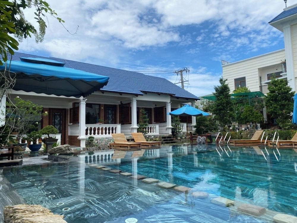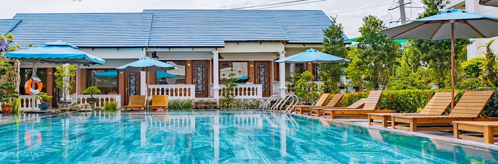 By car/motorbike, 5 mins to town, 10 mins to main resorts and Long Beach, 15 mins to airport, and within 45 mins of other, better beaches on the island. Some might ding the location, but it was quiet, no pesky roosters, and central for beach excursions. I rented a motorbike from the hotel but Grab app taxis are easy. It is not ocean front, but it is excellent value for the money, and one of the better budget hotels I stayed at in Vietnam. And that oh so sunny pool!