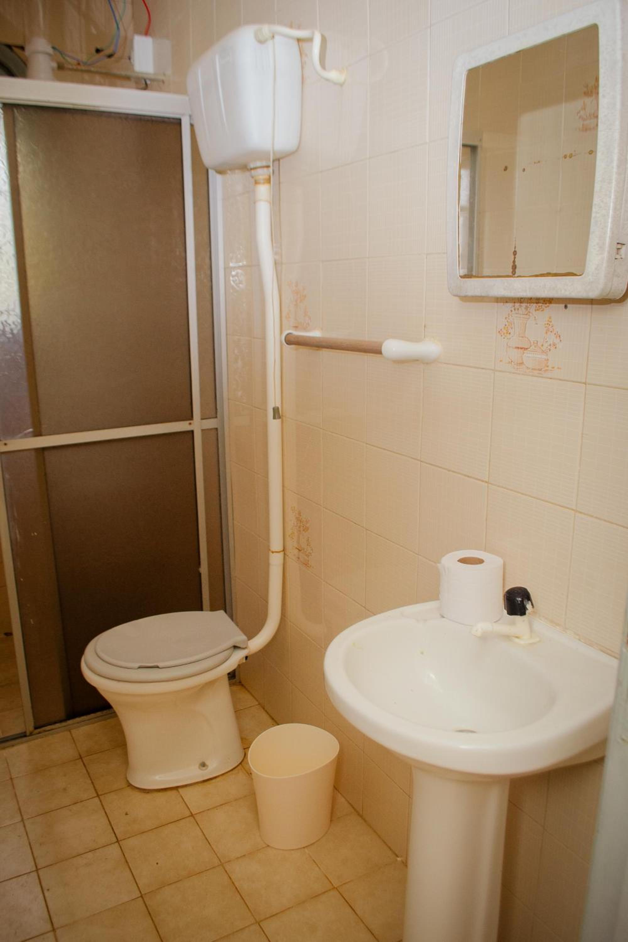 Banheiro sem condições para tomar banho, chuveiro horrível