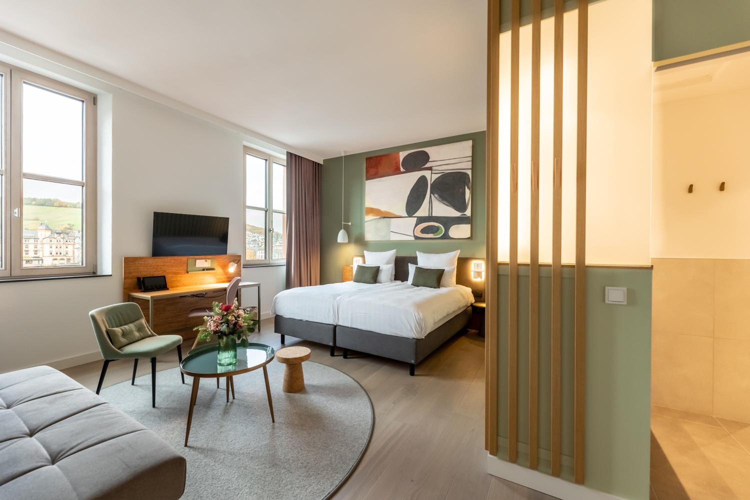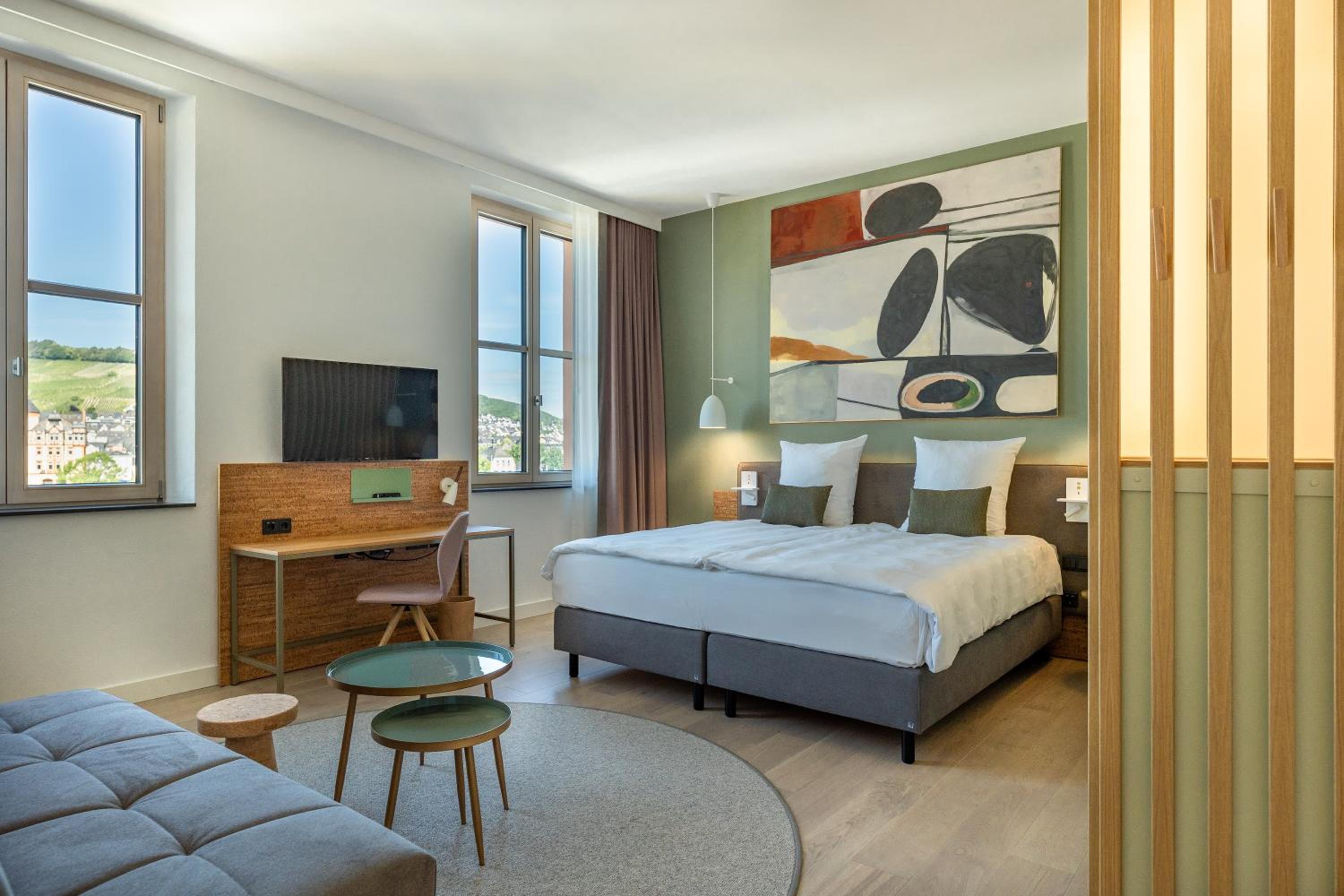 Tolle Lage mit Blick auf die Mosel, zuvorkommendes Personal und besonders geschmackvoll eingerichtete Location abgerundet, mit viel schöner Kunst