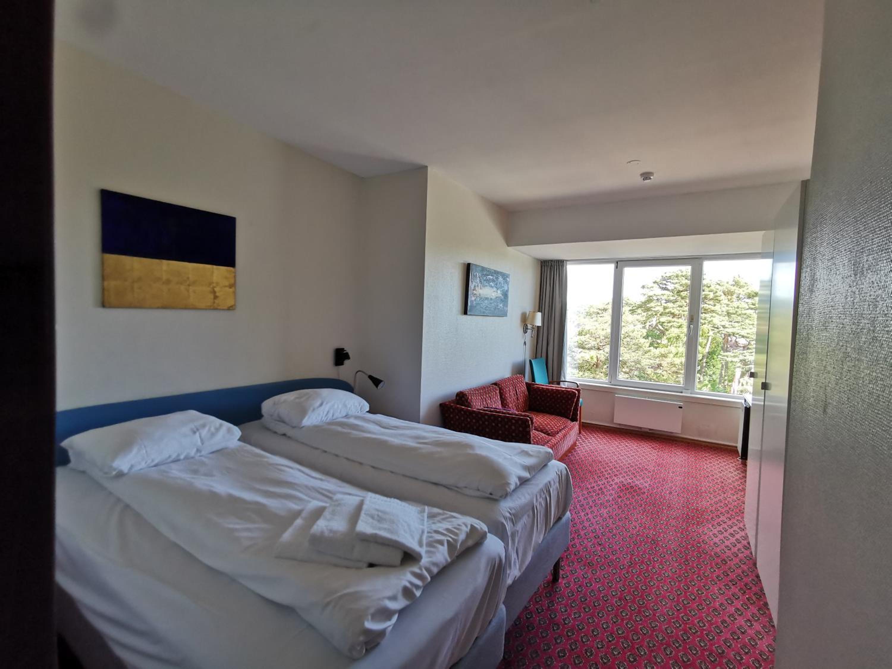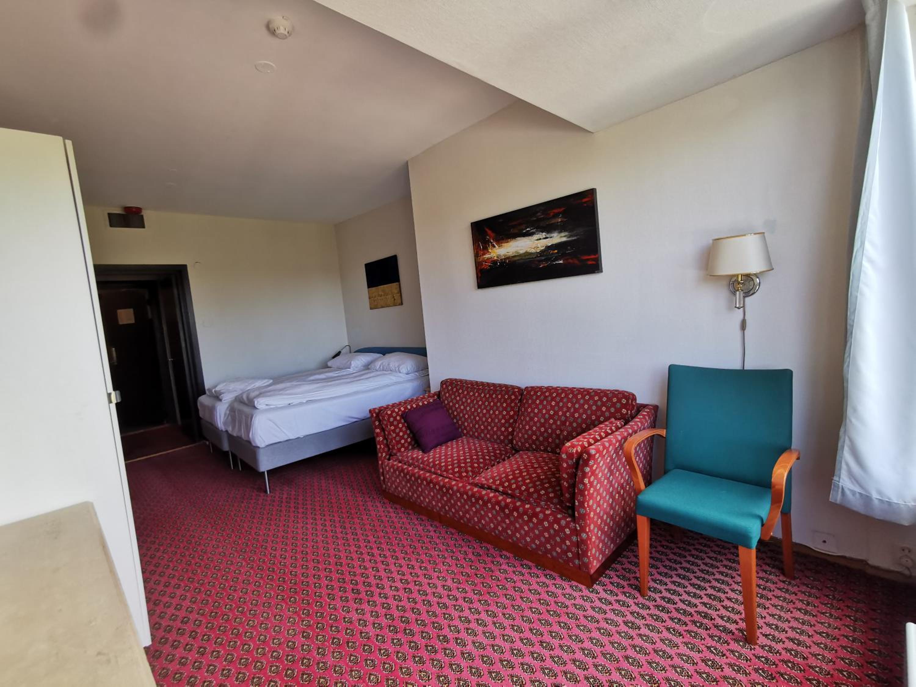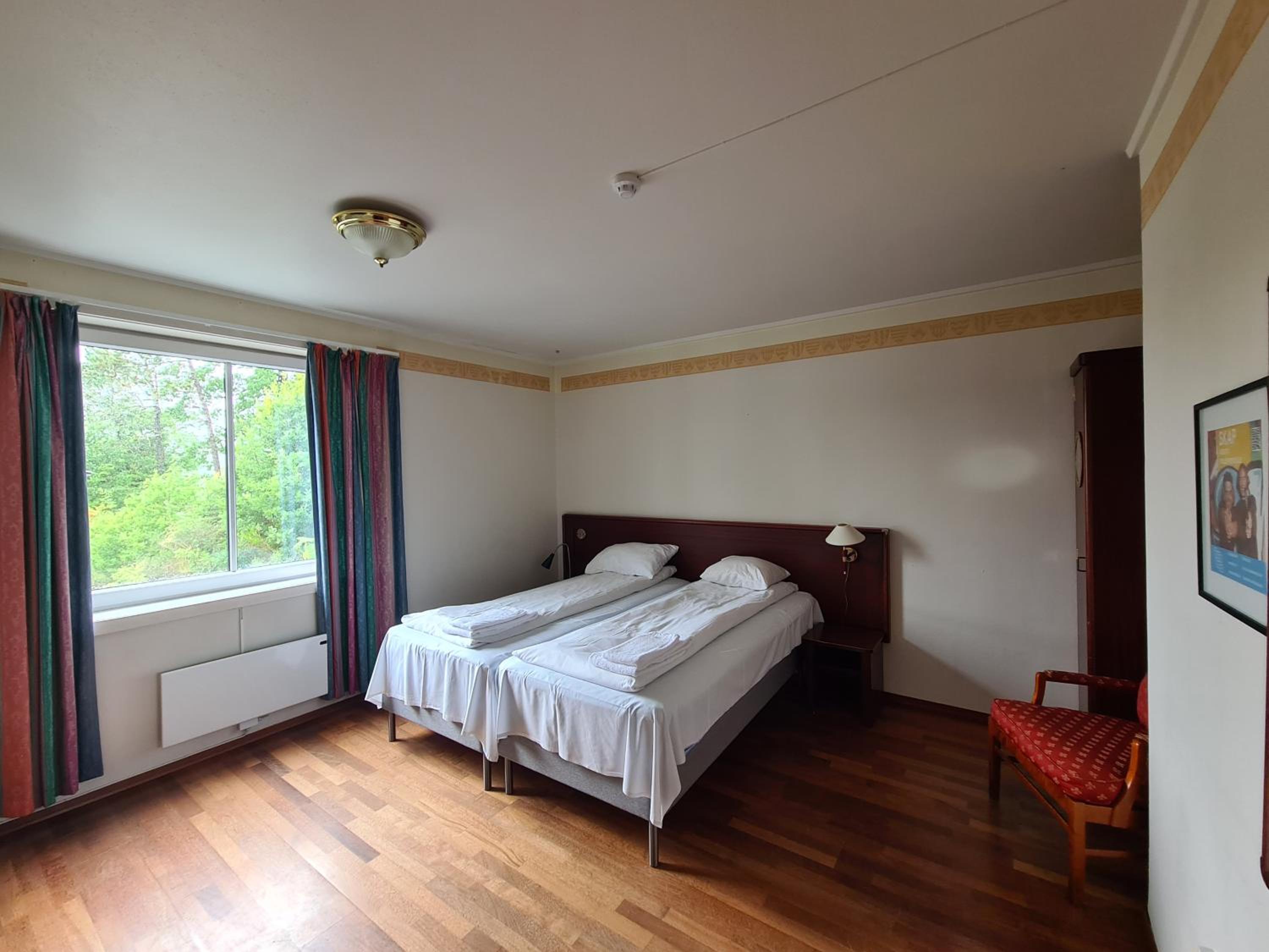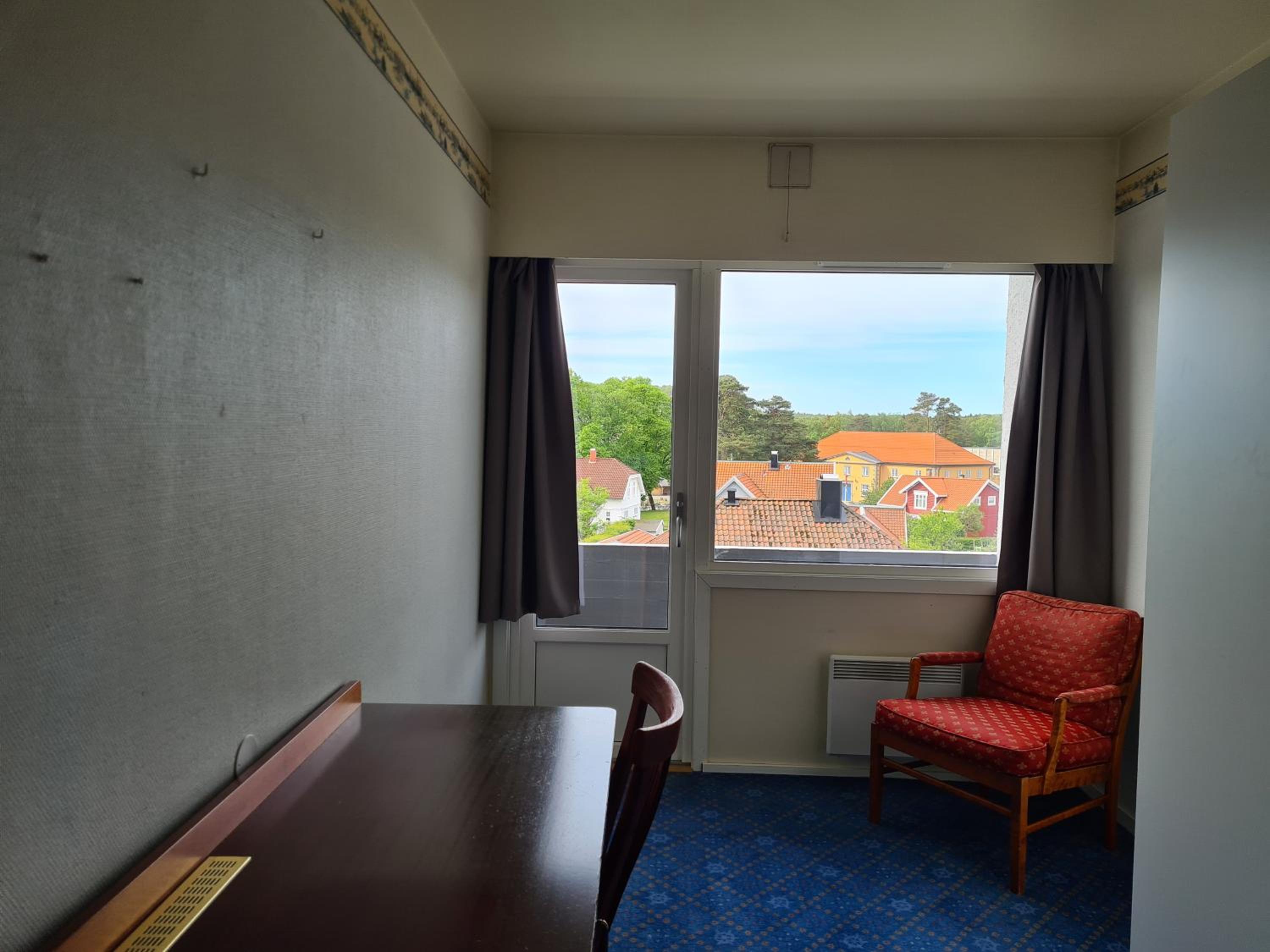Lage super, Personal freundlich, Für Schwedische Verhältnisse angenehme Betten, und ein wirklich großes Zimmer.