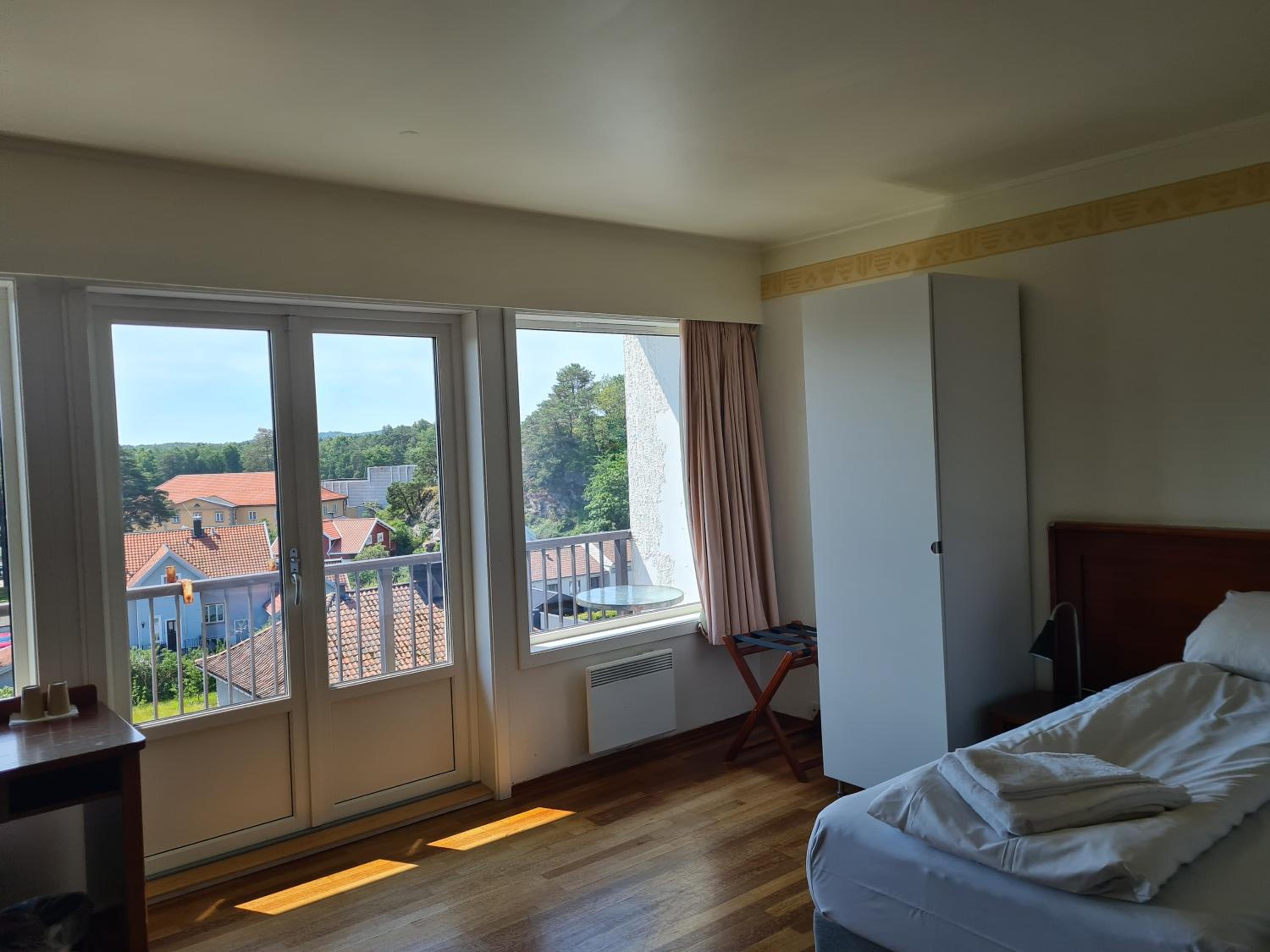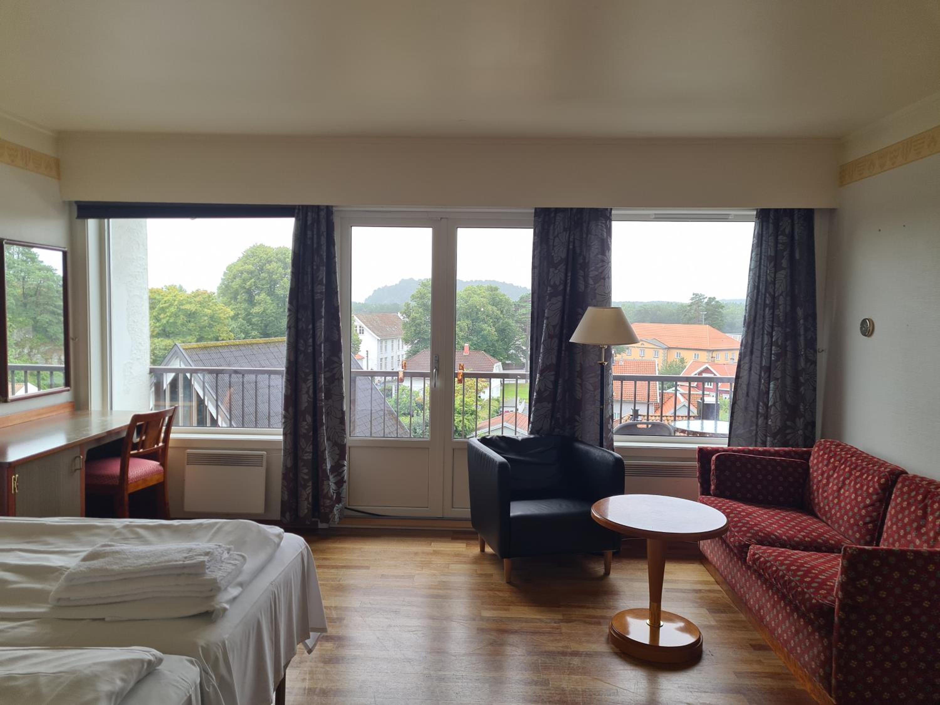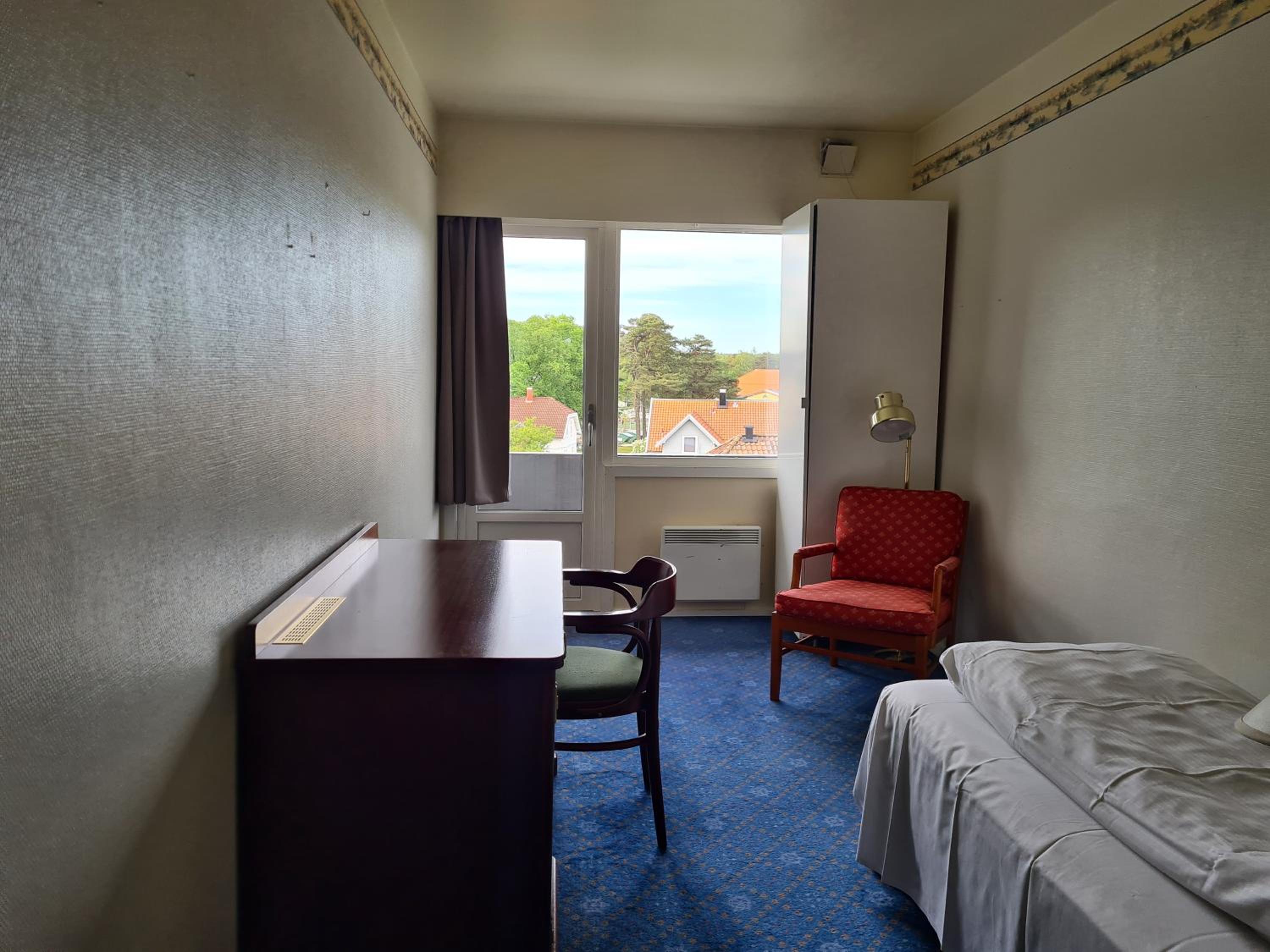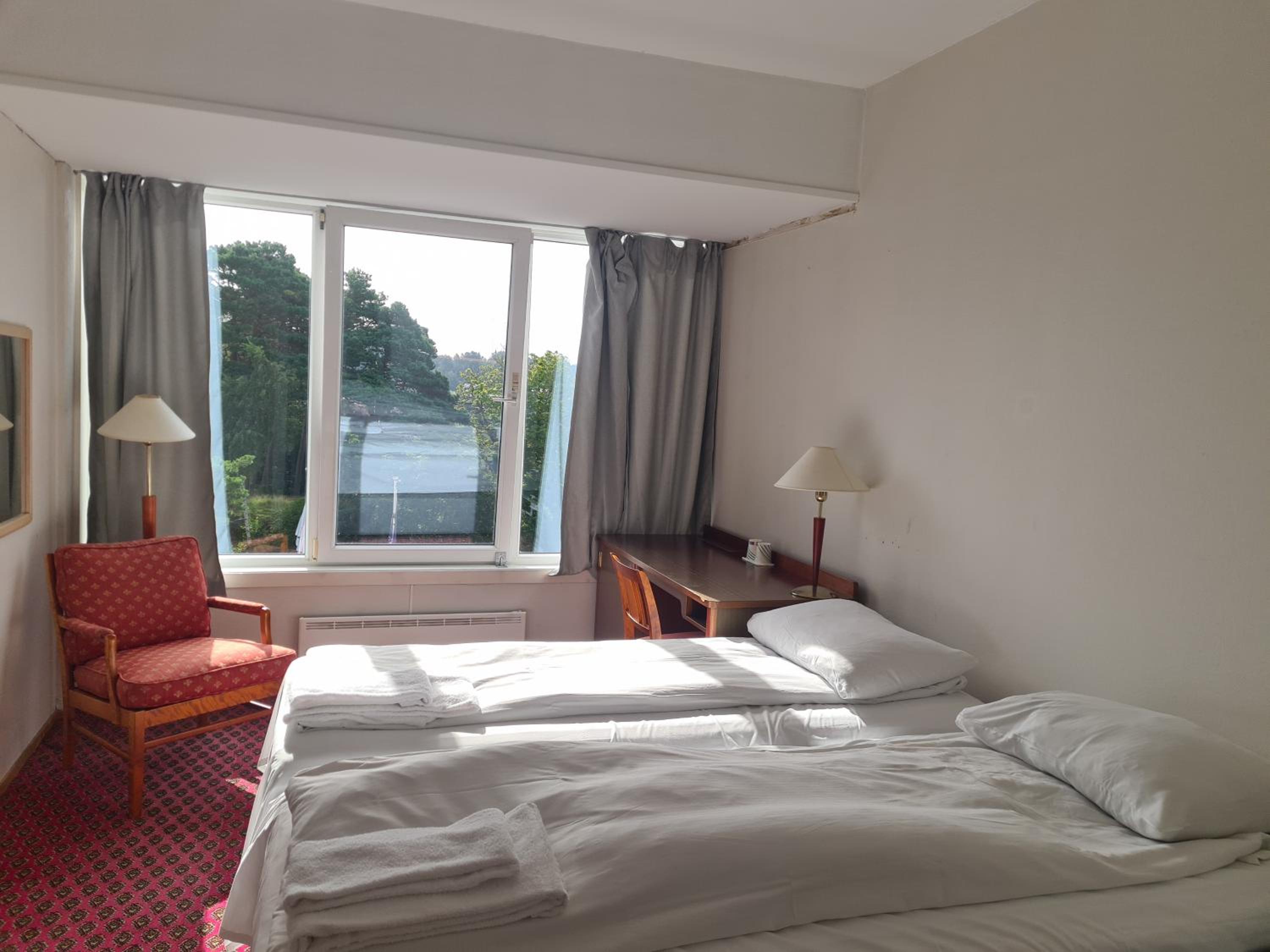 Lage super, Personal freundlich, Für Schwedische Verhältnisse angenehme Betten, und ein wirklich großes Zimmer.