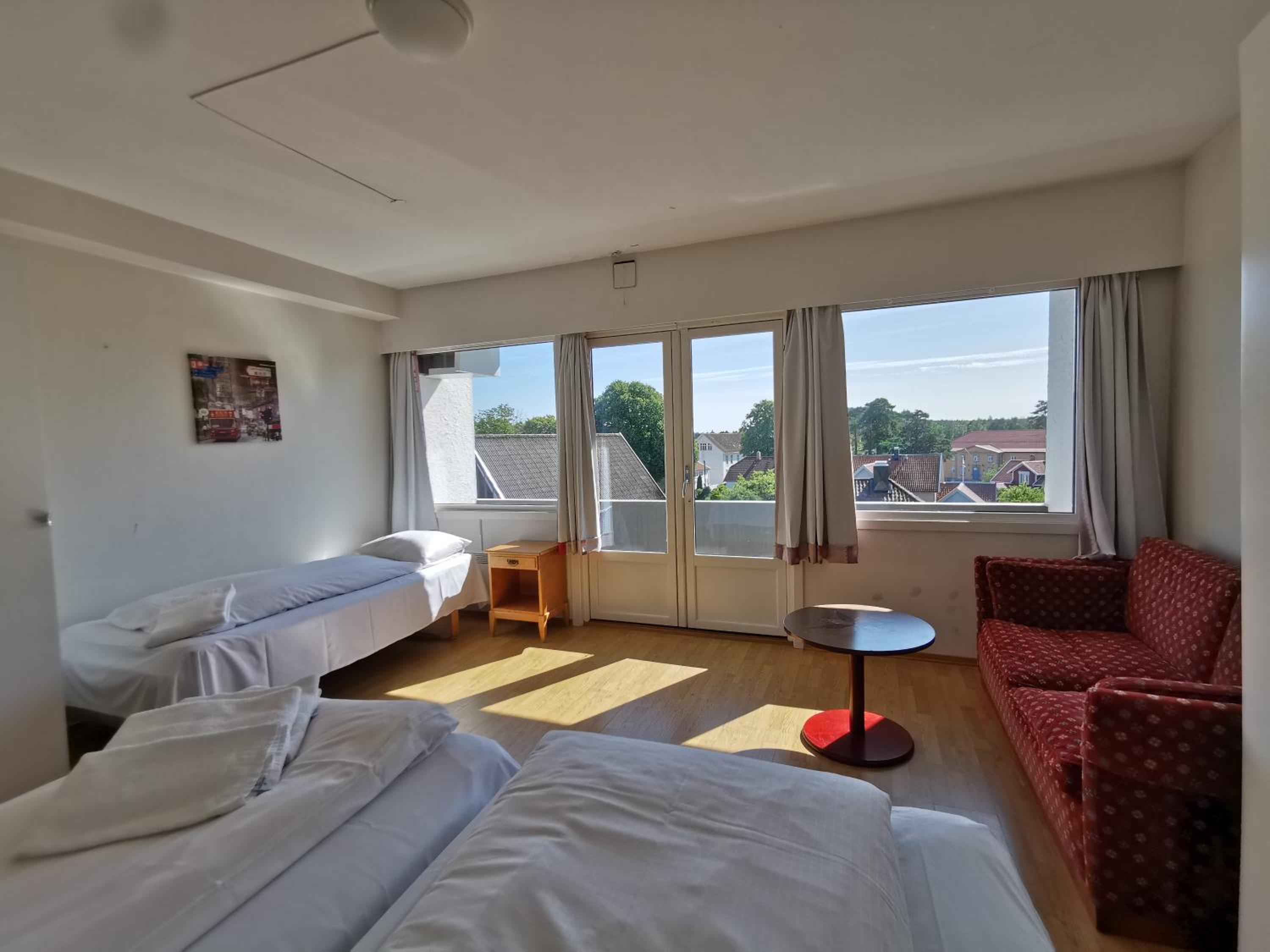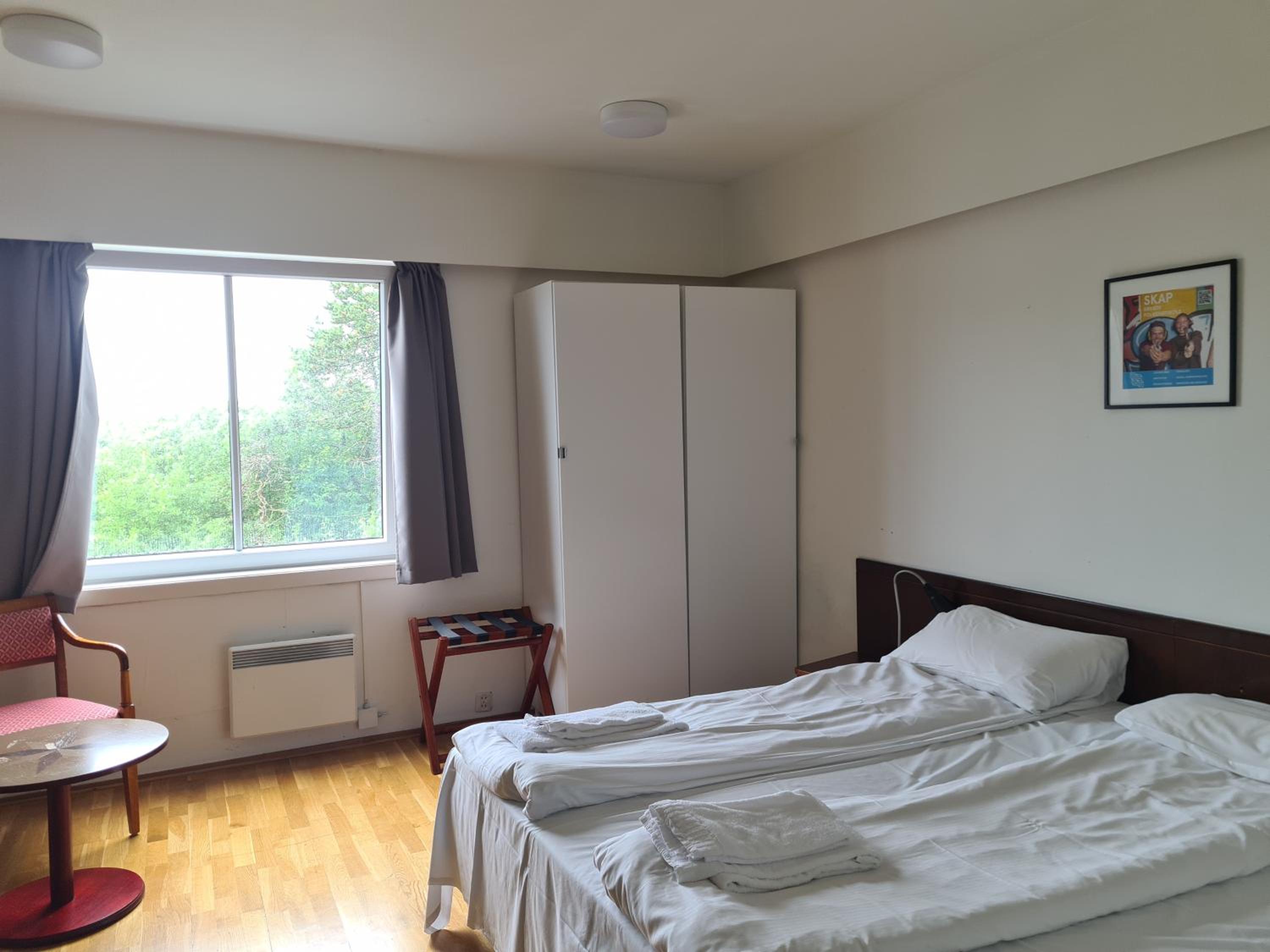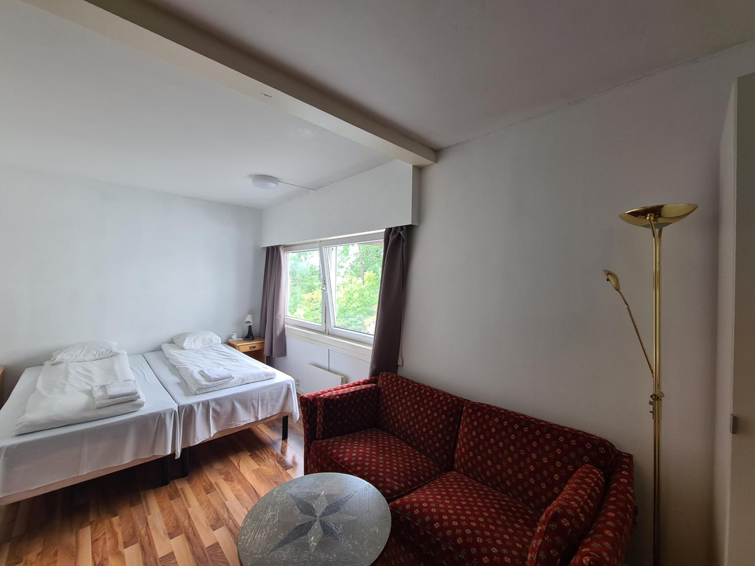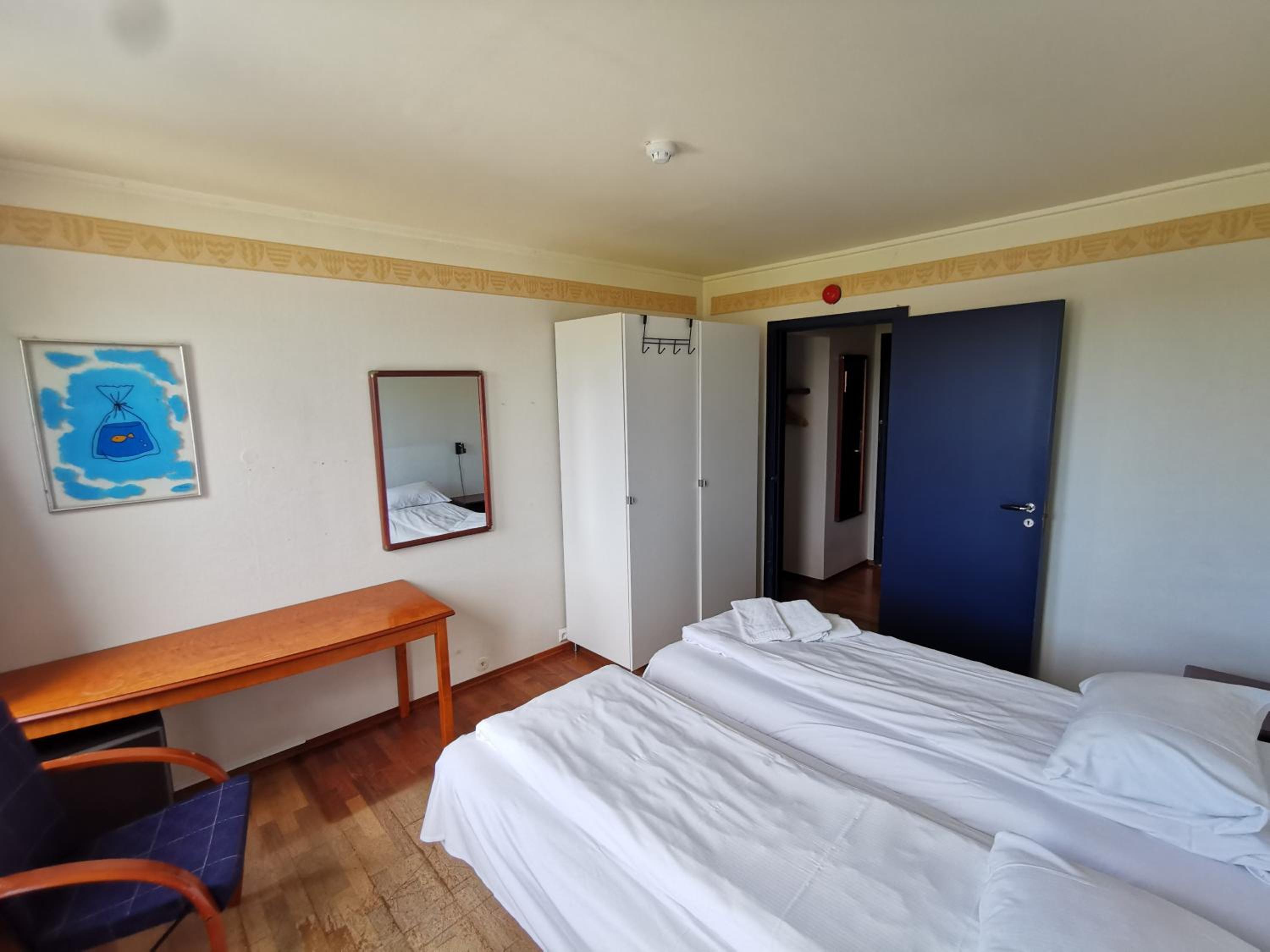 Lage super, Personal freundlich, Für Schwedische Verhältnisse angenehme Betten, und ein wirklich großes Zimmer.