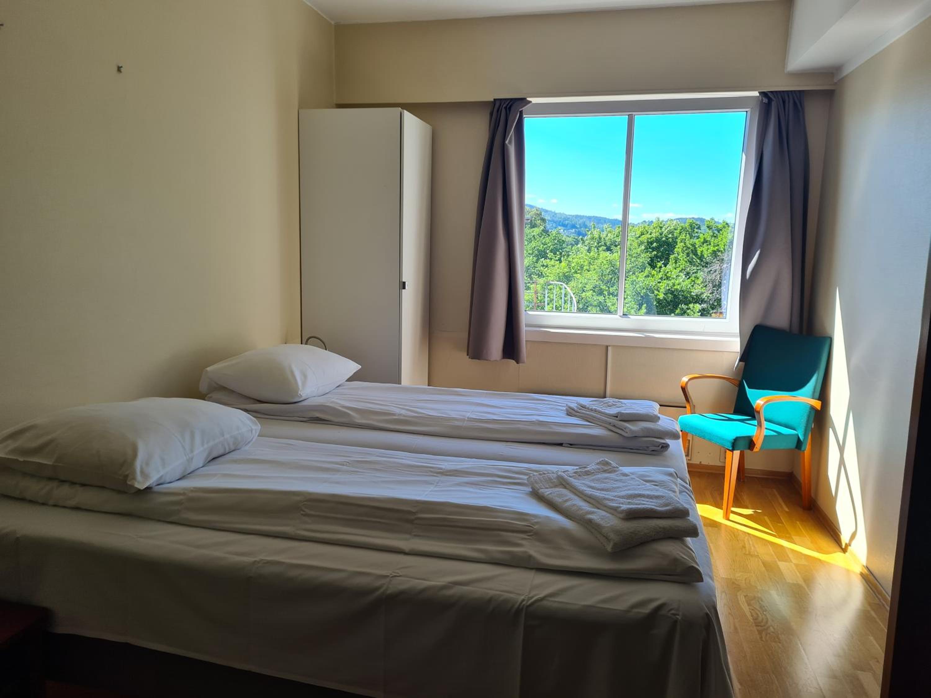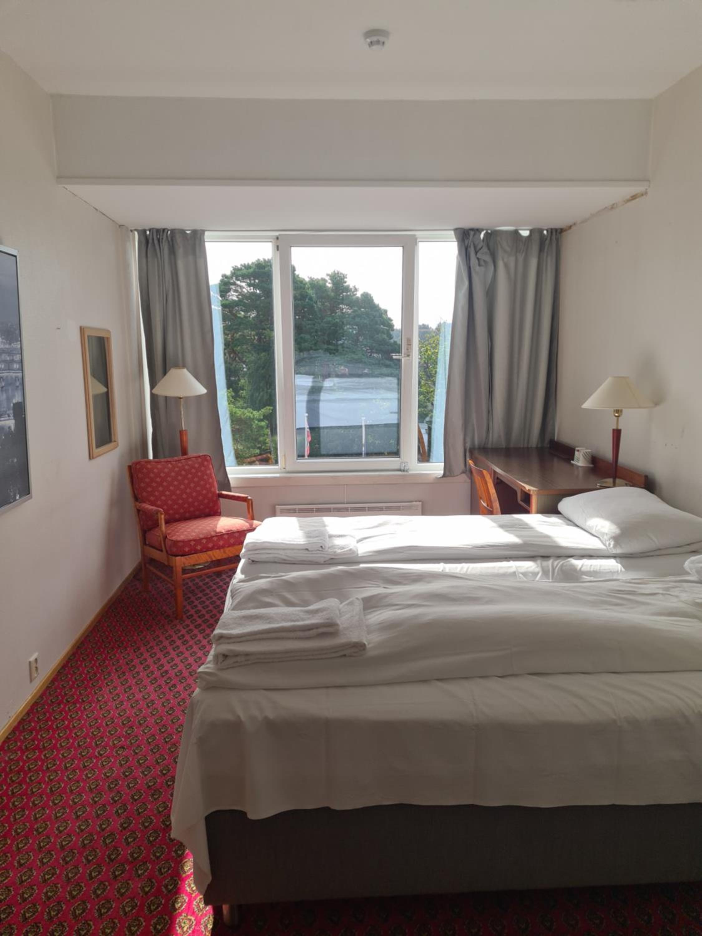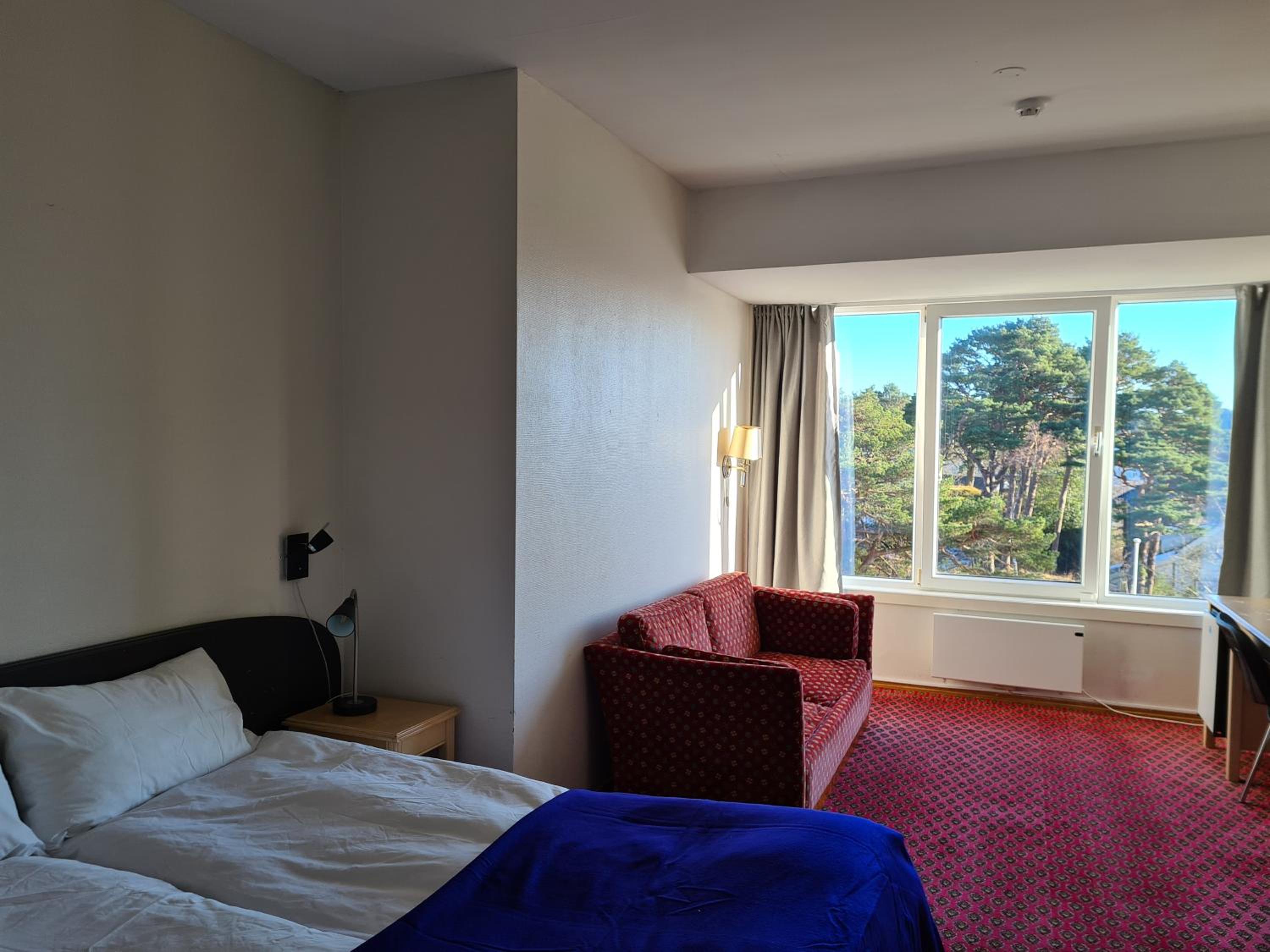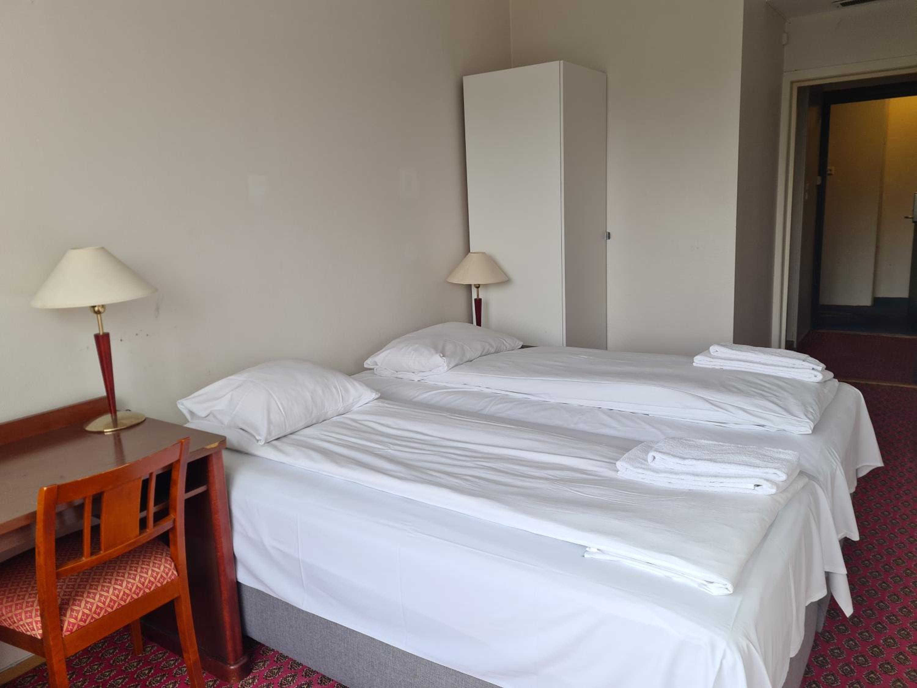 Lage super, Personal freundlich, Für Schwedische Verhältnisse angenehme Betten, und ein wirklich großes Zimmer.