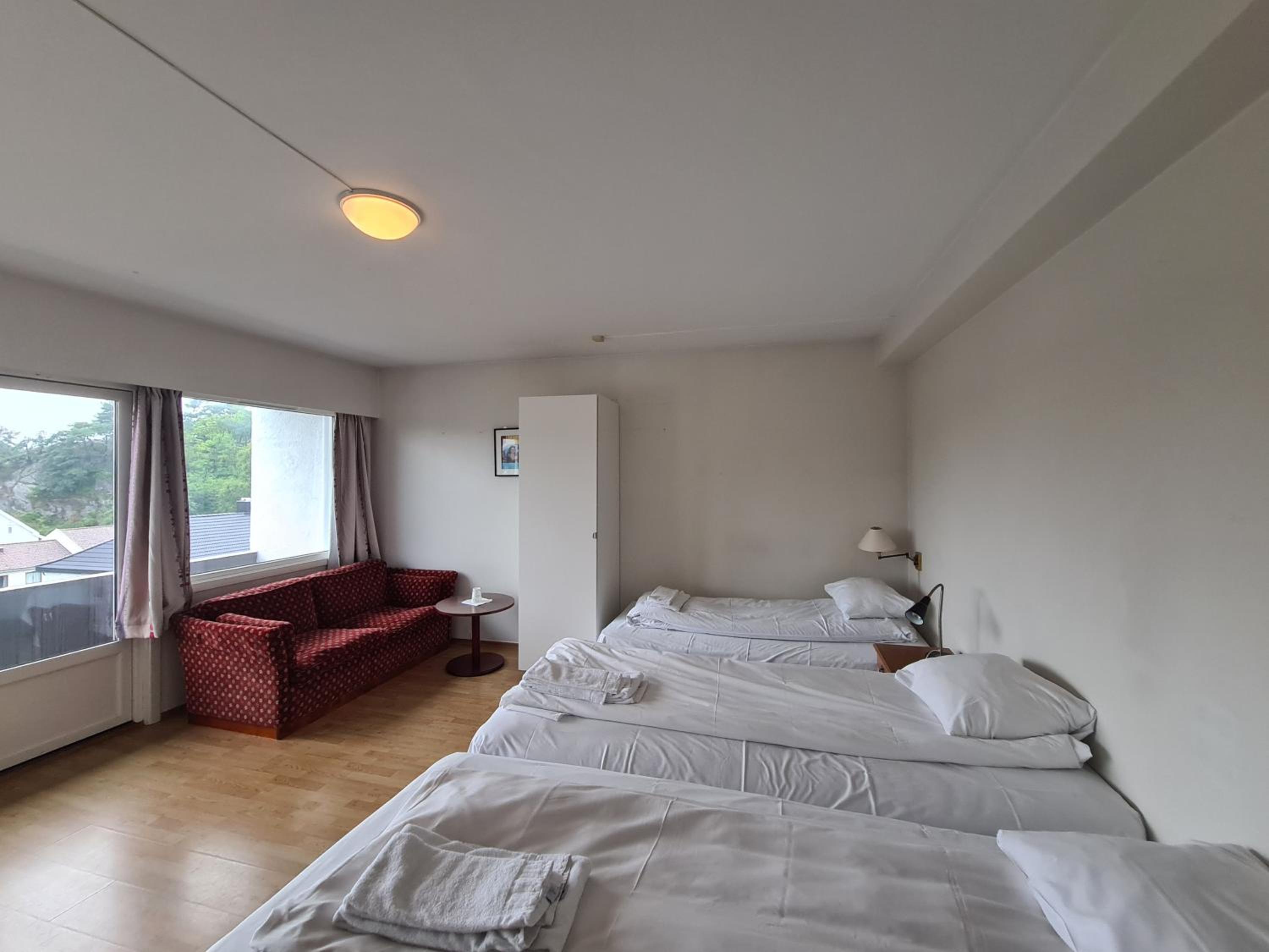 Billig og at familierommet var stort og hadde 2 soverom. Føltes ut som ein liten leilighet. D var eit lite kjøleskap og balkong.