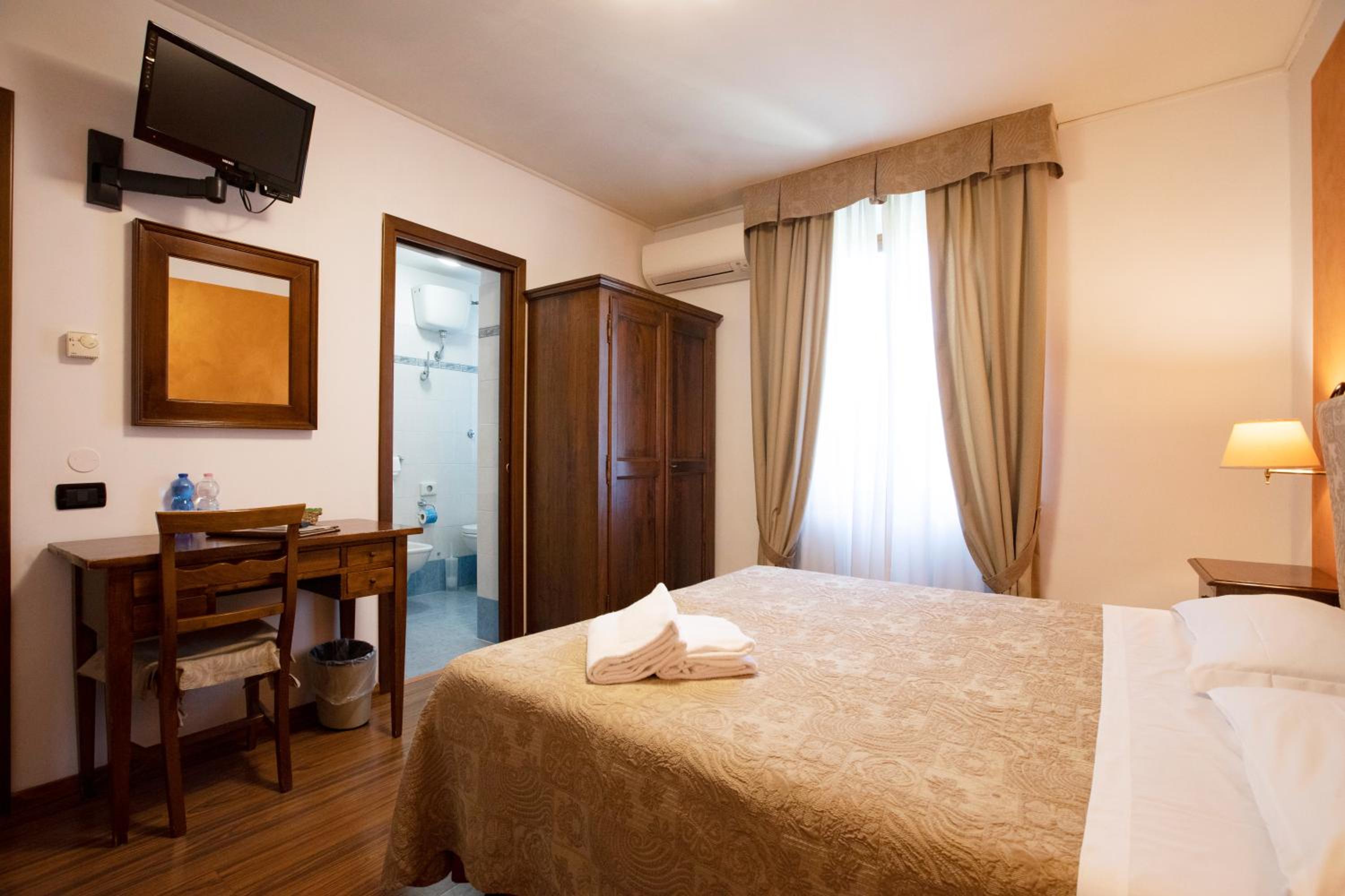 Each room at Hotel Arcobaleno Siena features a desk, flat-screen TV, and complimentary toiletries for a comfortable stay. Guests can enjoy daily breakfast with buffet, continental, and Italian options.