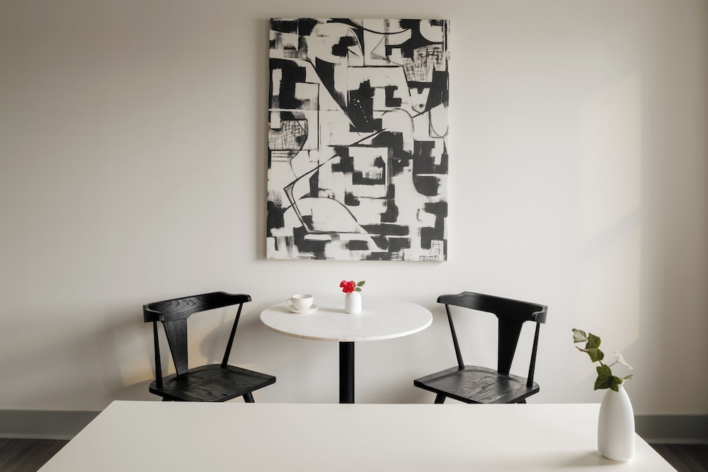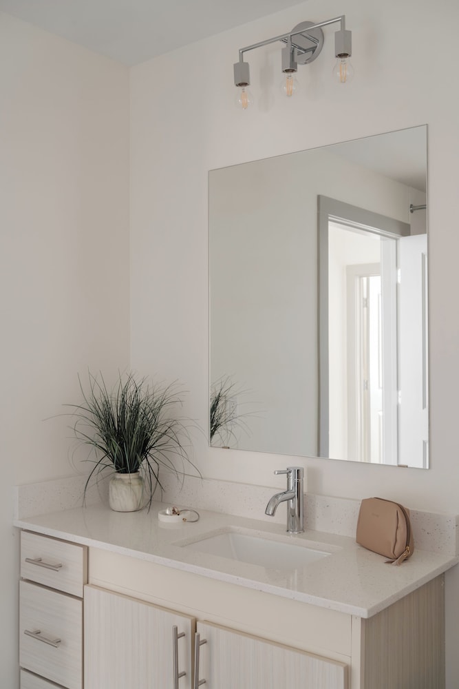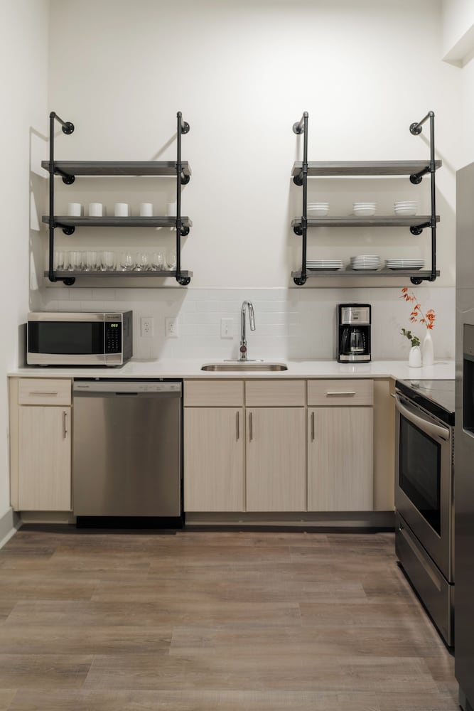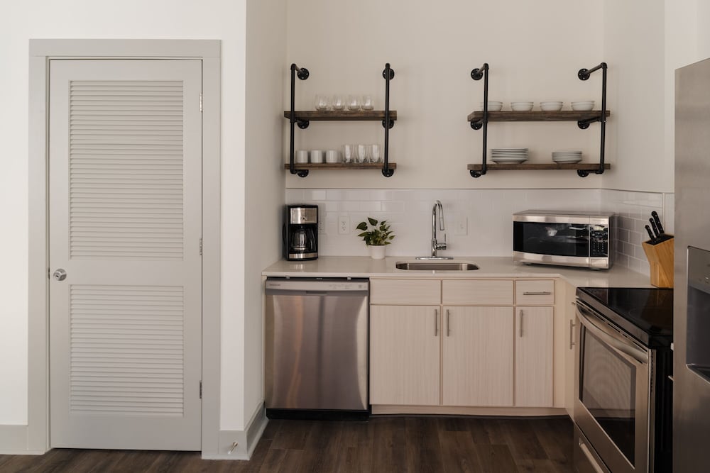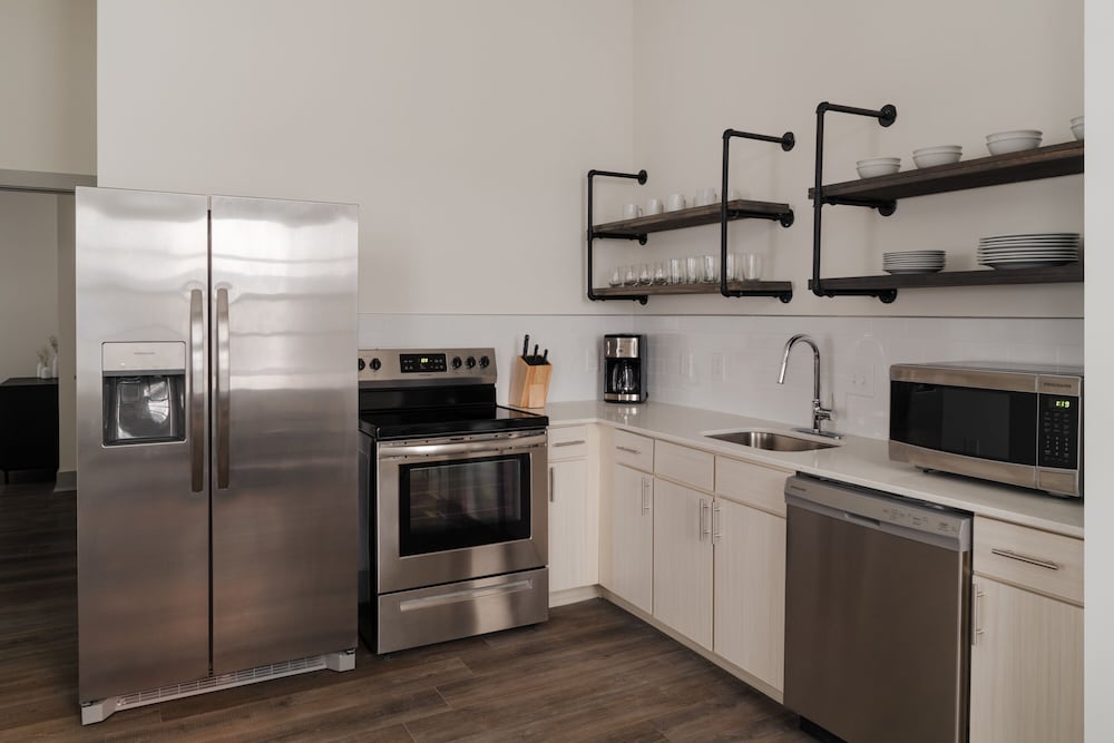 The apartment unit had all the basics amenities. I loved that the fridge had a water dispenser as well as a whole Bevi fountain in the lobby/lounge. Super convenient location. Also really appreciate their pet-friendly policies!