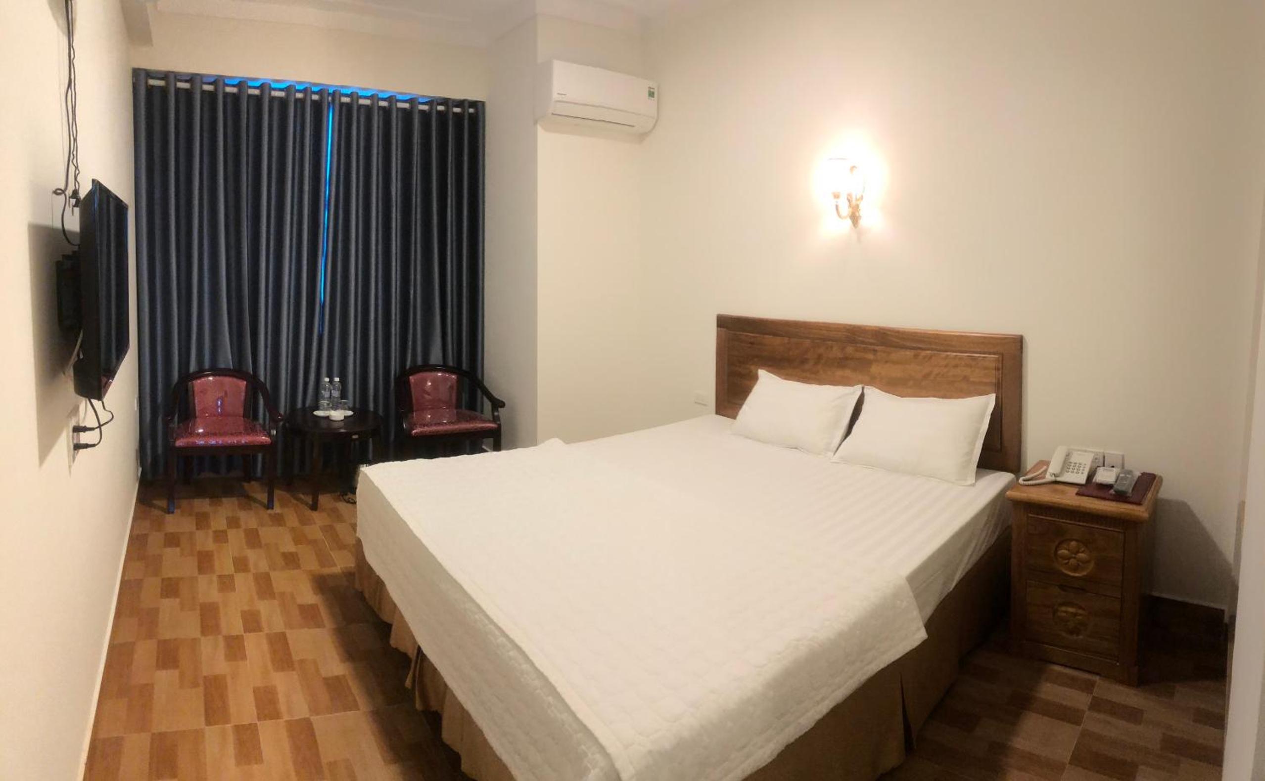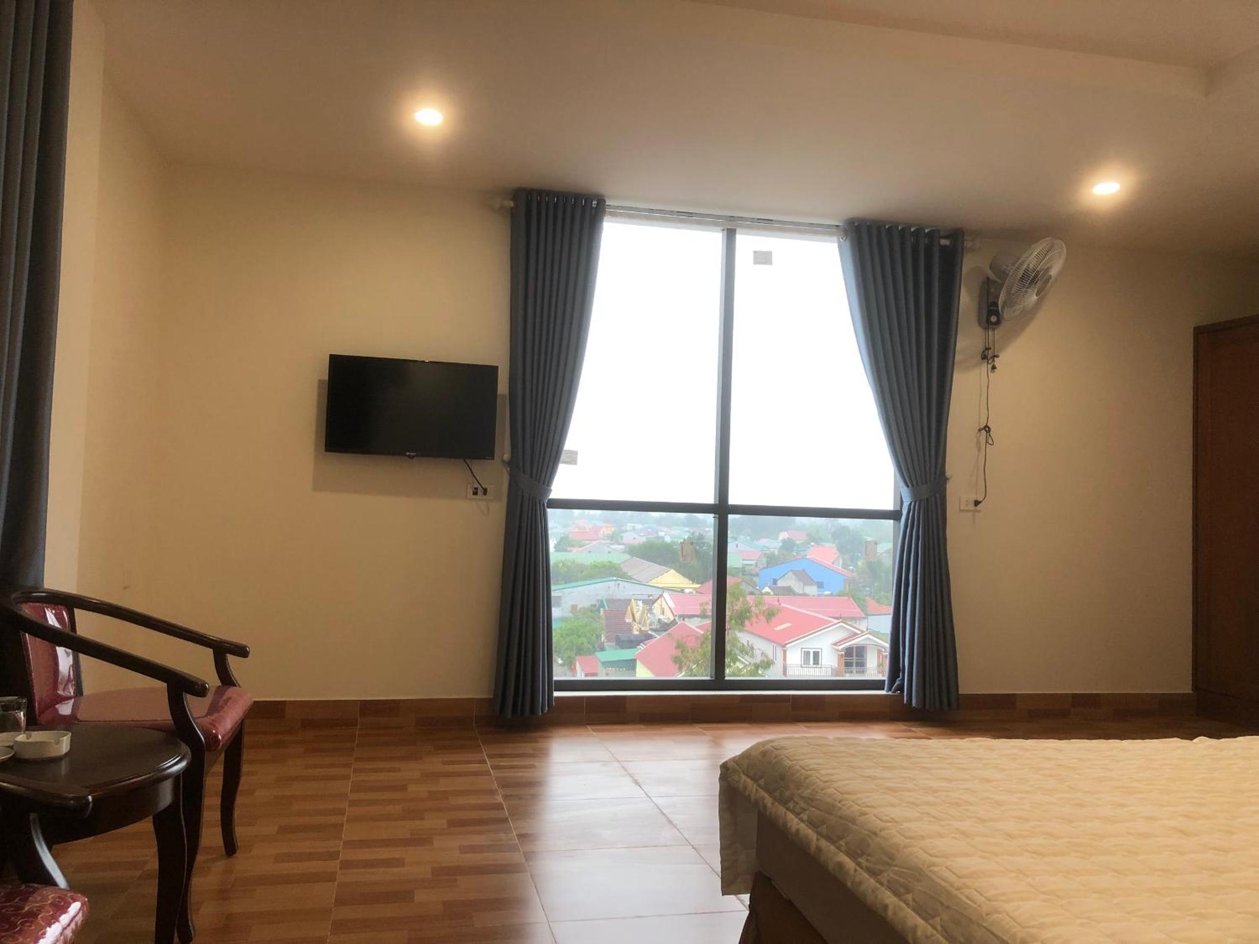 Relax in well-equipped rooms featuring modern amenities like air conditioning, flat-screen TVs, and private terraces overlooking the city at Trường Thịnh Hotel.
