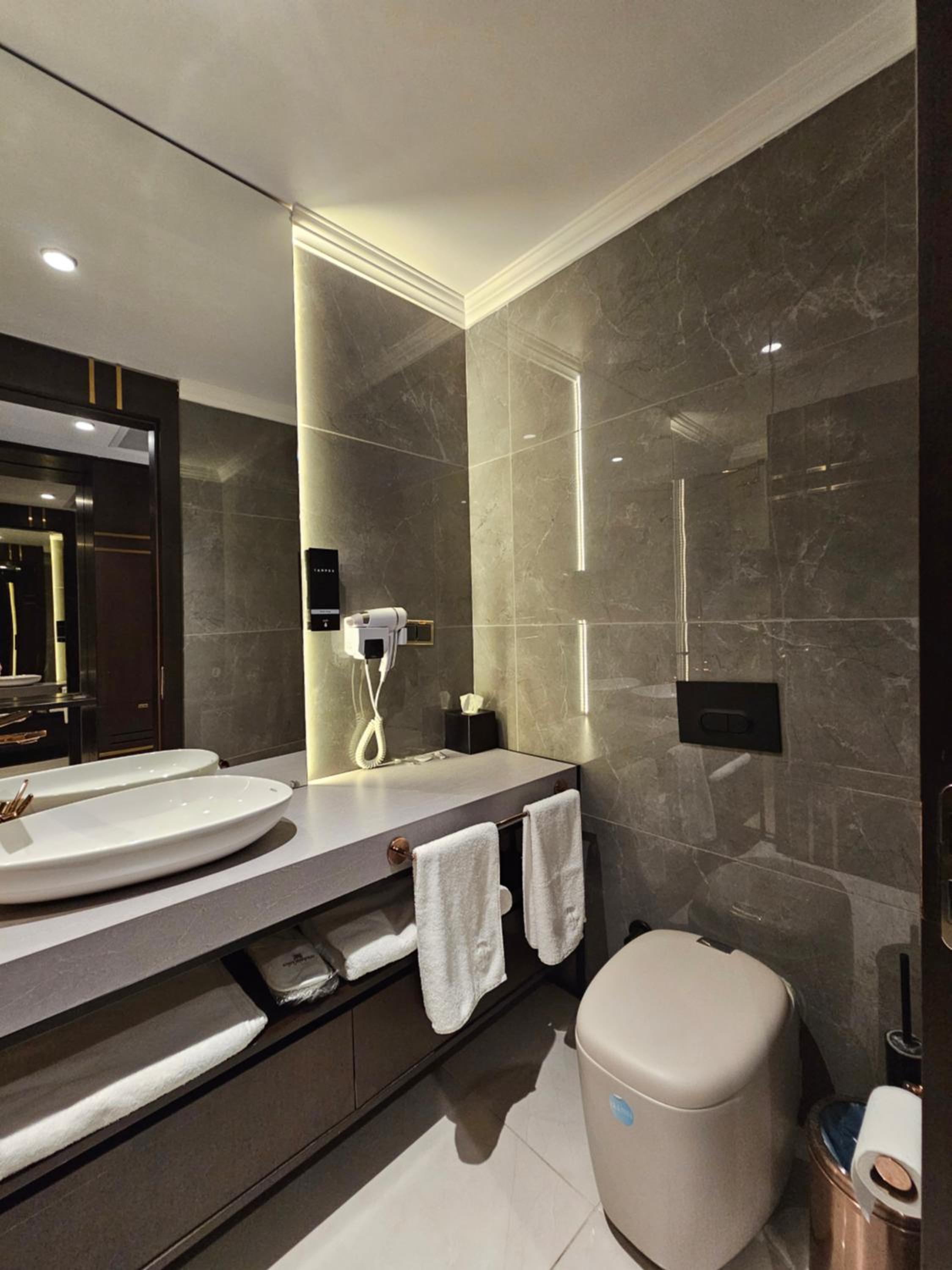 Wir haben 5 Nächte im Hotel verbracht und die große Suite (über 35 m²) bewohnt. Das Zimmer war sehr sauber, modern und bestens ausgestattet – genau so, wie man es von einem hochwertigen Hotel erwartet. Die Betten waren extrem bequem, sodass wir jede Nacht hervorragend geschlafen haben. Auch das Badezimmer war in einem Top-Zustand, sehr gepflegt und sauber.