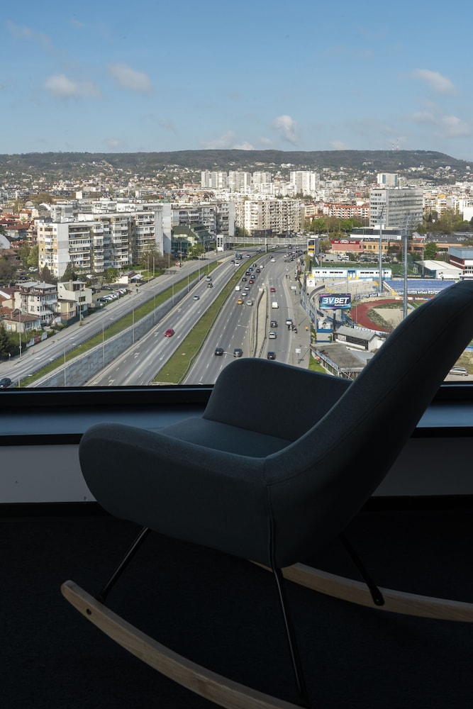 Soggiornato qui 3 notti. Hall accogliente, hotel molto recente e moderno. Il pregio numero 1 è il parcheggio: ingresso a due corsie, posti auto larghi e numerosi, distribuiti su due piani e spazio per fare le manovre; Camera grande (una sedia, una poltrona, un tavolo, pulita, con diverse prese elettriche, materasso buono; l’aria condizionata ok, la vista su Varna dal 10' piano è bella, presente una sedia a dondolo per l'osservazione. La TV prende anche i canali europei, per quanto riguarda le TV italiane, alcuni canali Mediaset come TGCom. La colazione è di qualità , ti preparano un piatto tra i 3 proposti giornalmente (uova strapazzate, uova fritte oppure omelette); mancano però alcune varietà salate come speck, wurstel, salsicce) ed il succo d’arancia. Gentili i ragazzi che vi lavorano. Nonostante la camera si affacciasse su un boulevard molto trafficato, gli infissi sono perfettamente insonorizzati La posizione dell’hotel è a circa 2 km dal mare. Disservizi: un giorno la camera non è stata fatta. Segnalo immediatamente alla reception il disguido, facendo vedere le fotografie della situazione e la dipendente si offre di venire su a fare il servizio, ma io rispondo che non è il caso e chiedo solo la sostituzione degli asciugamani. inoltre, nelle tre notti di soggiorno, ho utilizzato i due bicchieri di vetro presenti in camera sin dal primo giorno e non mi sono mai stati cambiati.
