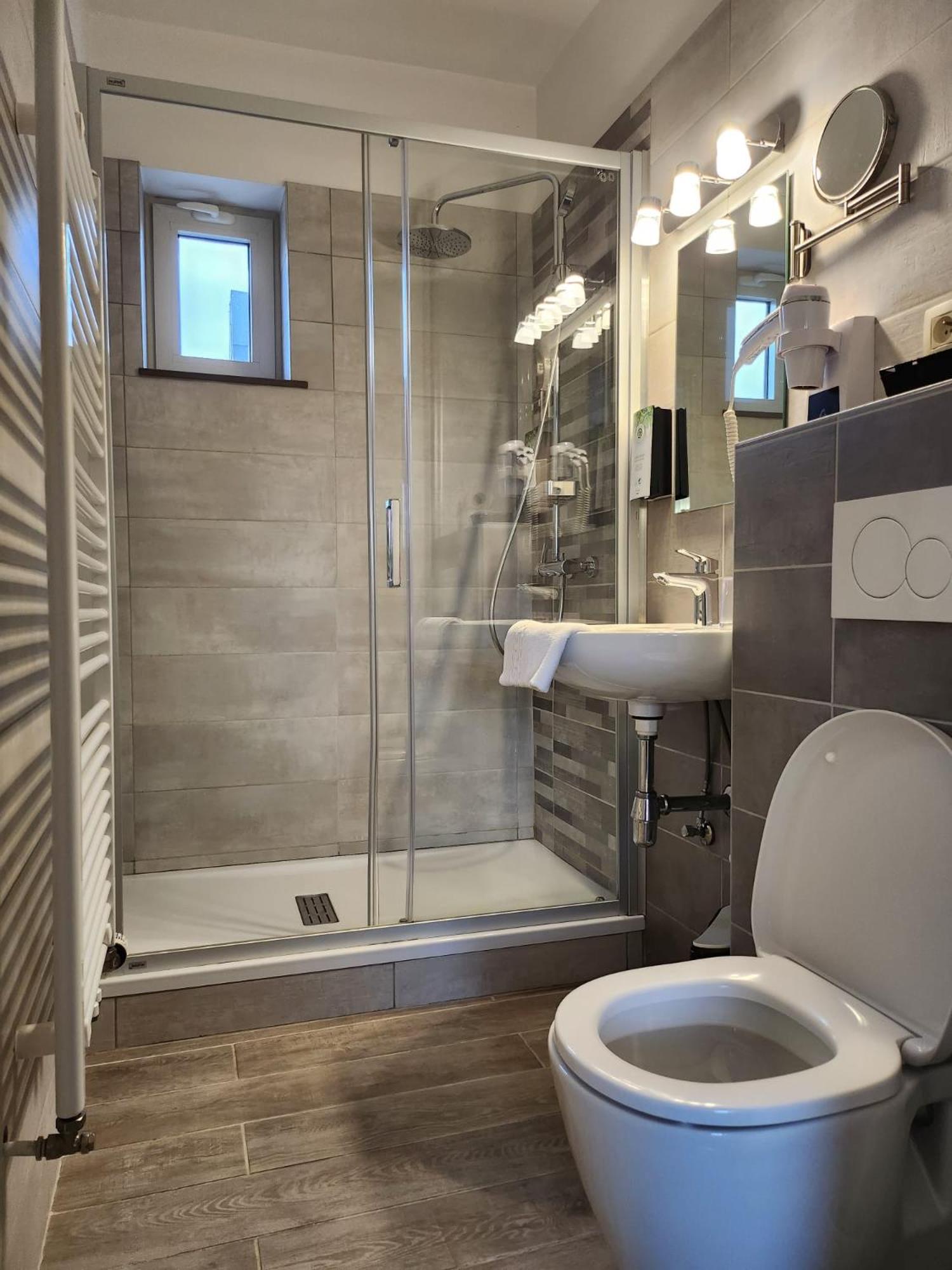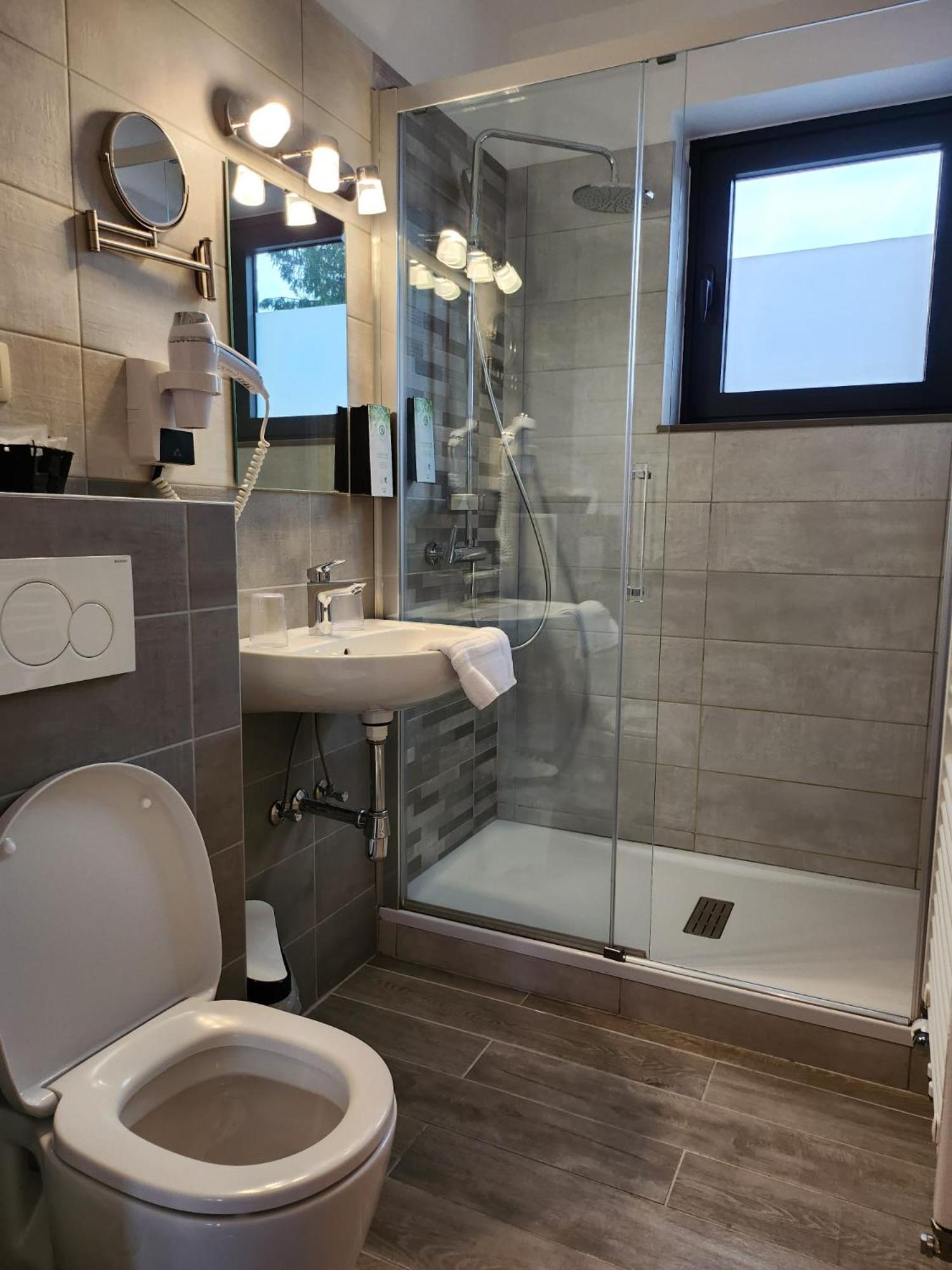Heerlijk, vers ontbijt. Wij hadden een vernieuwde badkamer met een zalige regendouche. In het restaurant onder het hotel hebben we heel lekker gegegeten.