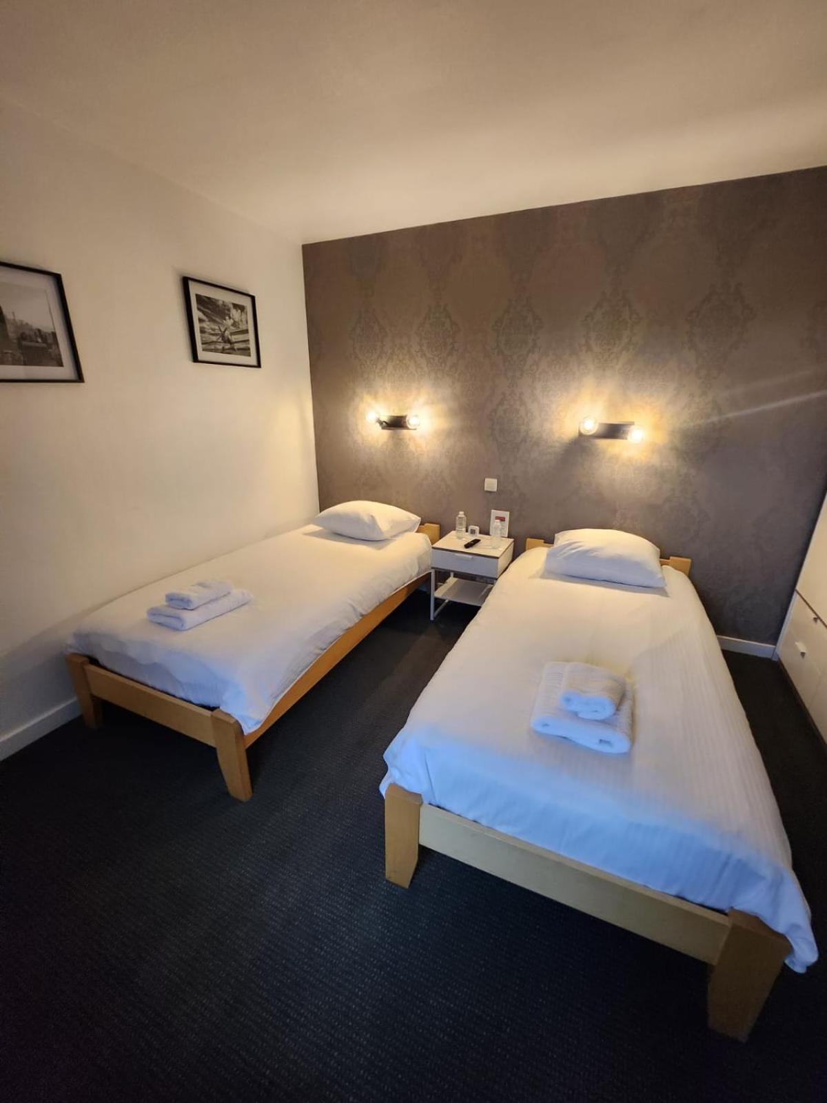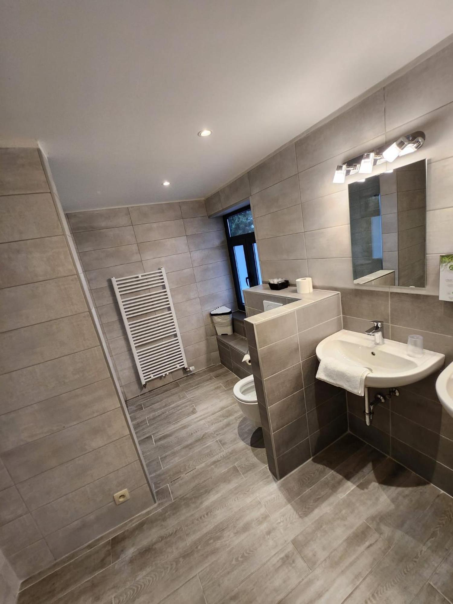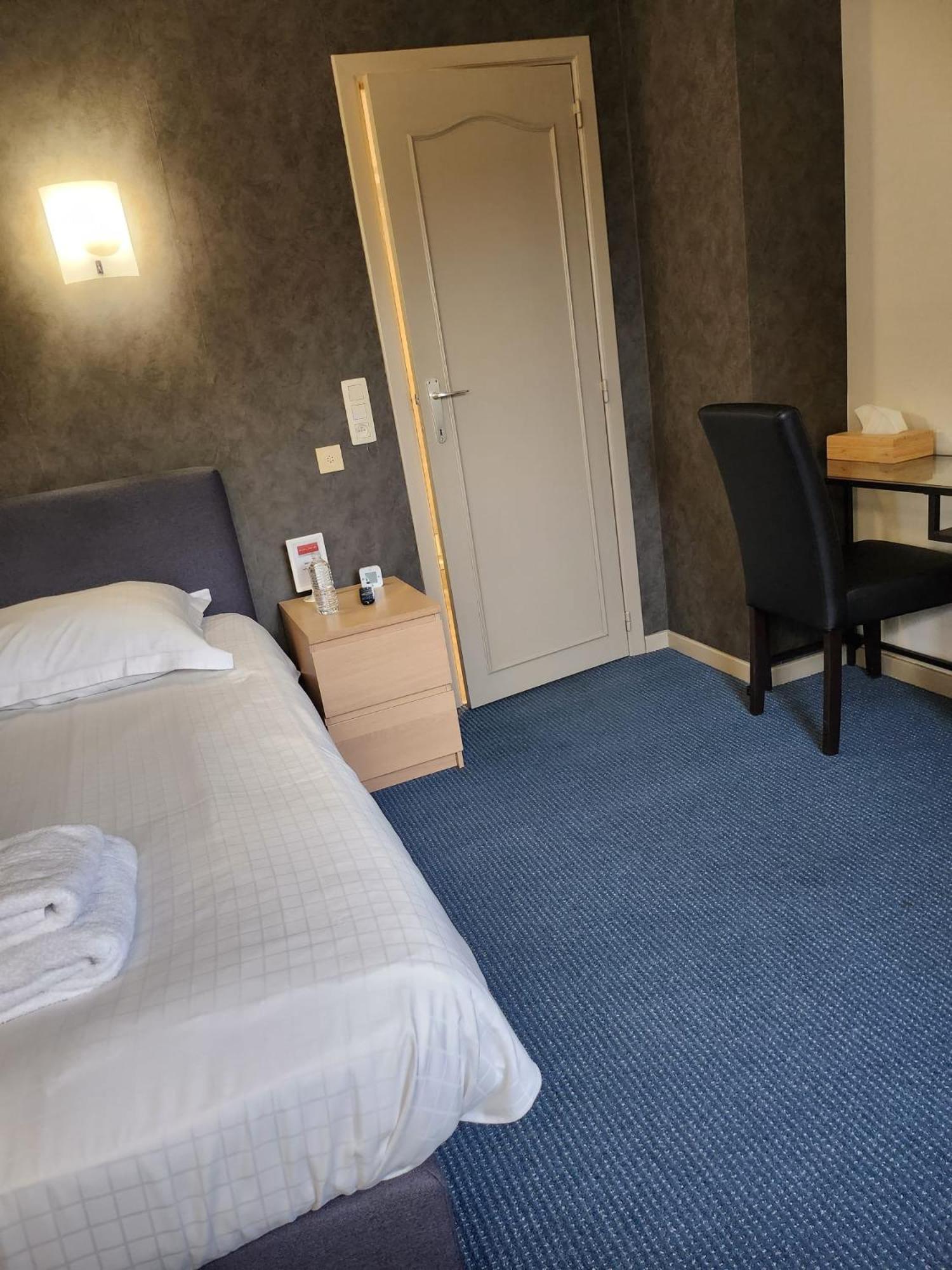 Chambre tout confort et propre. Salle de bain neuve et double vasque. Petites intentions (bouteilles d'eau, mouchoirs, kit de couture, éponges à chaussures et charlotte pour cheveux à disposition ainsi que boissons chaudes au 1er étage) très agréables!