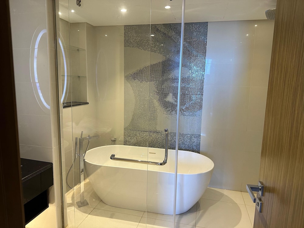 luxury building with very lousy service… no one available at reception, no one talk in English, my bathroom sink was so dirty & smelly… will never stay here again.. I rather prefer average property with excellent service…