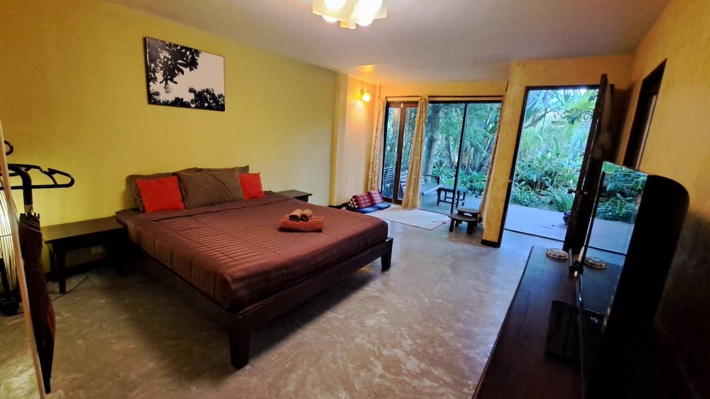 It was a nice location because it was centrally located amidst the floating markets. Very Thai and simple. Little English speaking. No extras. Restaurant is on the river, but no food except a super simple few things like toast and coffee.