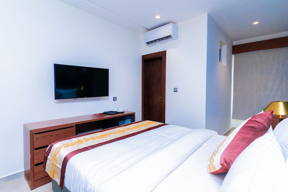 Stay connected with free Wi-Fi and Smart TVs in uniquely decorated guestrooms. Explore nearby attractions like Silverbird Galleria and Landmark Beach easily with the complimentary beach shuttle.