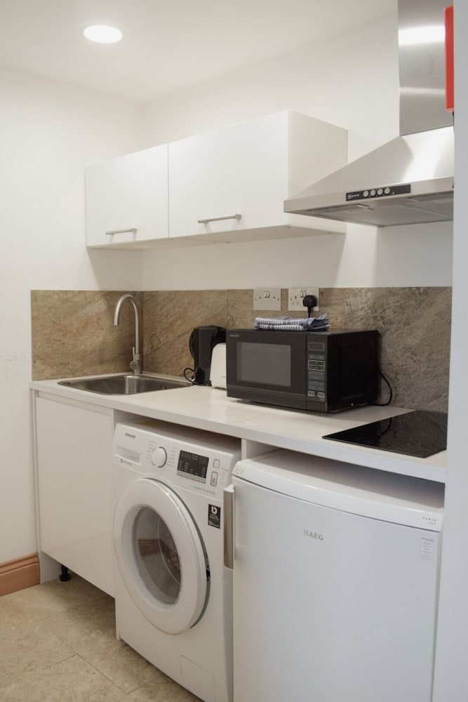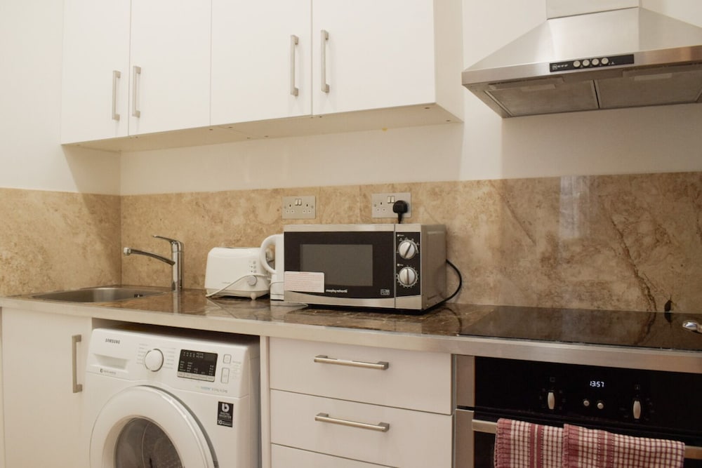 The apartments are lovely, and have everything you need; washing machine, microwave, toaster, oven etc. The only thing that would stop me coming again, is the exorbitant price charged for dogs. £20 per dog PER NIGHT! We have 2 small dogs, staying for 5 nights which would be an extra £200 on the bill! We queried it, and they reduced it to £15 per dog per night. But that is still an extra £150. Other places we have stayed in, charge between £20-£50 per stay. So, as lovely and convenient as it is, im afraid we will have to look for somewhere else to stay when we come to Eastbourne to visit our family.