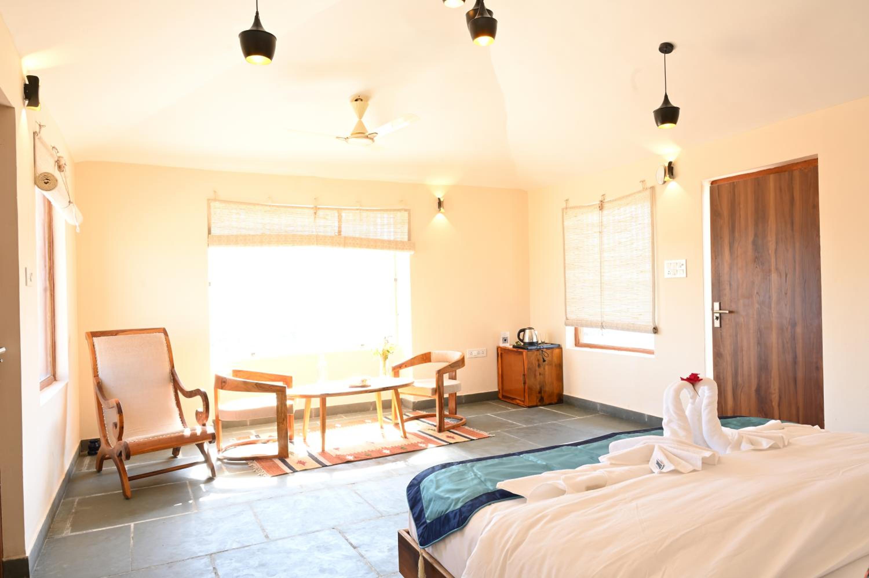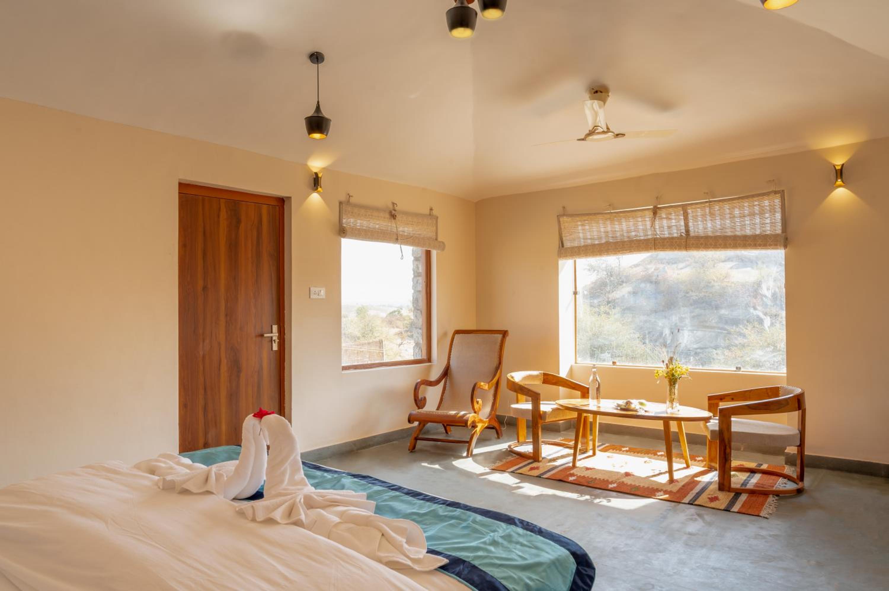 Clarks Safari Jawai, a 5-star hotel in Jawāi Bāndh, offers elegant rooms with private bathrooms, free toiletries, and cozy bed linens.