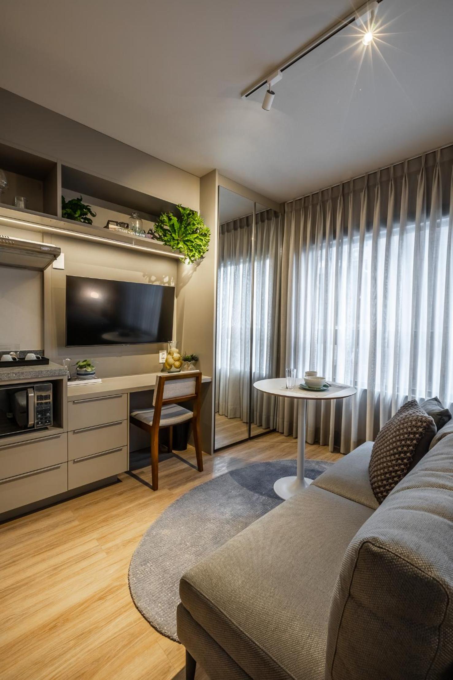O apto é um pouco apertado para ser usado como flat. A cozinha fica muito em cima da cama. Mas o conforto é muito adequado.