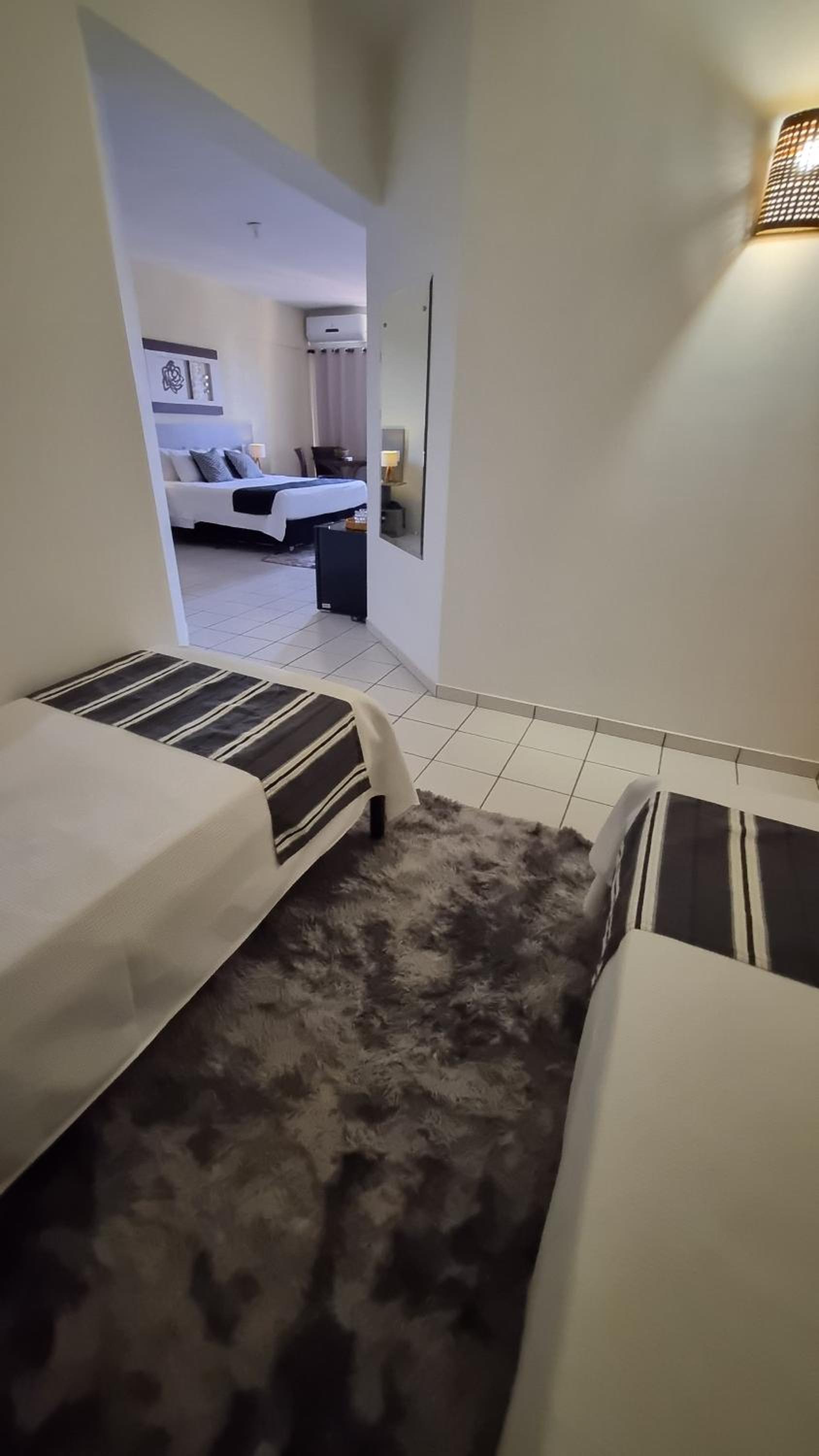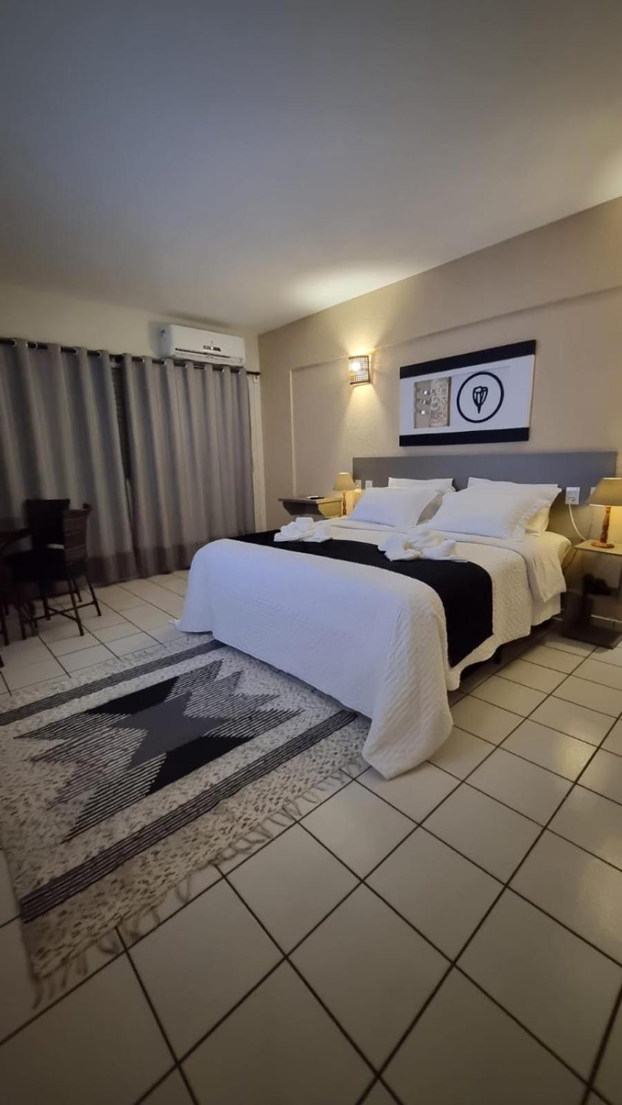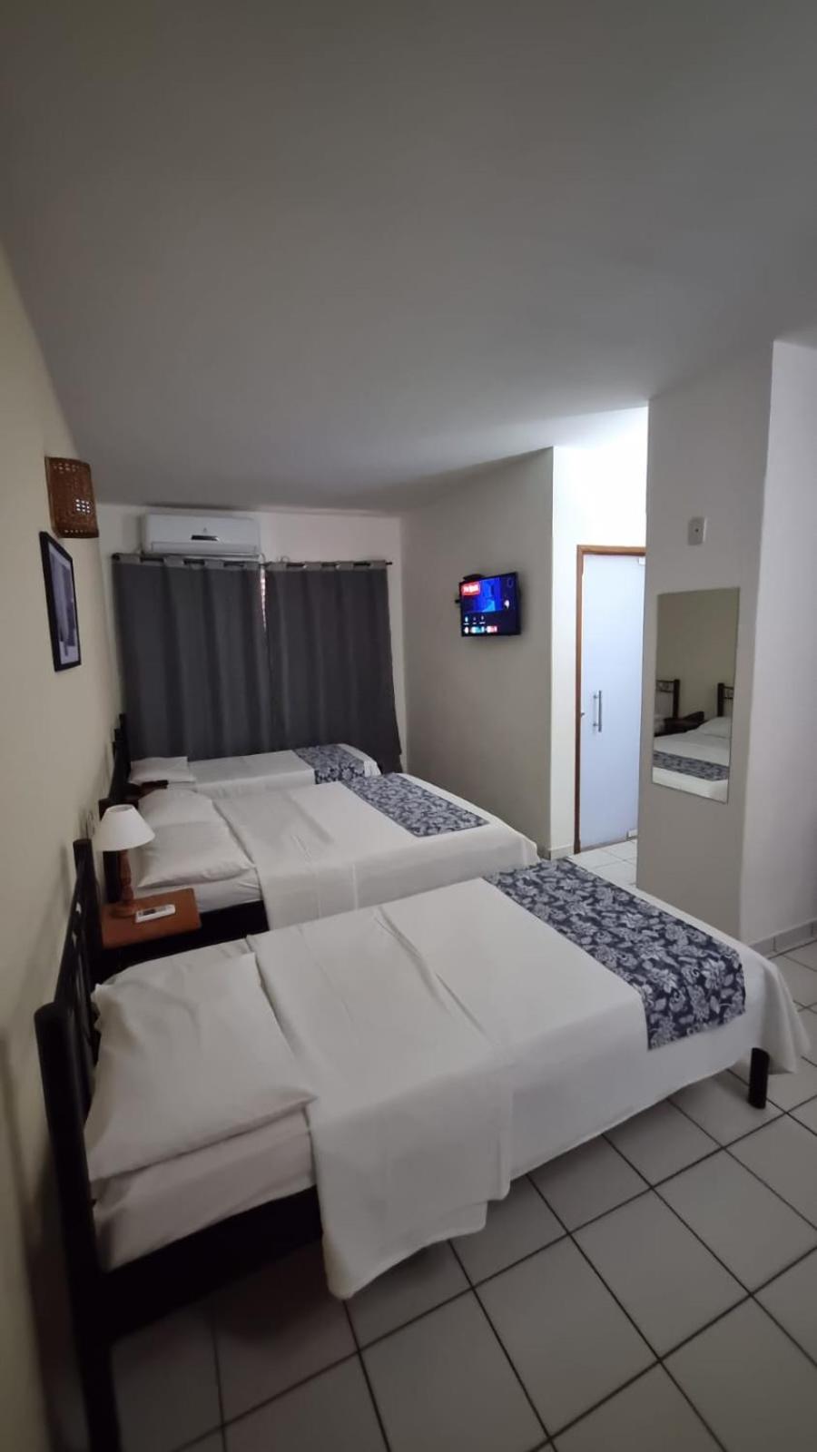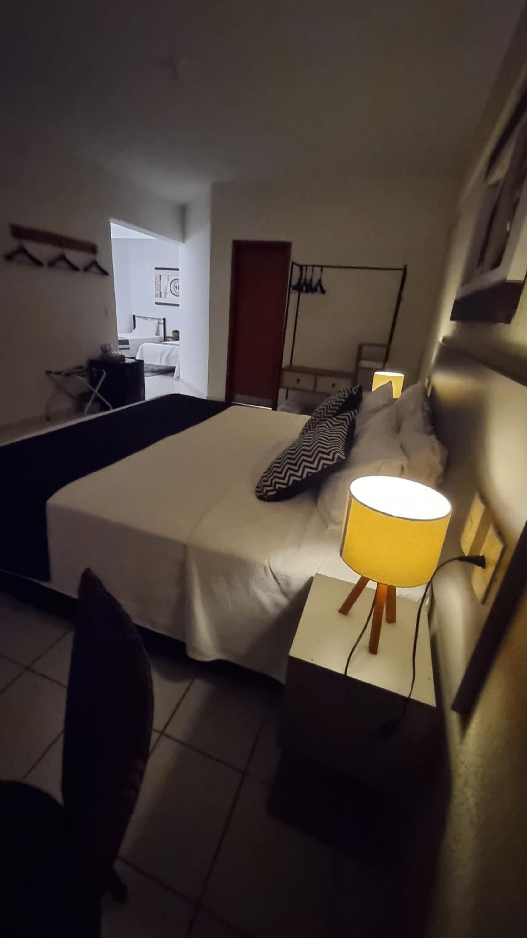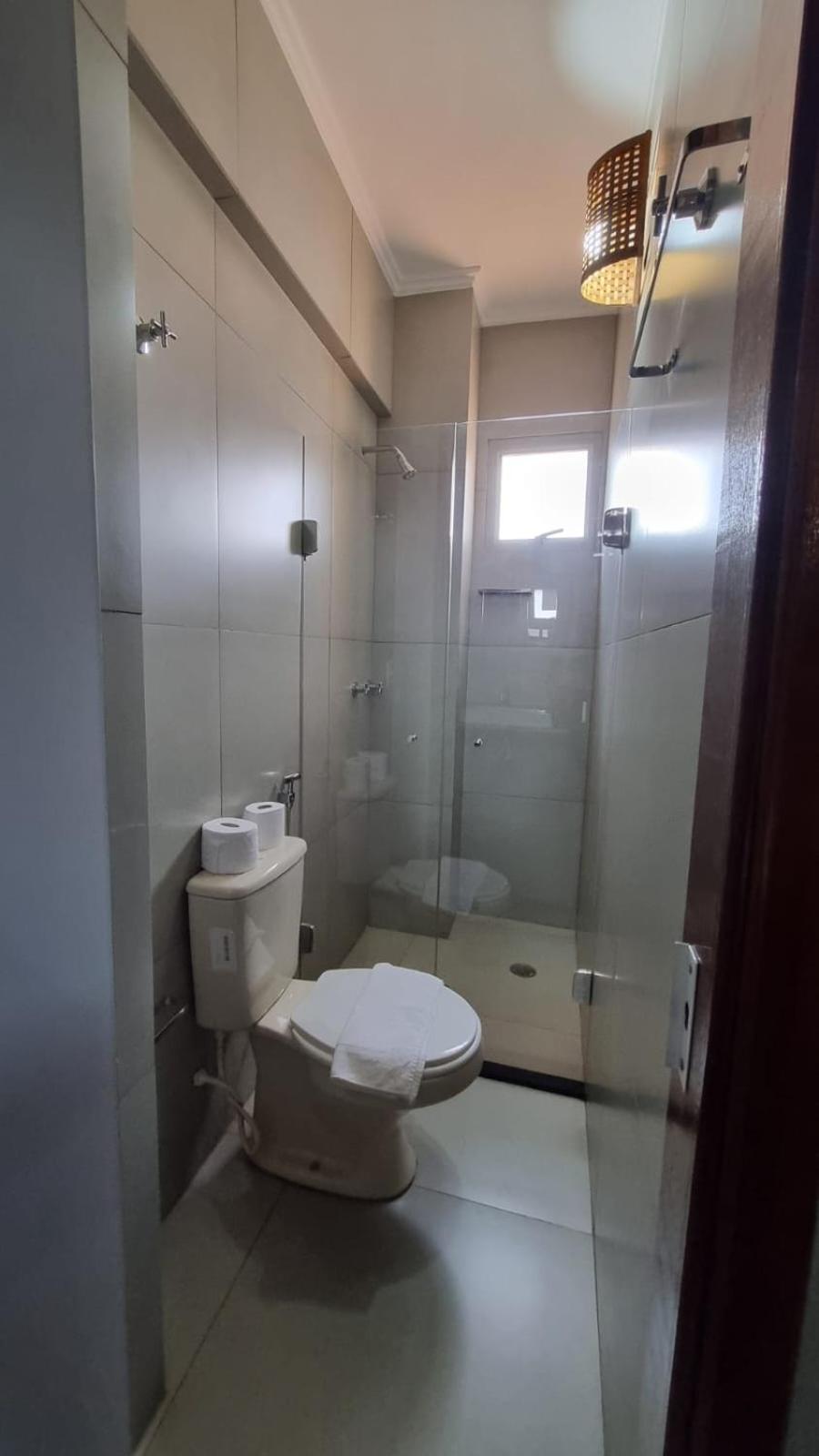 A cama de casal é estreita e a porta do banheiro que ficamos hospedados é de vidro, mesmo sendo com adesivo, fica sem privacidade...e pouca iluminação . Ficamos no apto 803
