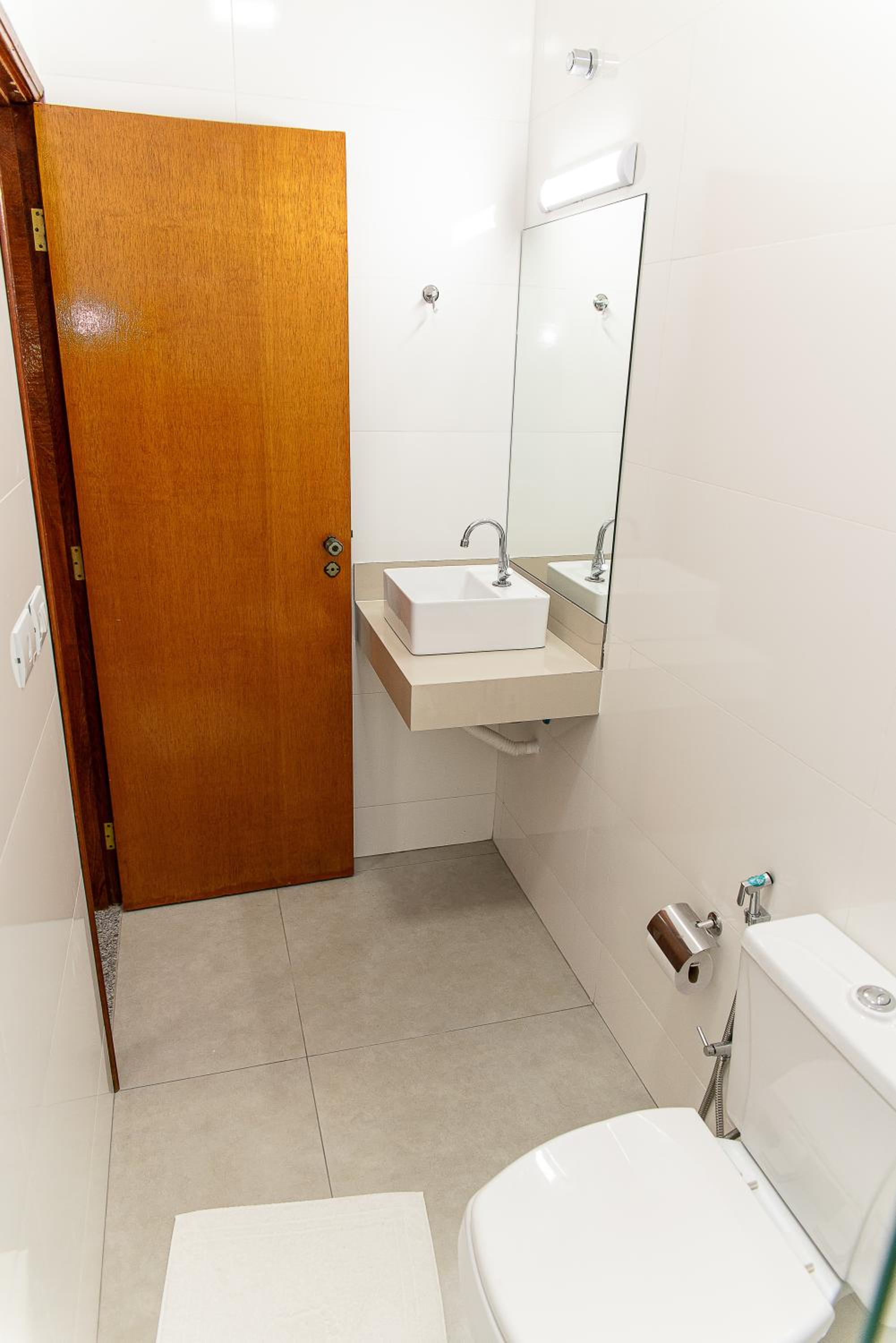 O banheiro precisa de reforma. Havia infiltração no teto (com mancha e inclusive pingava água eventualmente).